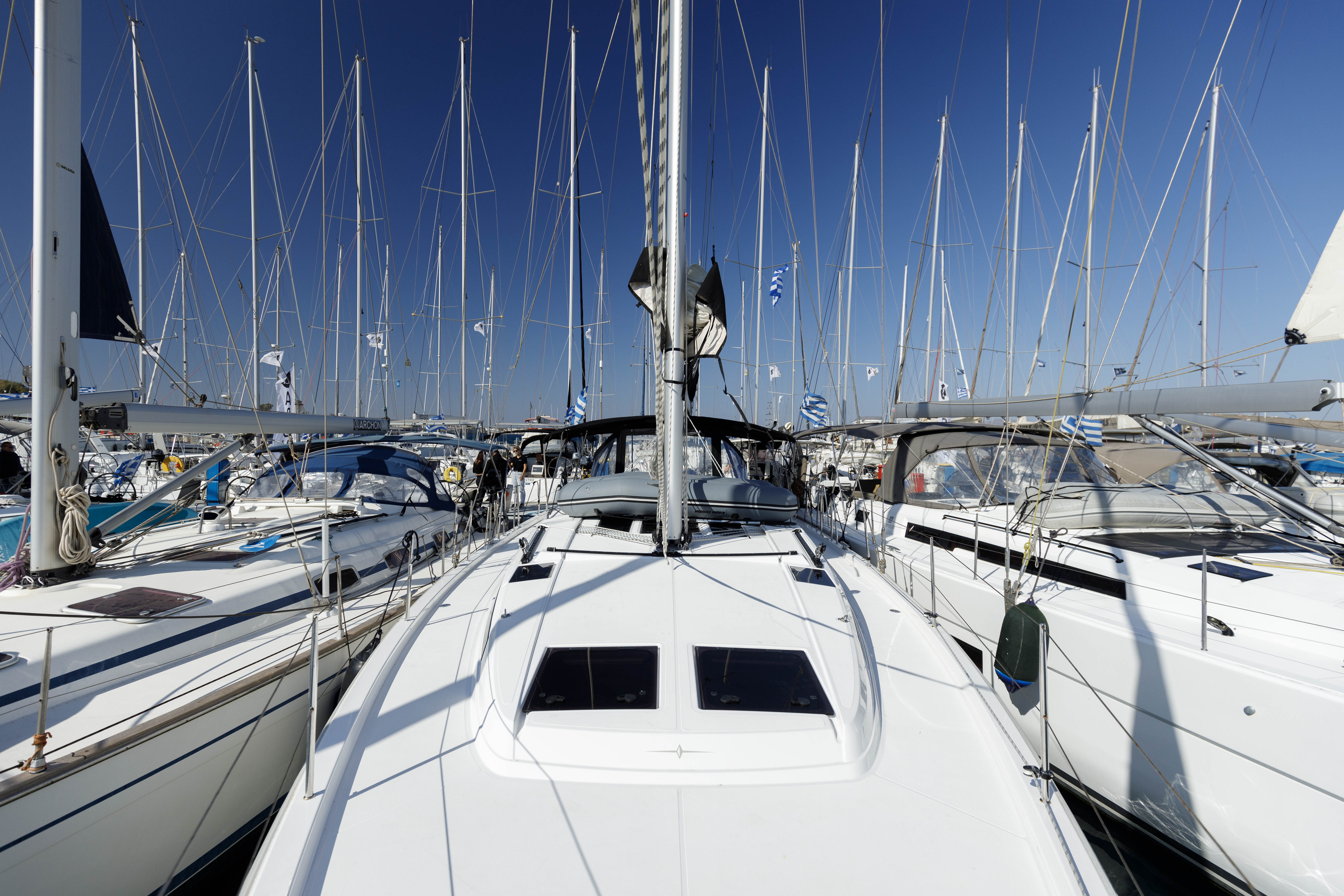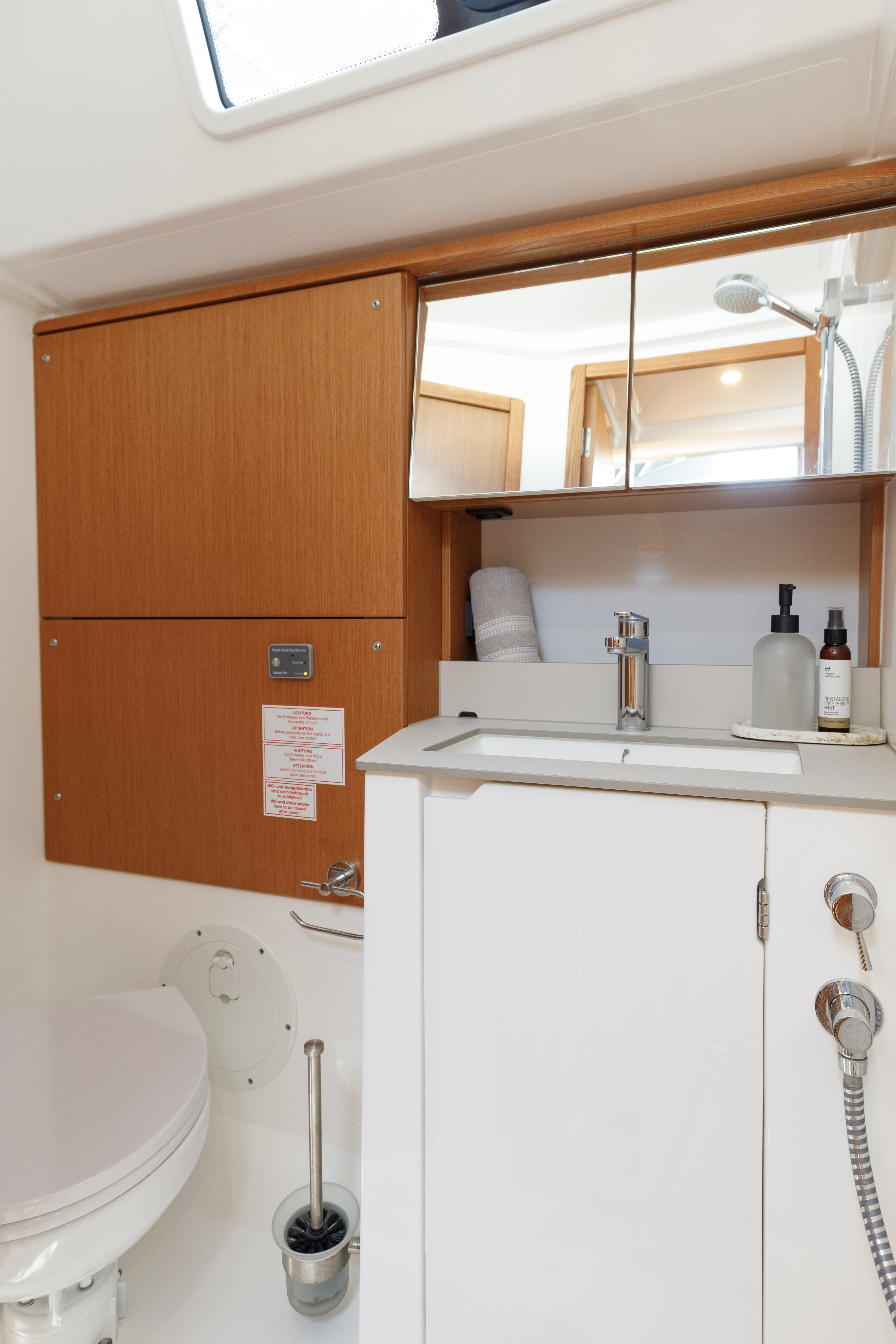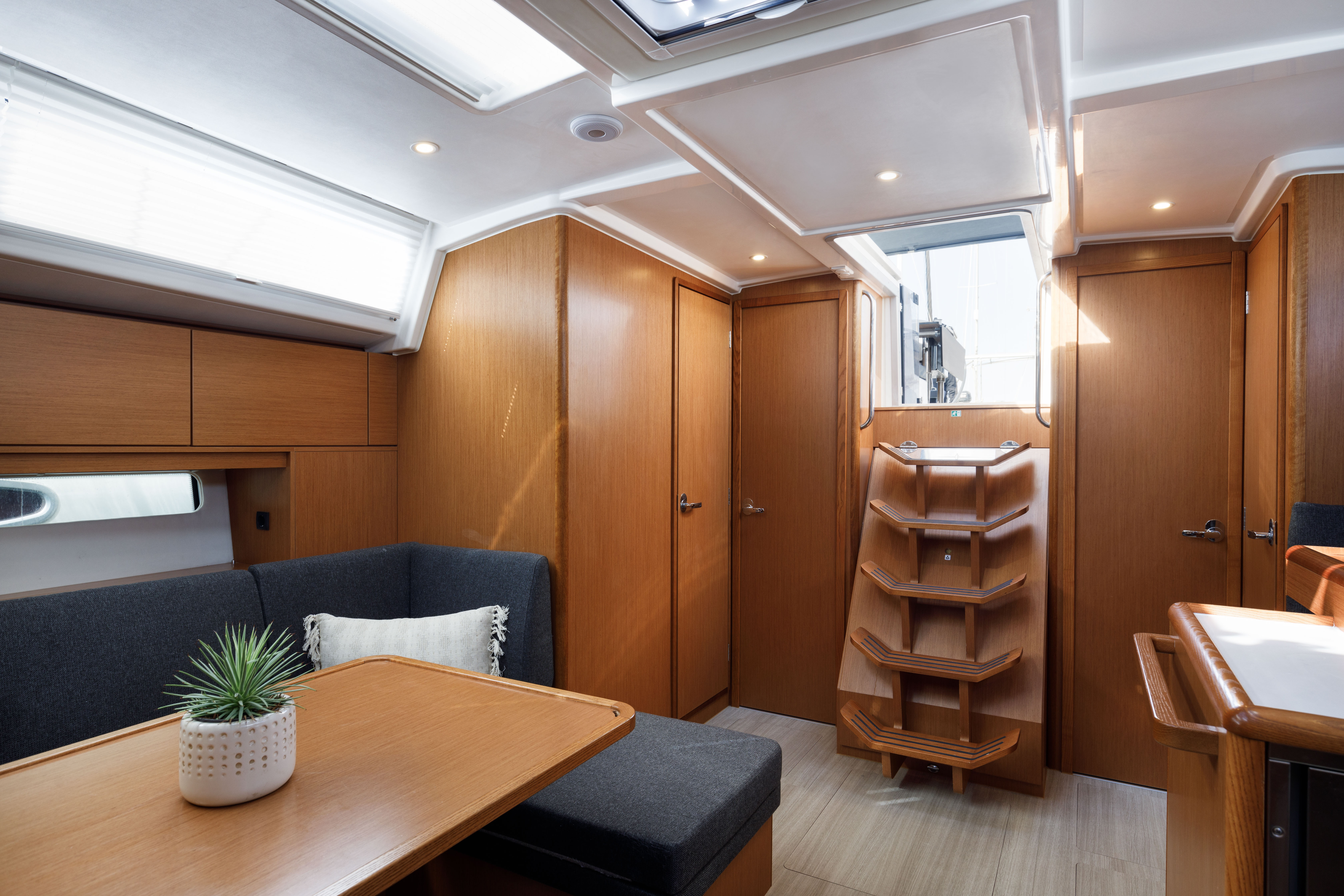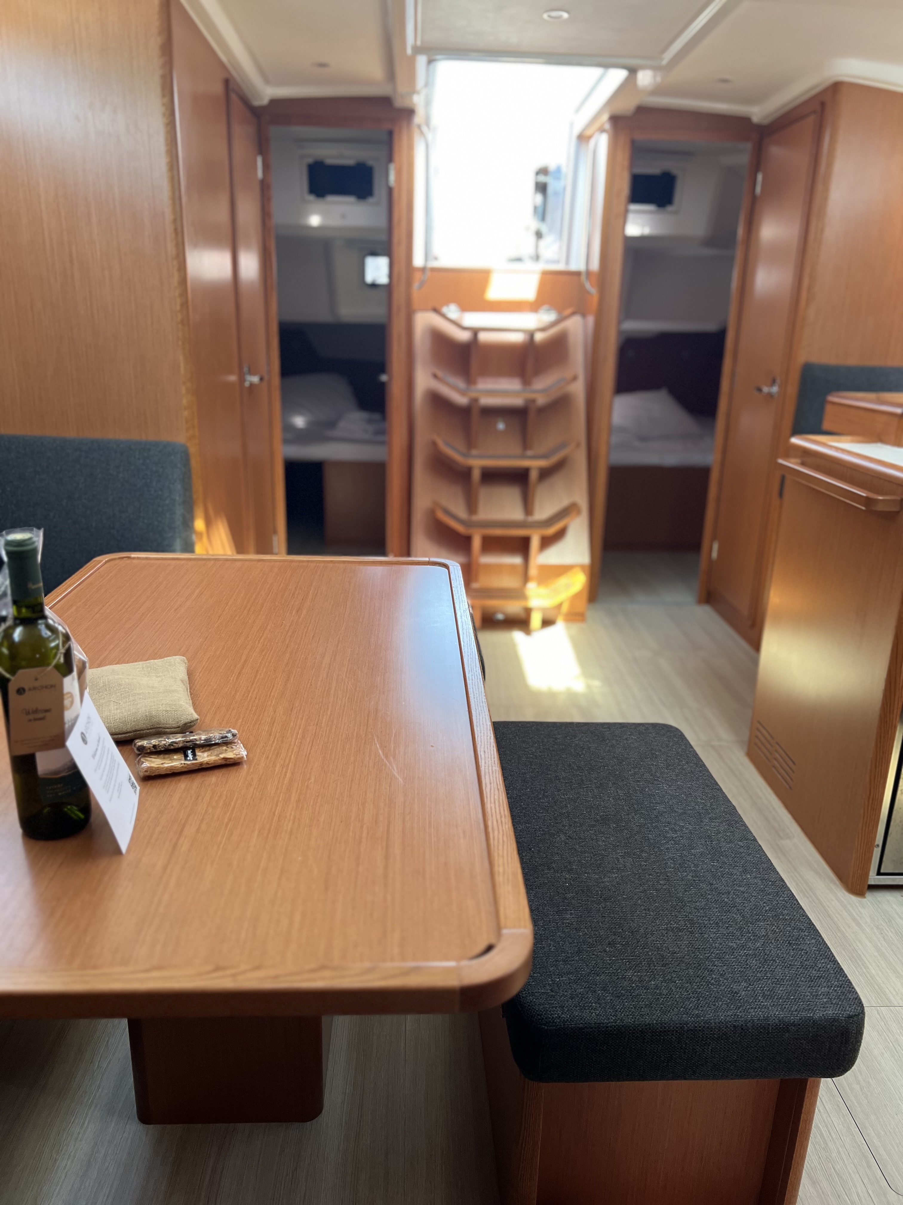 | Navigation | Echolot, GPS mit Kartenplotter im Cockpit, Hafenhandbücher, Seekarten, Sumlog, Windmesser |