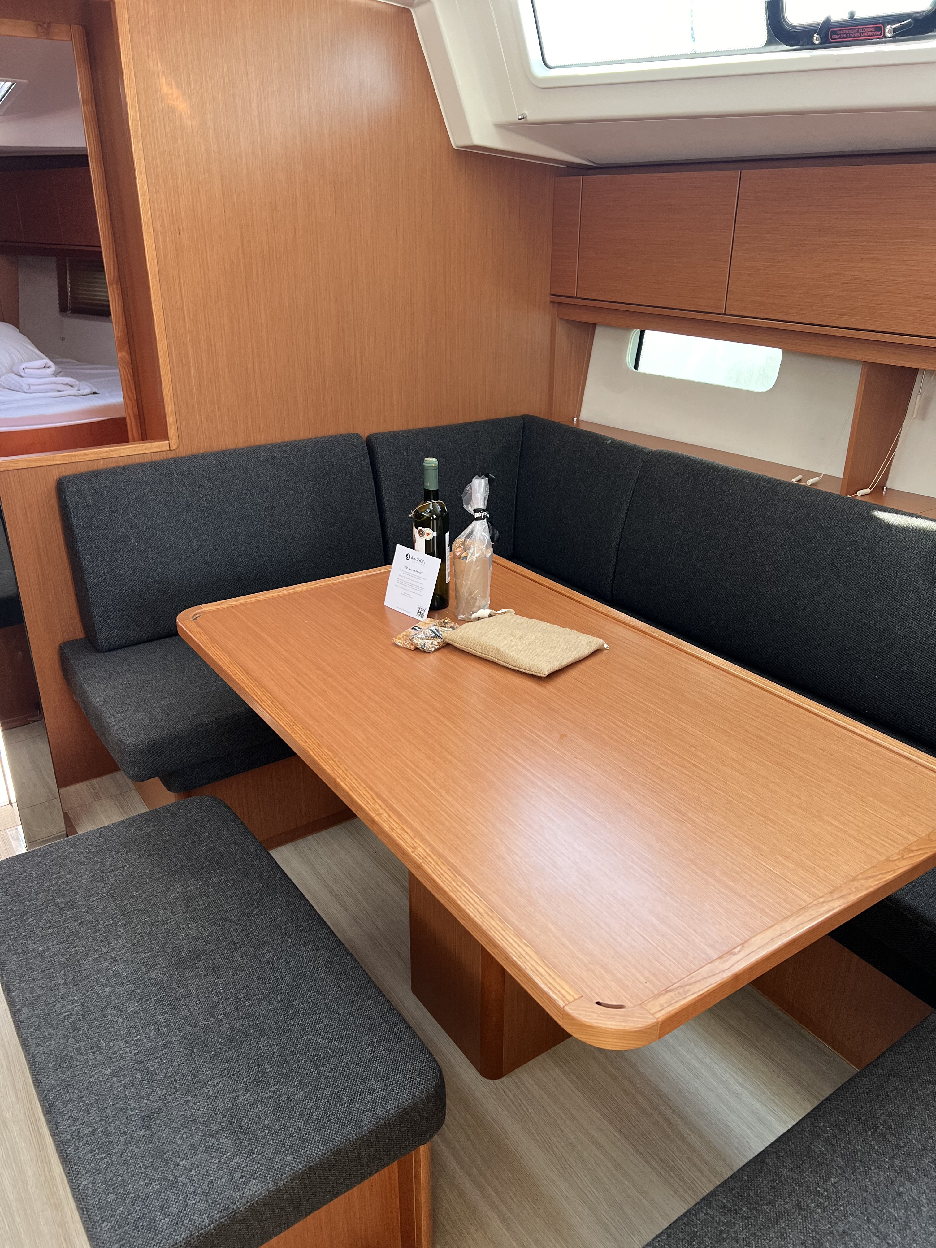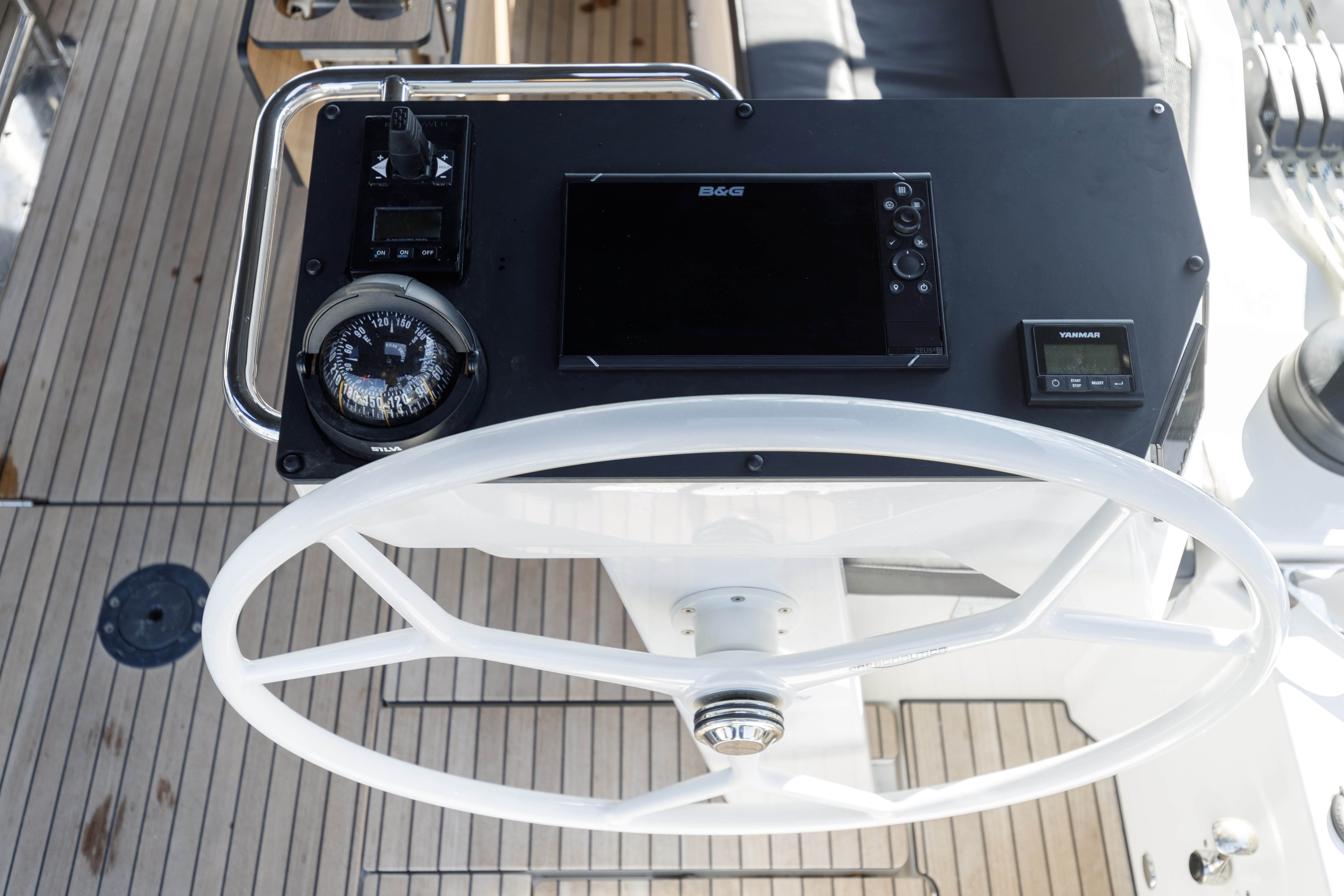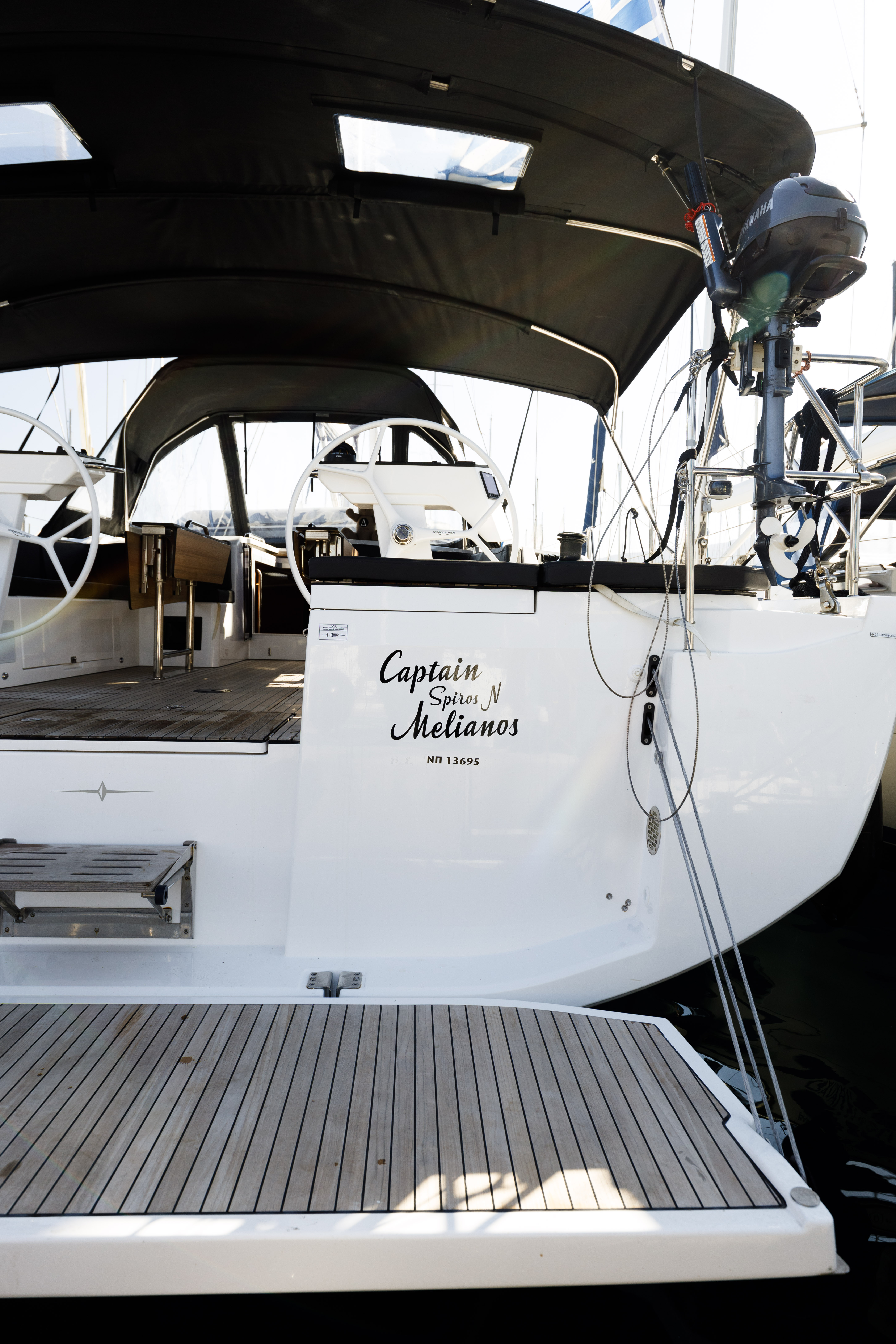 | Outside | Biminitop, Cockpitdusche, Cockpitlautsprecher, Cockpitpolster, Cockpittisch, elektr. Ankerwinsch, elektr. Winsch, Fender, Sprayhood |