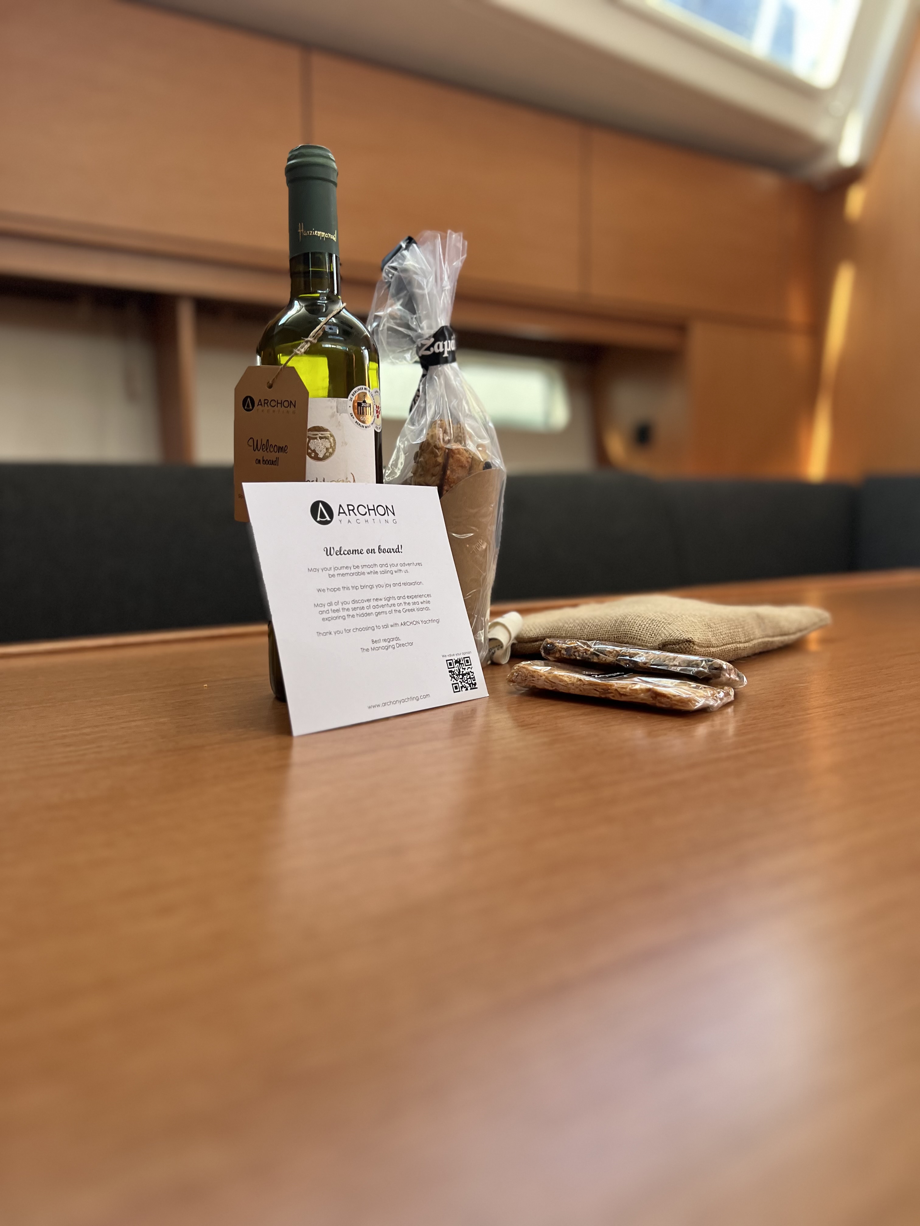 | Safety | Autopilot, Bordapotheke, Bugstrahlruder, Epirb, Feststoffschwimmwesten, Leuchtboje, Navigationslichter, Notsignale, Rettungsinsel, UKW-Funk, Zweitanker |