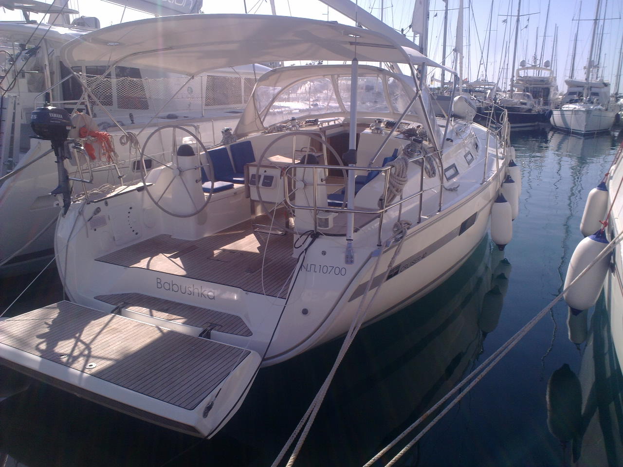 | Outside | 220 V-Landanschluss, Anker mit Kette, Badeleiter, Badeplattform, Biminitop, Bootshaken, Cockpitpolster, Cockpittisch, elektr. Ankerwinsch, Fender, Gangway, Schnorchelausrüstung, Solaranlage, Sprayhood, Wantenschneider, Wasserschlauch, Winschen |