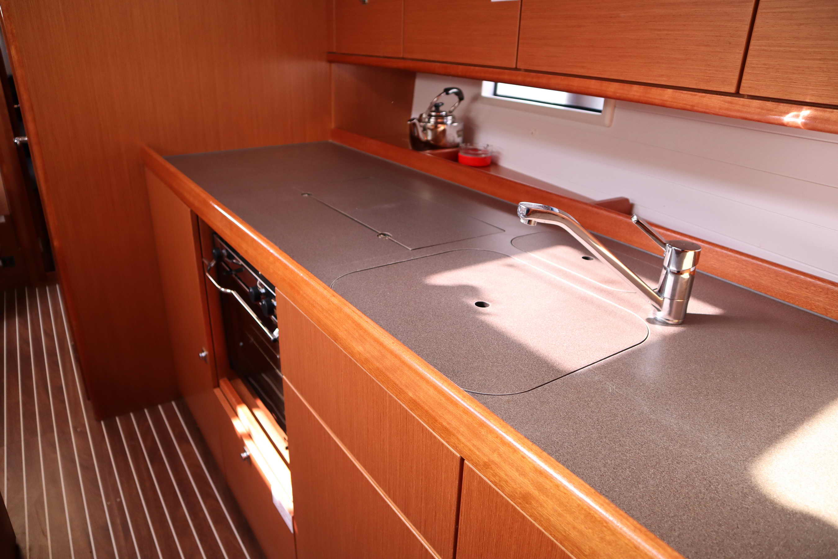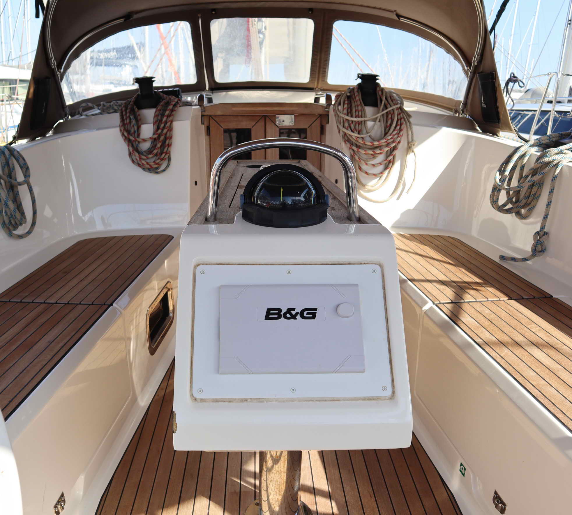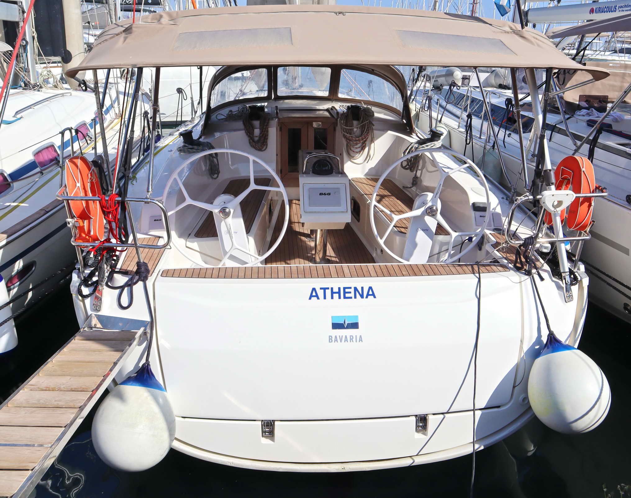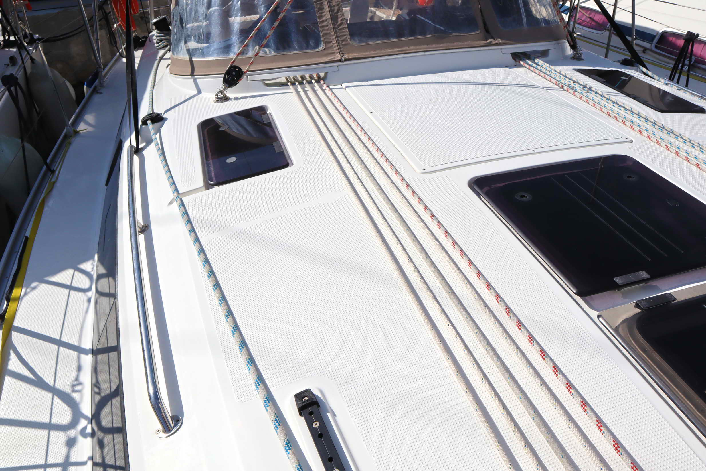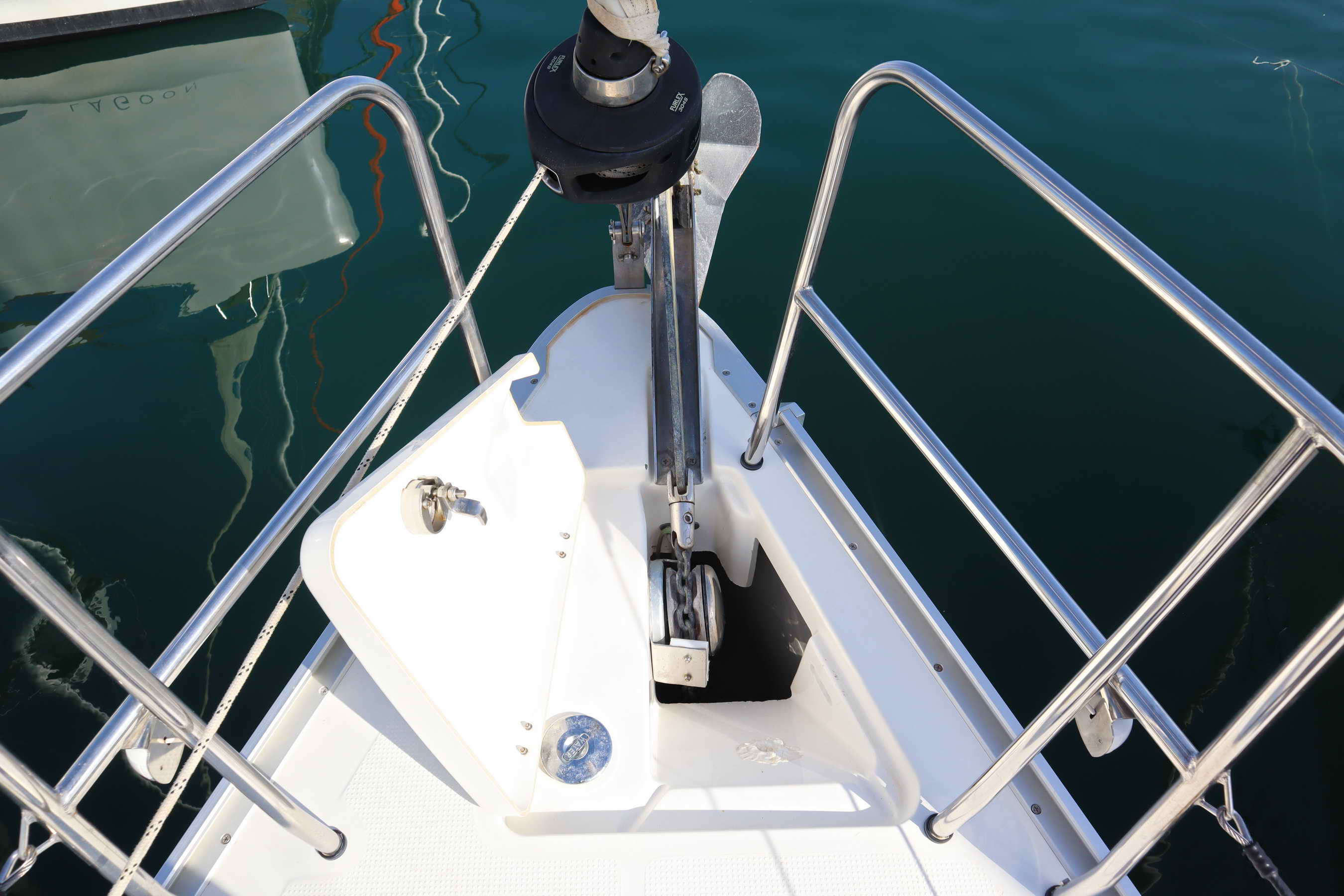| Outside | Badeplattform, Biminitop, Cockpitdusche, Cockpitpolster, Cockpittisch (klappbar), elektr. Ankerwinsch, Sprayhood |