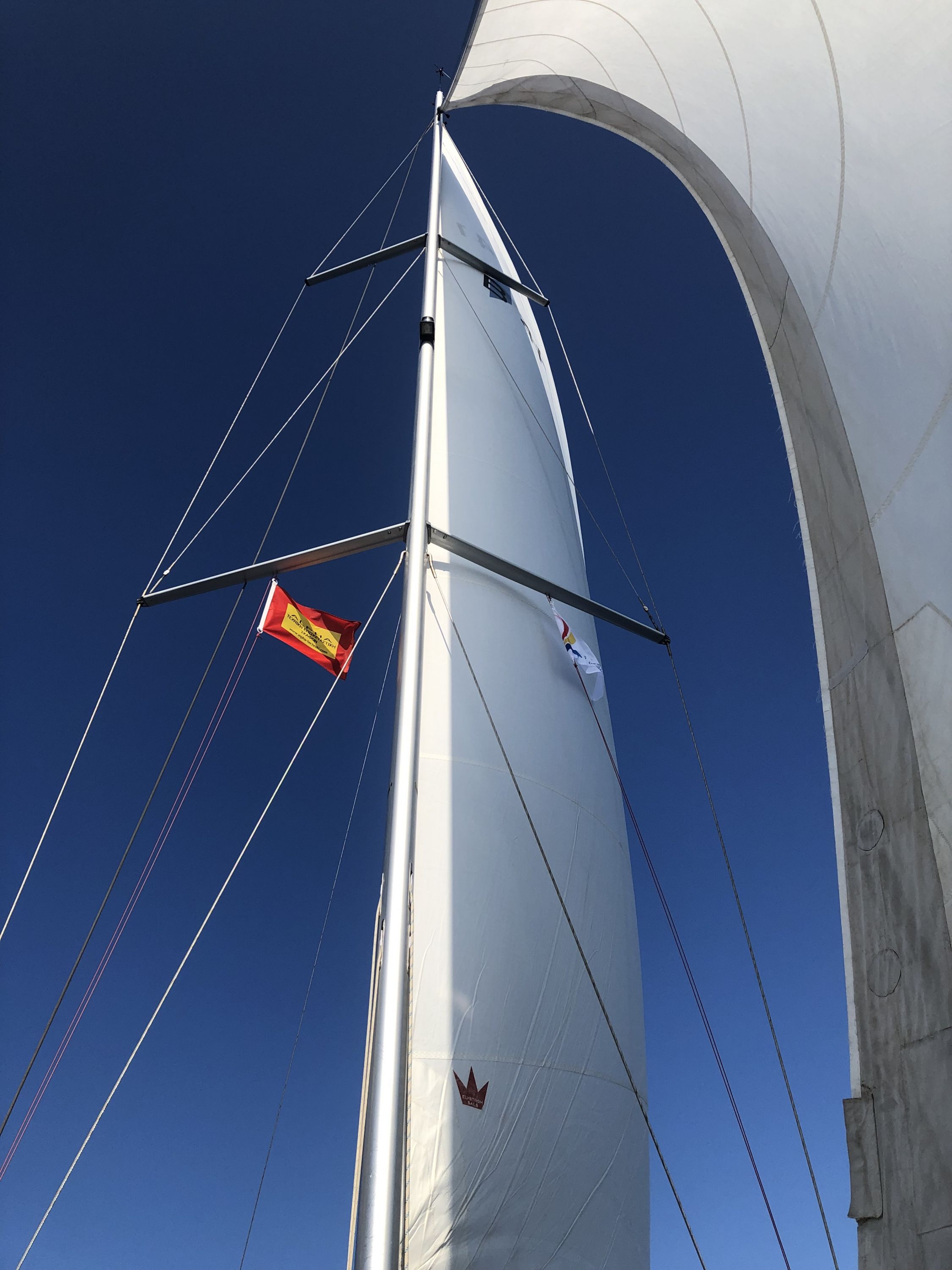 Ein Gennaker wäre zwar verfügbar gewesen aber leider nicht im Bergeschlauch. Für kleine Crew schwer zu handhaben.