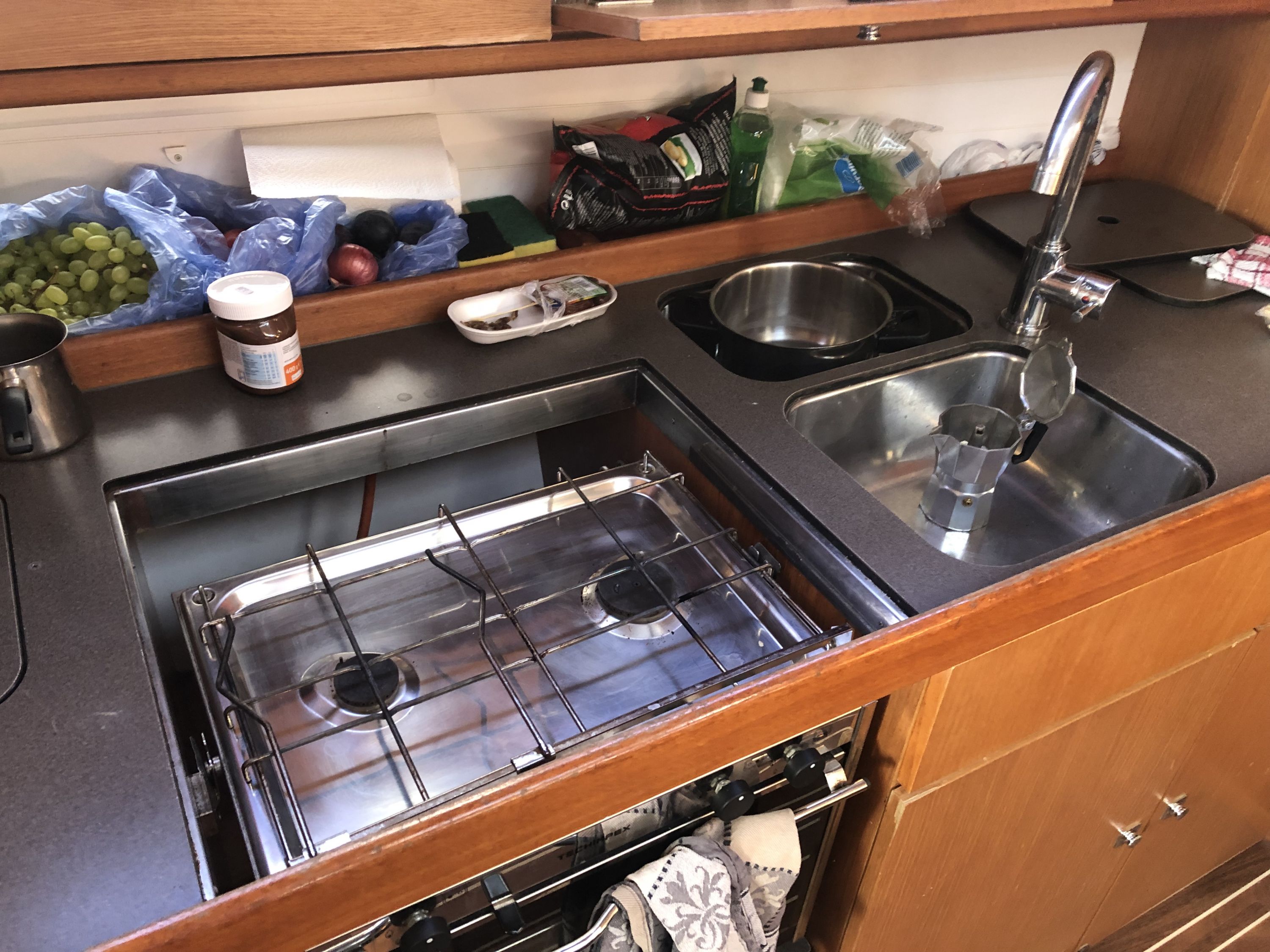 Für sein Alter sieht das Boot schon etwas verlebt aus. Technisch war es aber in gutem Zustand. Die Bilge (auch unter dem Motor) war trocken und sauber und blieb es auch. Die Ankerwinsch lief etwas langsam an, was uns aber nicht gestört hat. [Name v.d.R entfernt] hat das bei unserer Rückkunft sofort bemerkt und mit der Behebung begonnen. Auch insgesamt hatte ich den Eindruck, er hat seinen Betrieb dort sehr souverän im Griff.