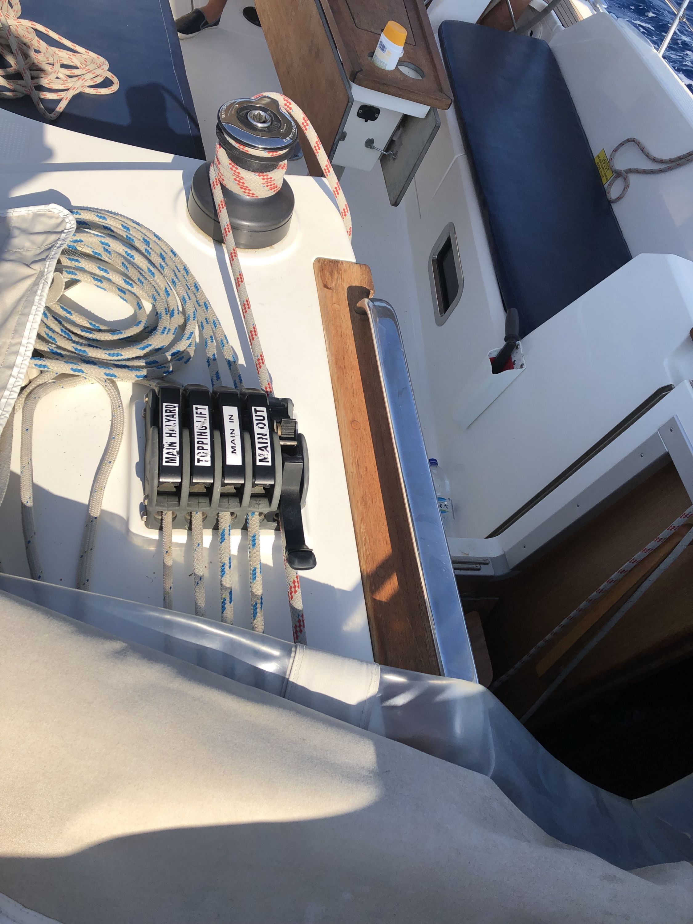 | Safety | Autopilot, Bootsmannstuhl, Bordapotheke, Bordwerkzeug, Bugstrahlruder, elektr. Bilgepumpe, Feststoffschwimmwesten, Feuerlöscher, Flaggen, Lifebelts, Motor-Ersatzteile, Nebelhorn, Notsignale, Reparaturset für Beiboot, Reserve-Motoröl, Rettungsinsel, Rettungskragen, Schwimmleine, Taschenlampe, UKW-Funk, Zweitanker |