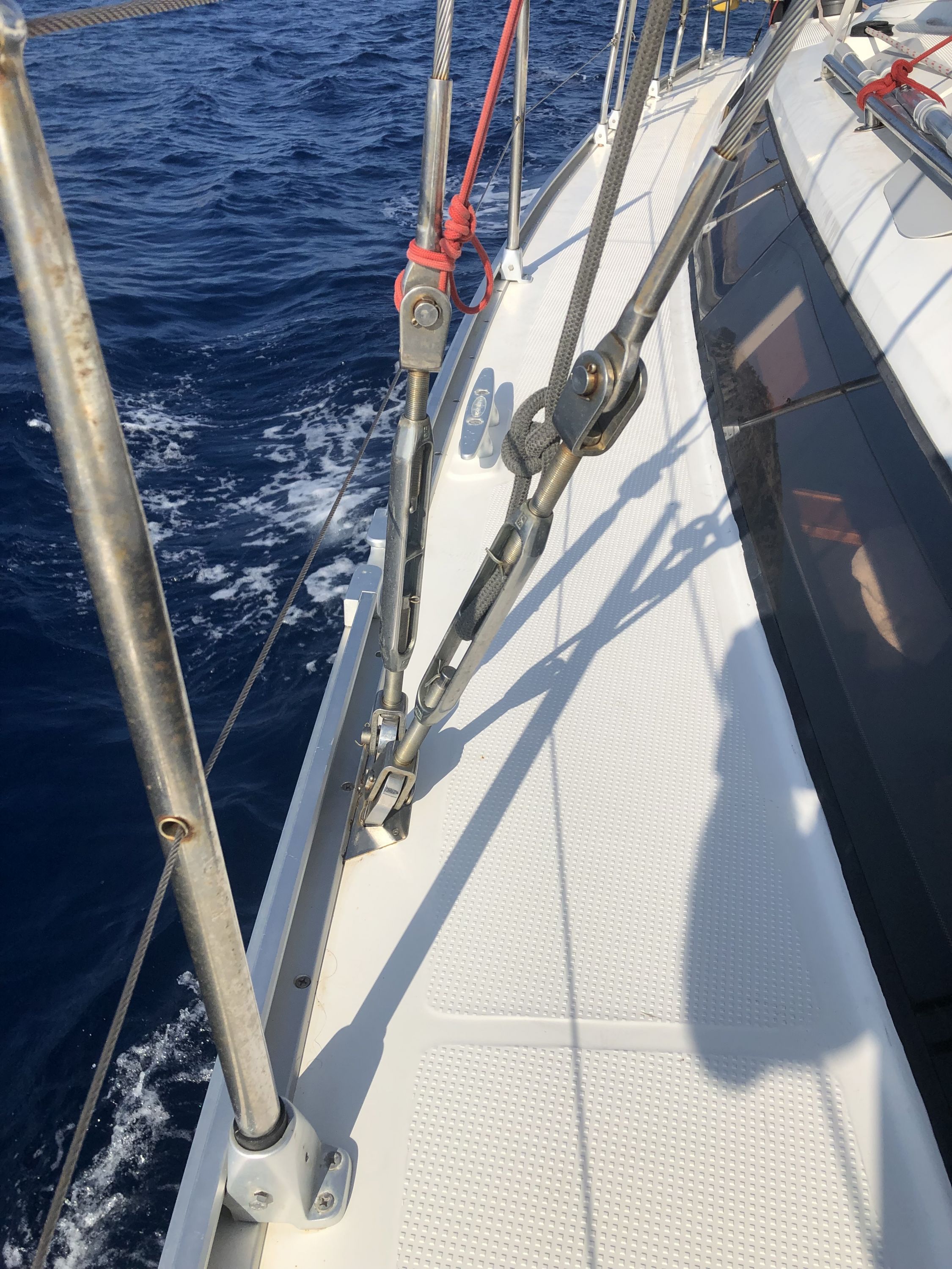 Diese Yacht weist doch schon "Alterserscheinungen" auf, bzw. zwangsläufig fehlende neue techn. Errungenschaften (z.B.die schwere Badeplattform läßt sich nur manuell mit 2 starken Personen öffnen/schließen, die Genua ist ein kleines