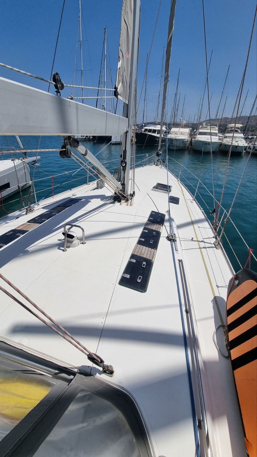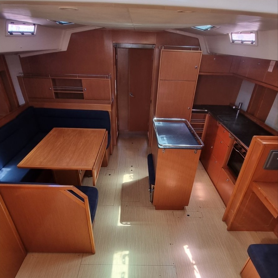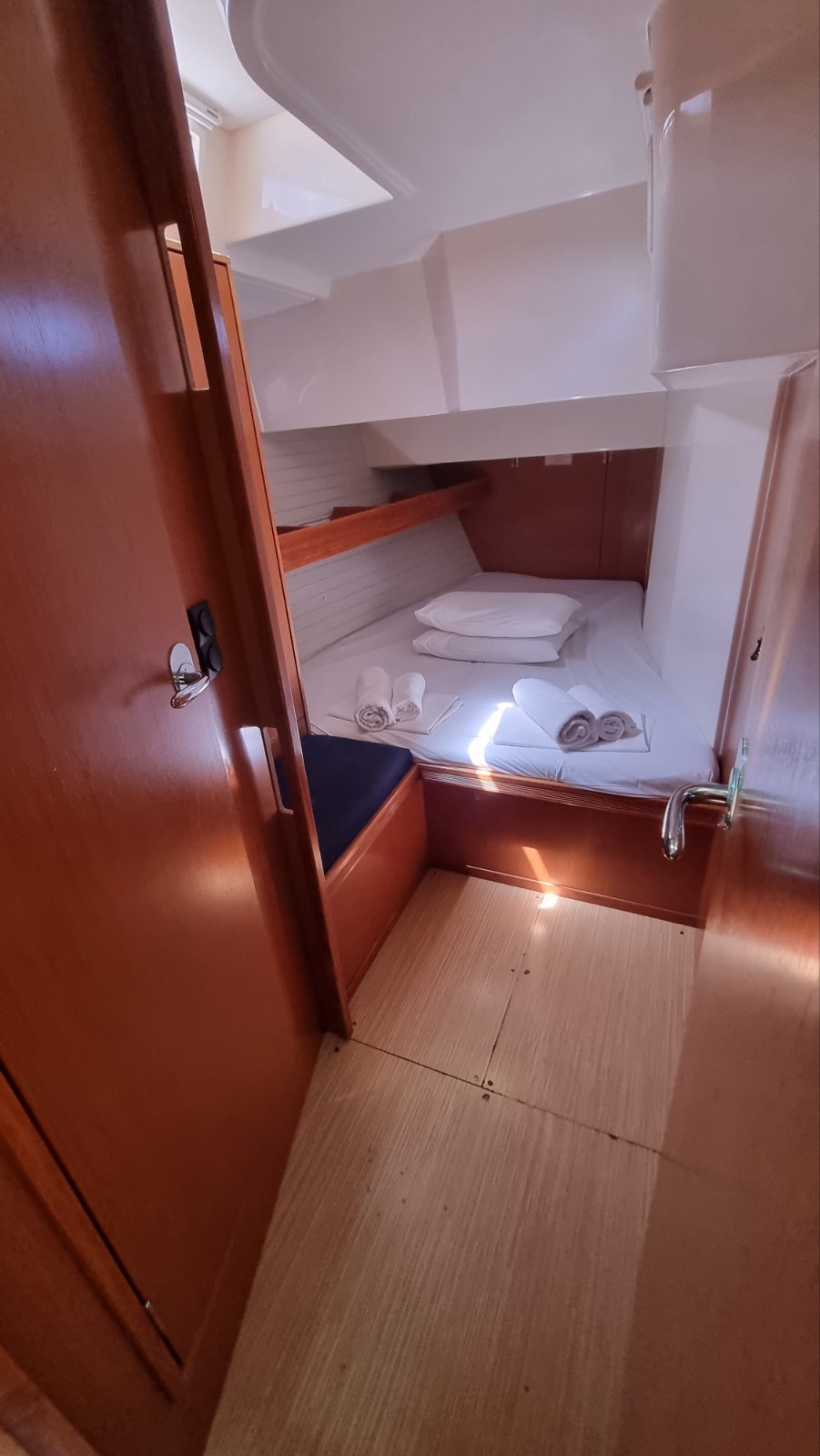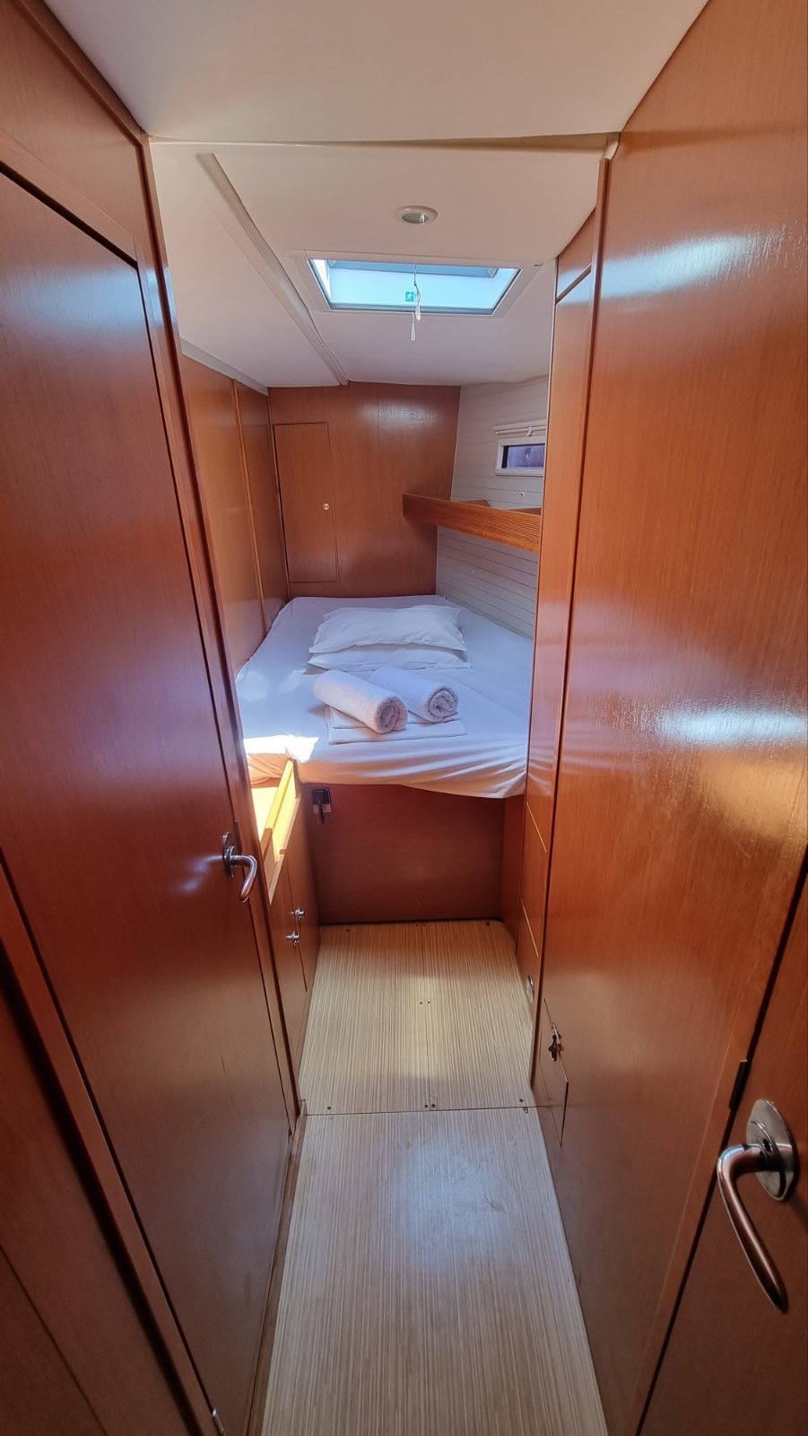 Die Yacht ist 15 Jahre alt, was man auch merkt. Im Wasser-System ist eine Undichtigkeit, die Pumpe läuft ca. alle 8 Minuten an. Wir haben die Pumpe immer nur dann eingeschaltet, wenn wir diese benötigten. In der Bilge stand sehr viel Wasser, was die Bilgenpumpe nicht abgepumpt hat. Beim Check-In wurde das reklamiert, es wurde dann mit einem Staubsauger versucht die Bilge zu entleeren (ca. 20 x den Behälter vom Staubsauger entleert), während des Törns blieb der Pegel dann gleich. Ich gehe davon aus, dass beim vorherigen Törn die Bilge durch diese Undichtigkeit voll gelaufen ist. In der Ruderanlage ist sehr viel "Luft", das Ruder konnte nicht festgeklemmt werden, was dann Nachts zu unangenehmer Geräusch-Entwicklung geführt hat. Sehr positiv ist die Dinghy-Garage, der geräumige Salon und große, gut funktionierende Kühlschränke.