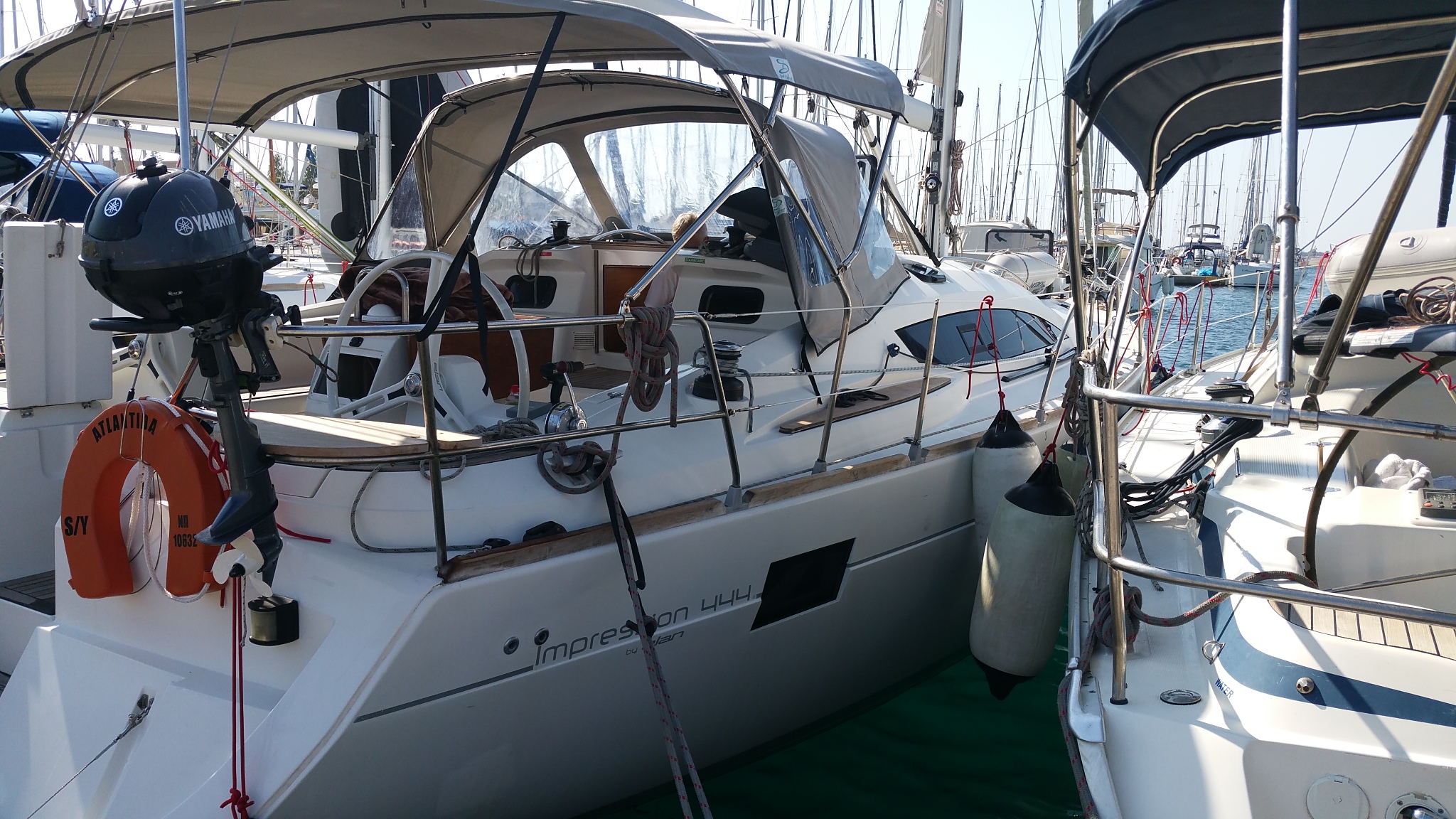 | Outside | 220 V-Landanschluss, Anker mit Kette, Badeplattform, Biminitop, Bootshaken, Cockpitdusche, Cockpitlautsprecher, elektr. Ankerwinsch, Festmacherleinen, Heckdusche, Solaranlage, Sprayhood, Treibanker, Wantenschneider |