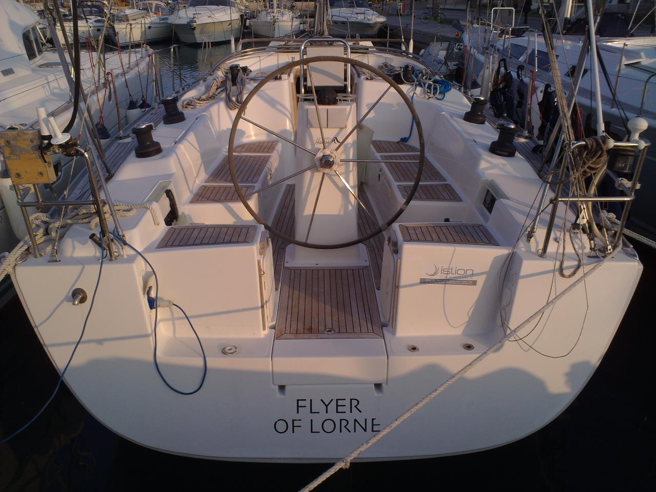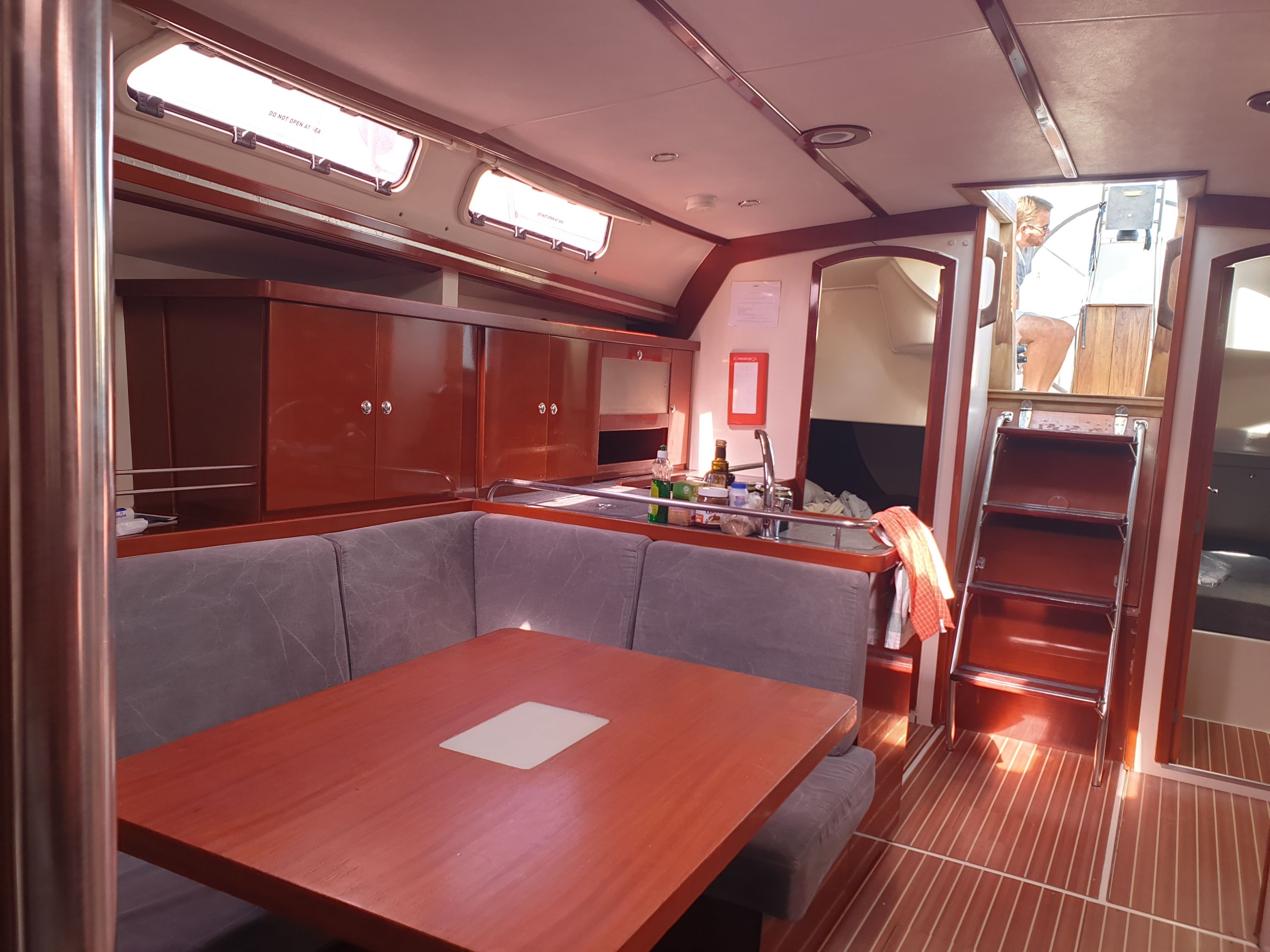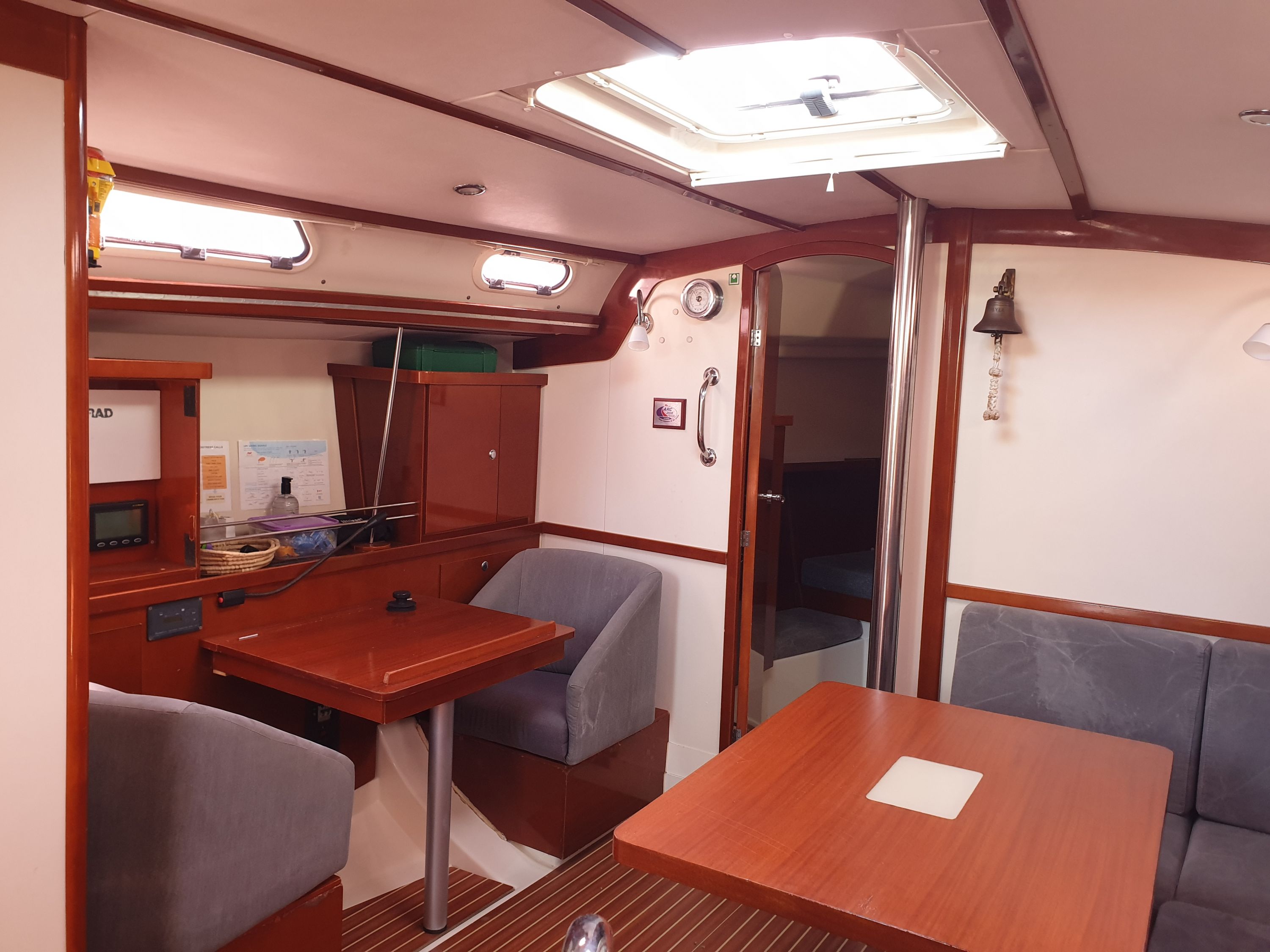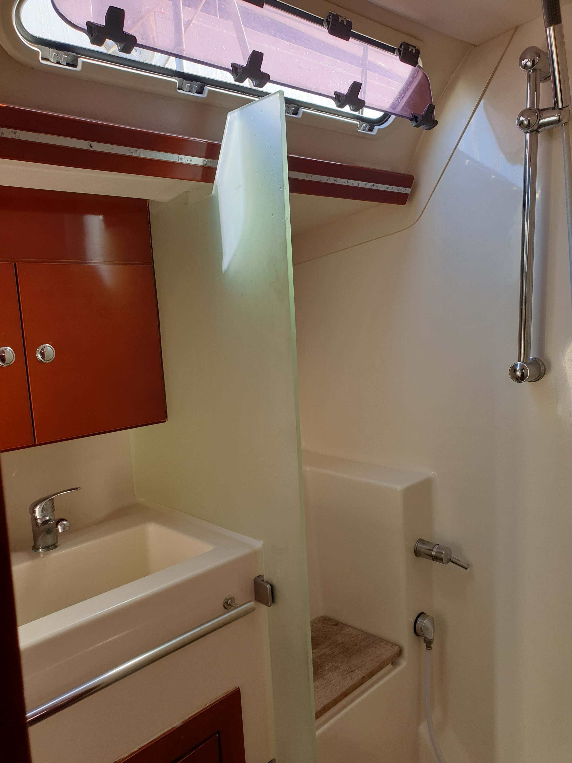| Outside | 220 V-Landanschluss, Anker mit Kette, Badeleiter, Badeplattform, Biminitop, Bootshaken, Cockpitpolster, Cockpittisch, elektr. Ankerwinsch, Faltpropeller, Fender, Schnorchelausrüstung, Solaranlage, Sprayhood, Wantenschneider, Wasserschlauch, Winschen |