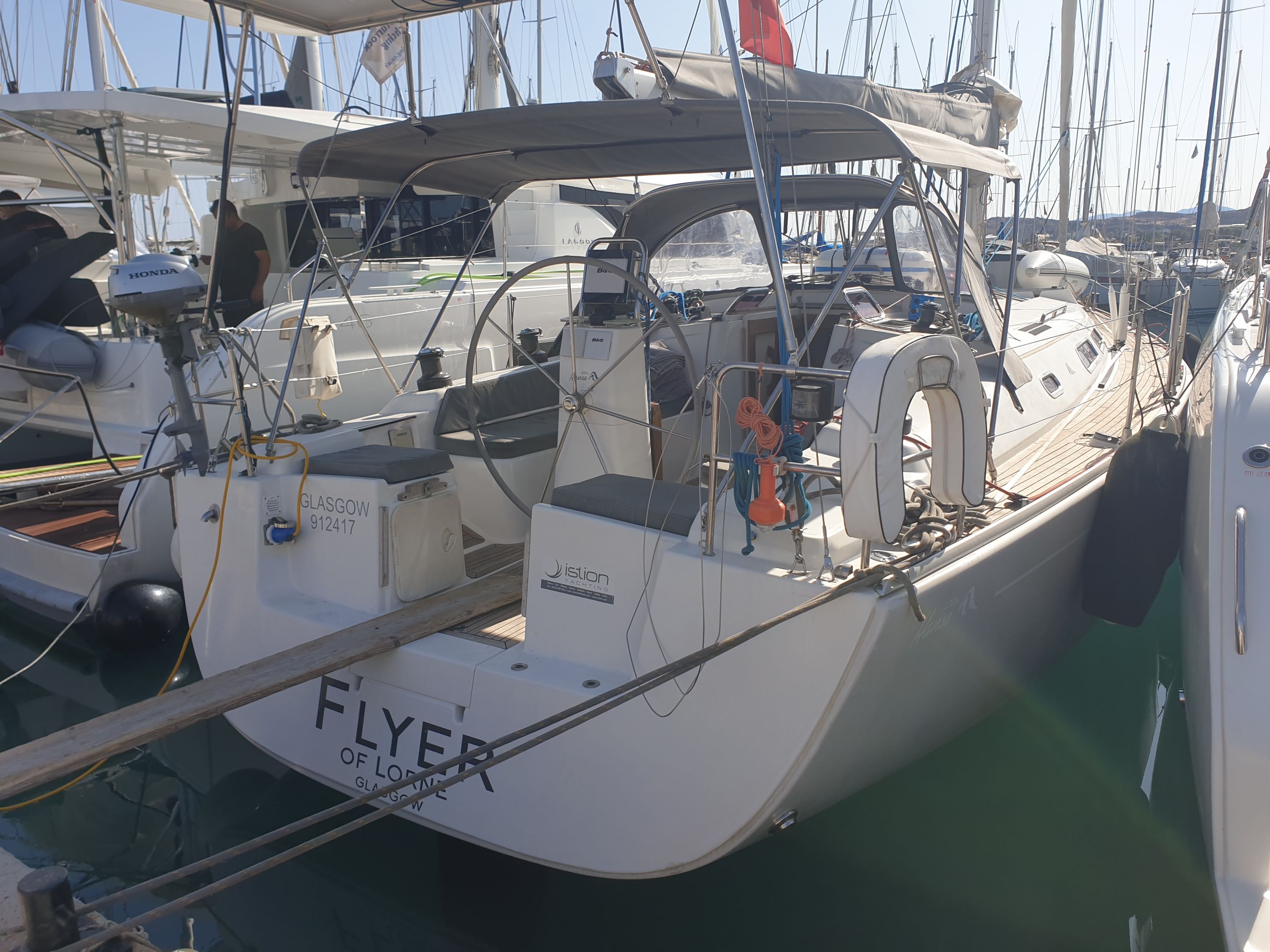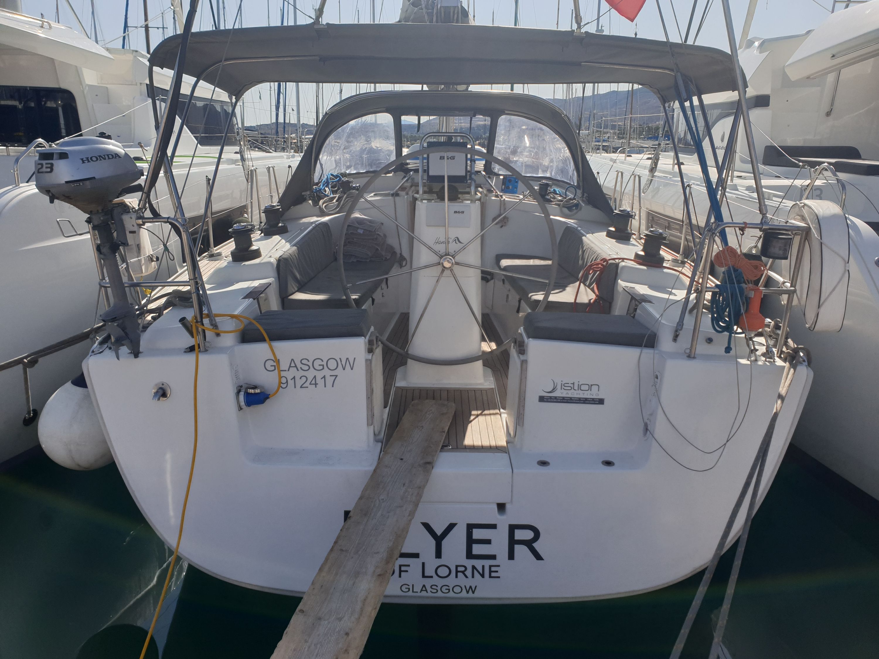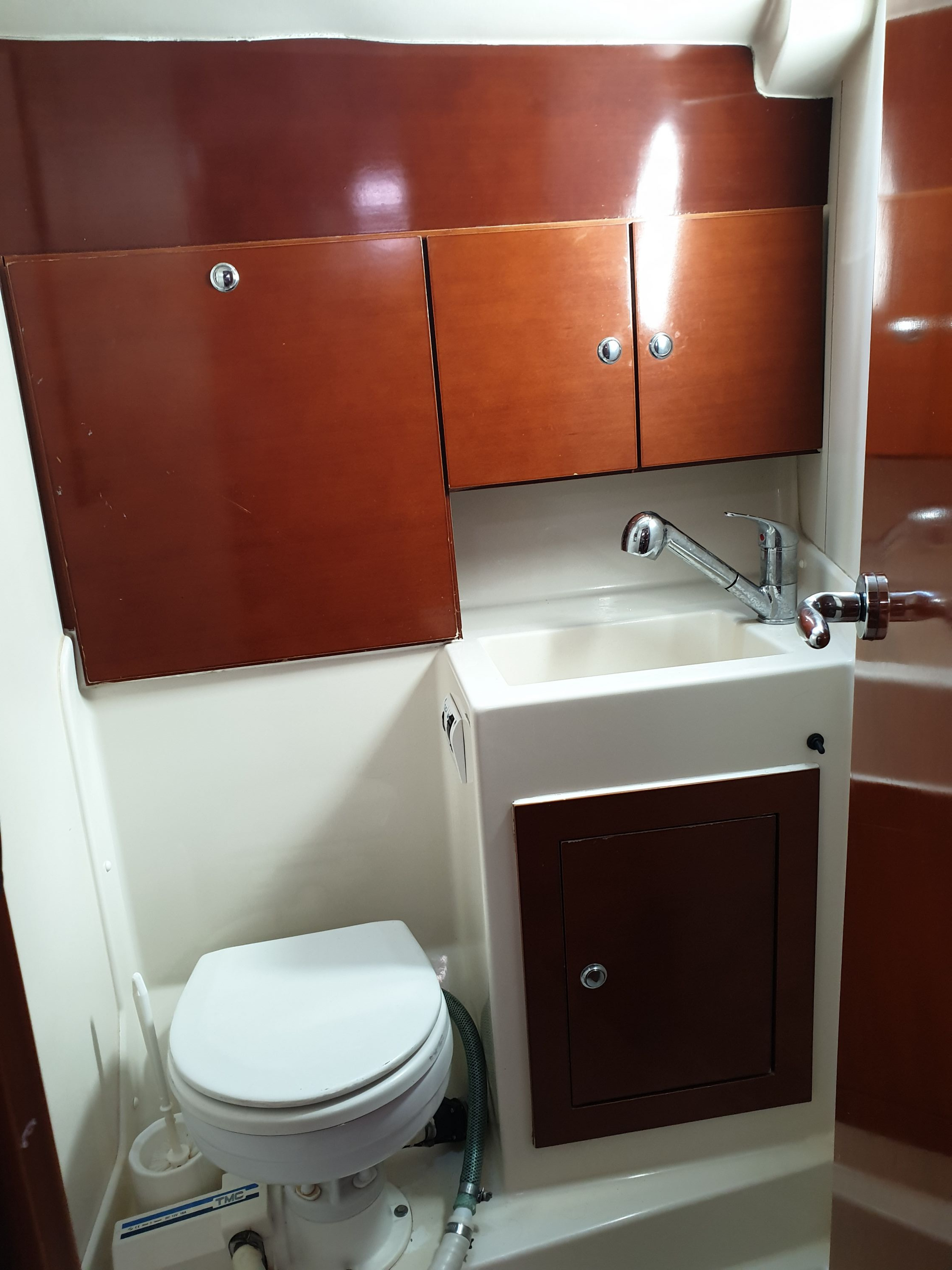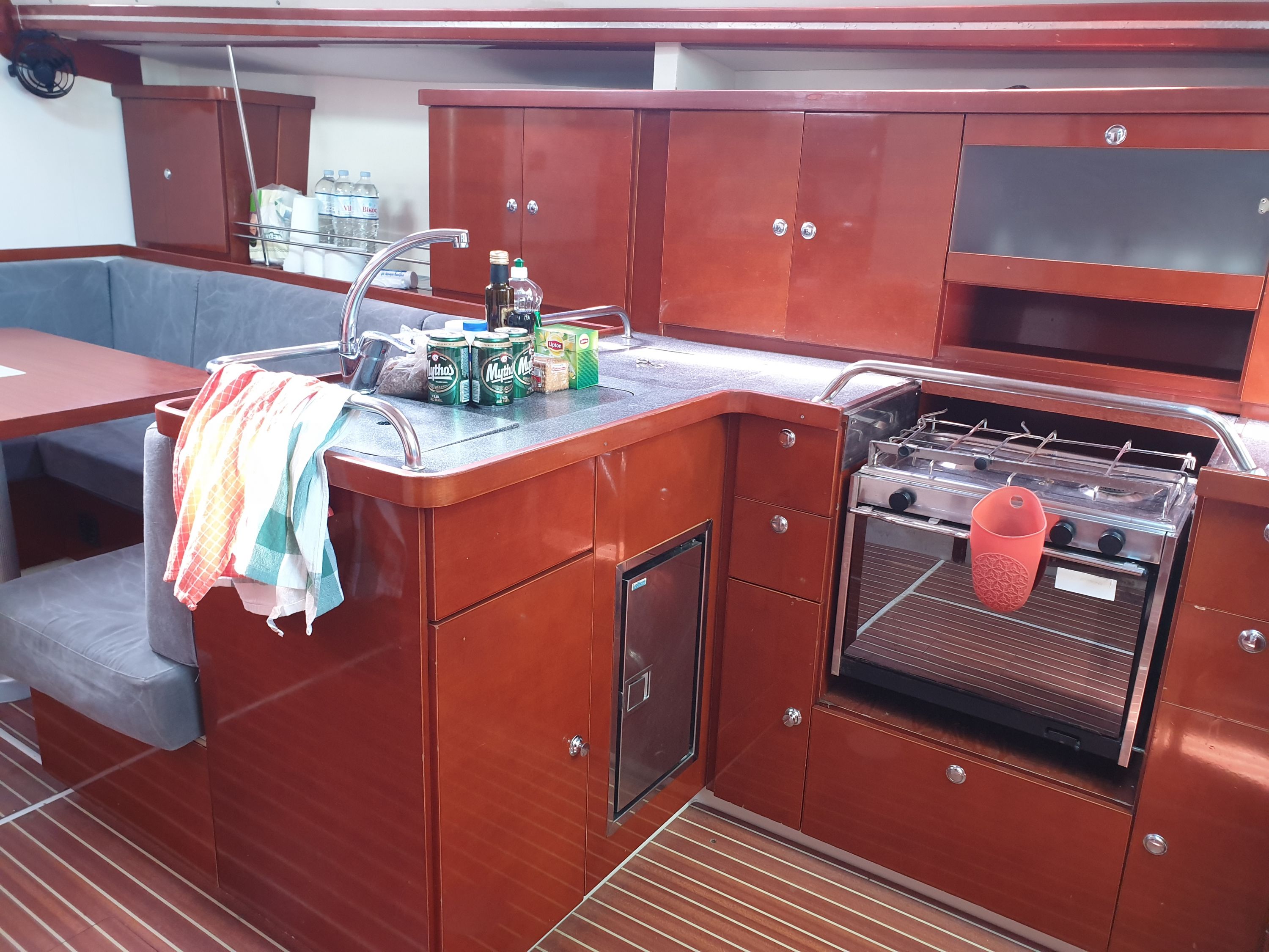 | Outside | 220 V-Landanschluss, Anker mit Kette, Badeleiter, Badeplattform, Biminitop, Bootshaken, Cockpitpolster, Cockpittisch, elektr. Ankerwinsch, Faltpropeller, Fender, Schnorchelausrüstung, Solaranlage, Sprayhood, Wantenschneider, Wasserschlauch, Winschen |