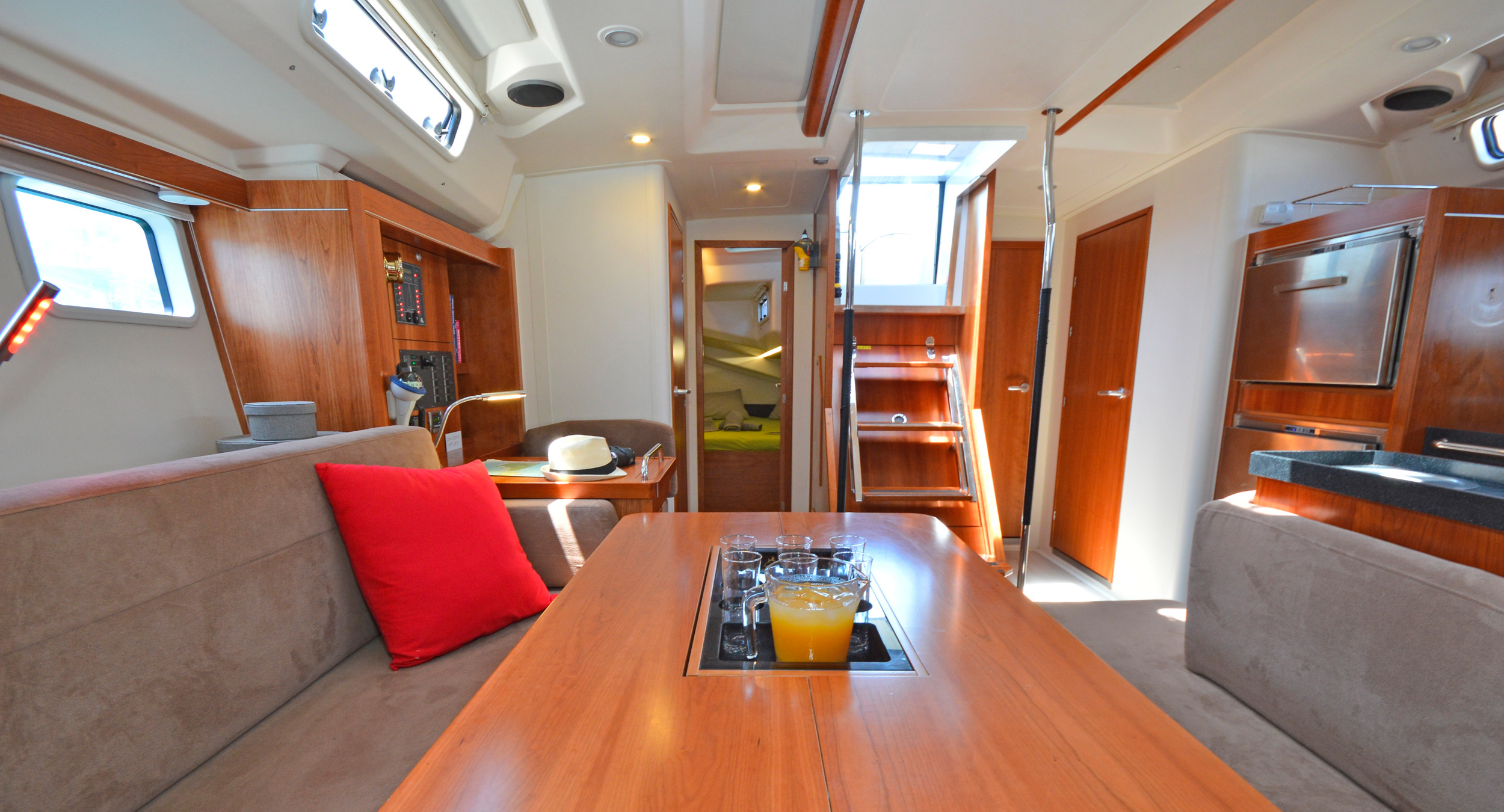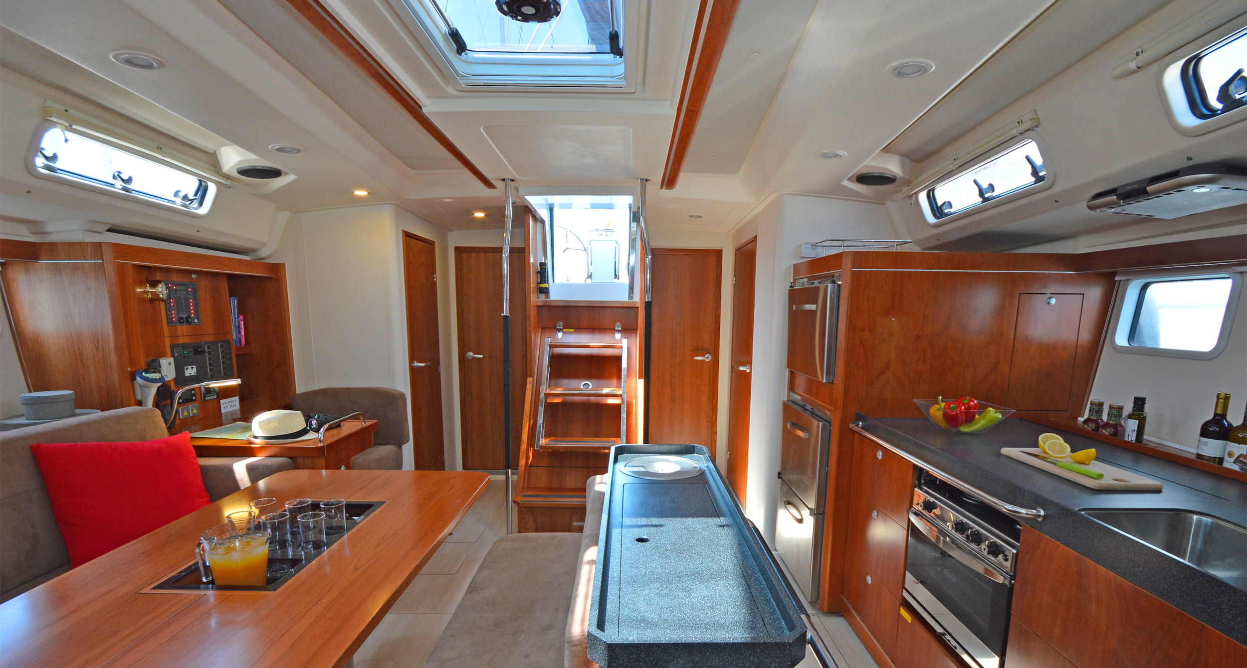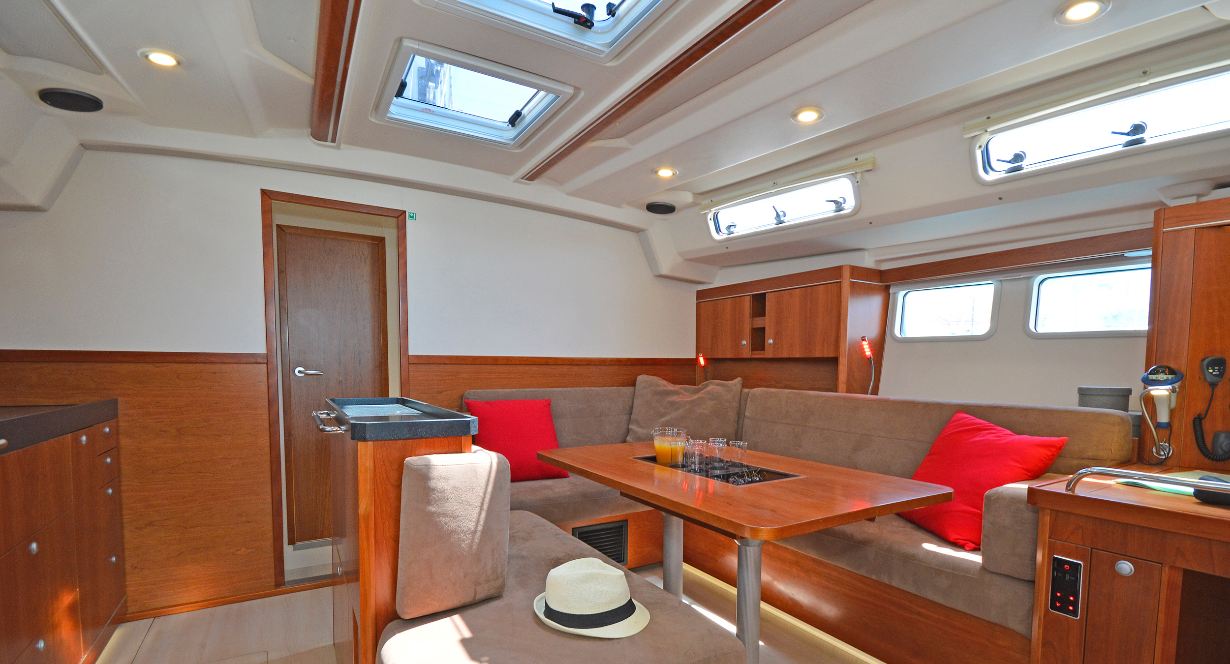 | Inside | 220V Steckdosen, Gasherd, Generator, Inverter 12V/220V, Klimaanlage (ohne Landstrombedarf), Kühlschrank, Ladegerät, Pantryausstattung, Radio mit CD, USB, Bluetooth, USB Steckdose, Ventilatoren in Kabinen, WC (elektr.) |