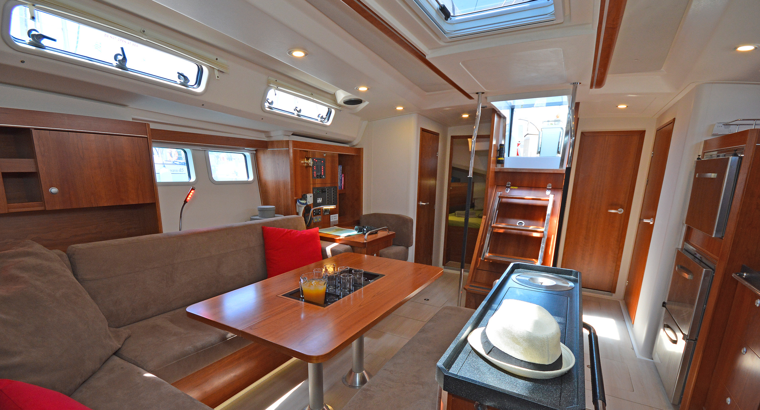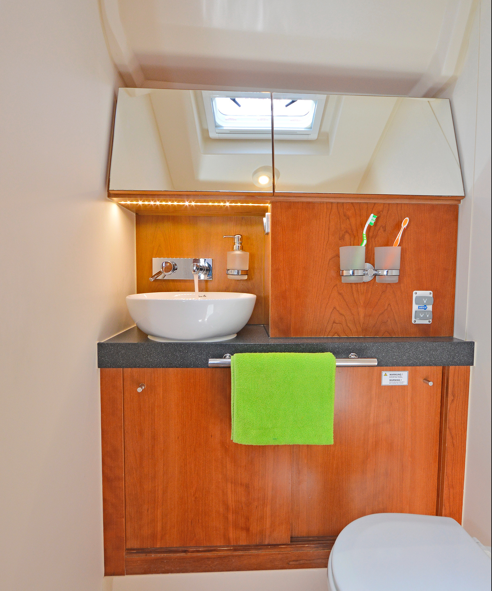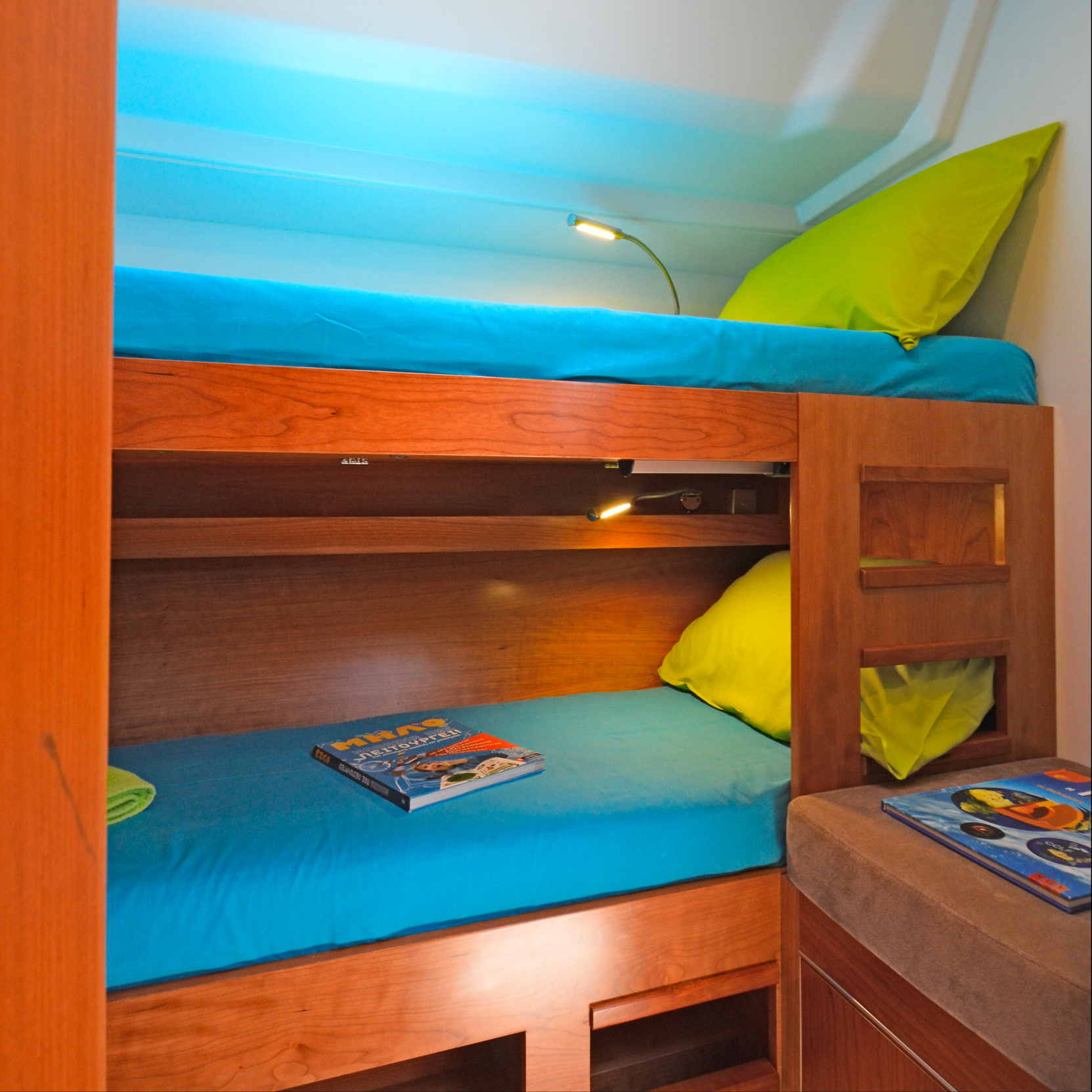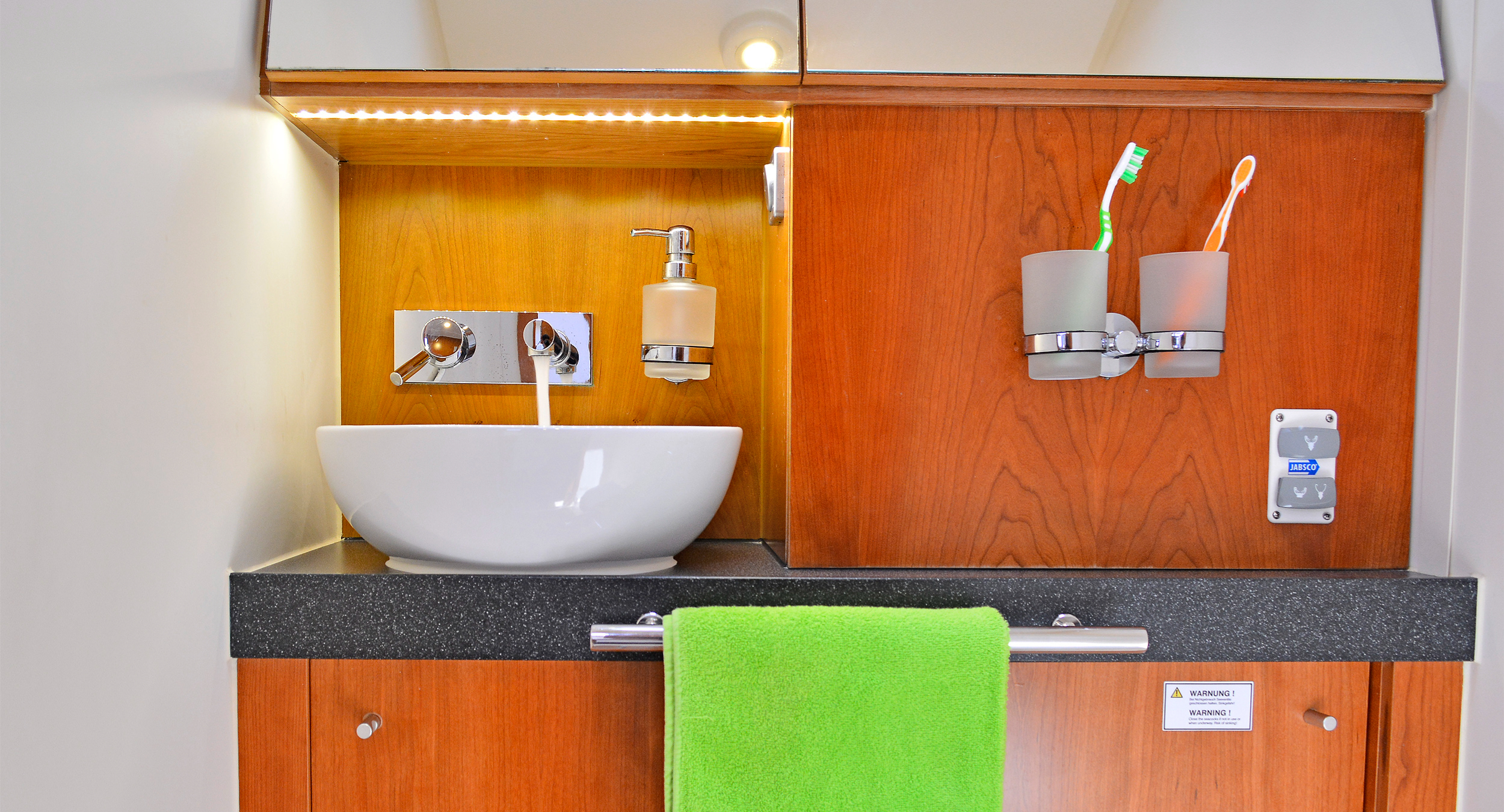 | Inside | 220V Steckdosen, Gasherd, Generator, Inverter 12V/220V, Klimaanlage (ohne Landstrombedarf), Kühlschrank, Ladegerät, Pantryausstattung, Radio mit CD, USB, Bluetooth, USB Steckdose, Ventilatoren in Kabinen, WC (elektr.) |