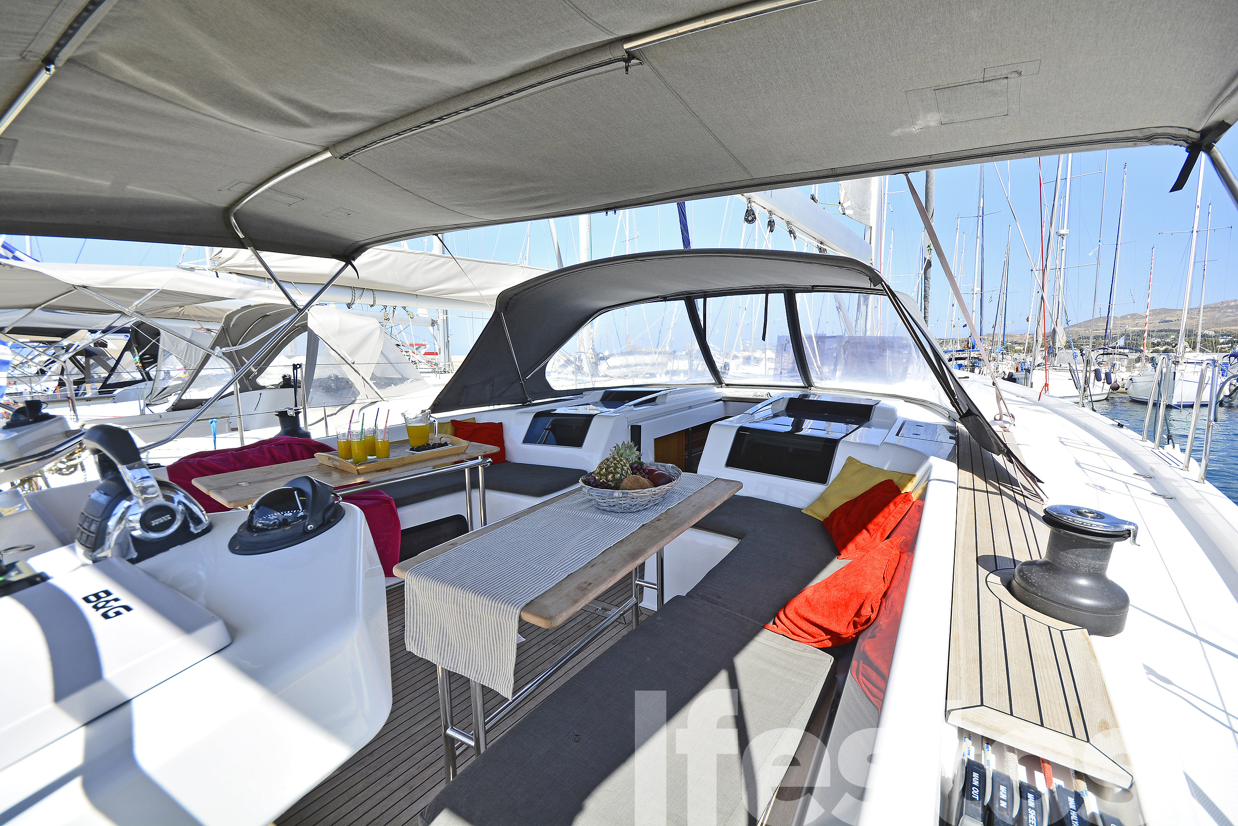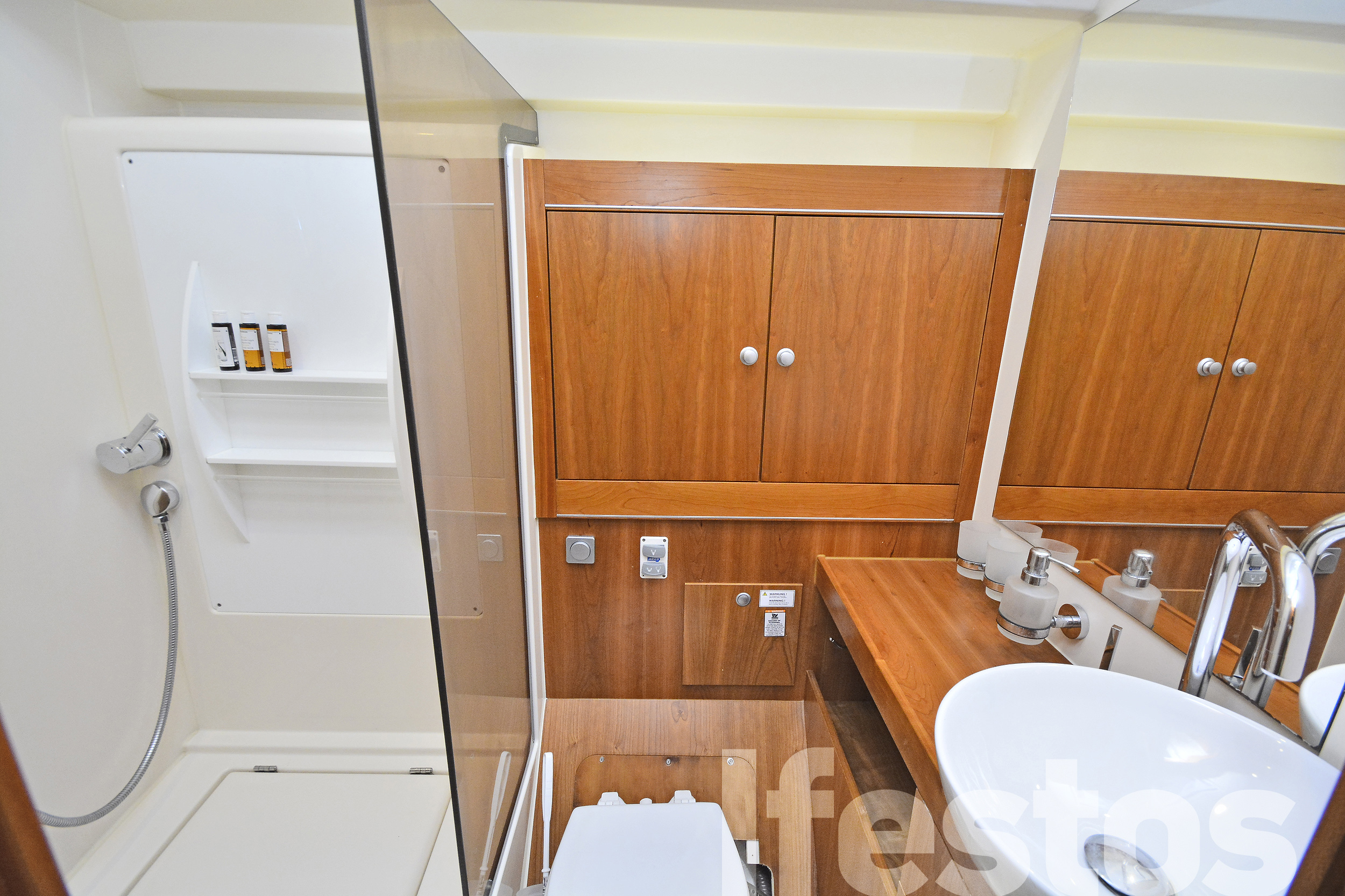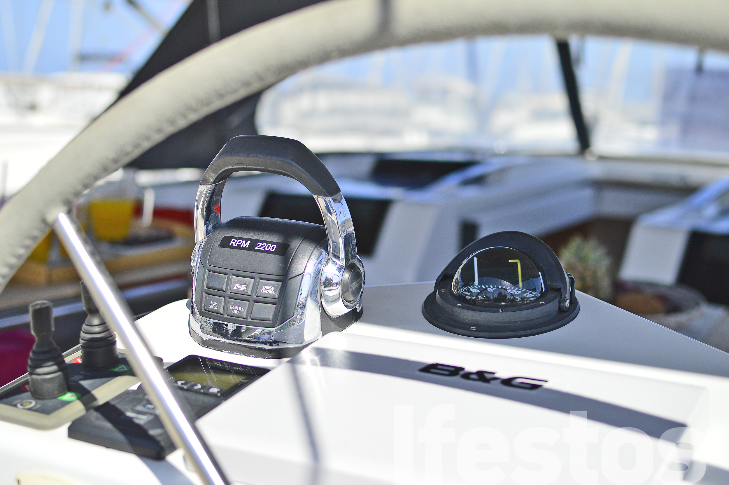 | Safety | Autopilot, Bilgepumpe, Bootsmannstuhl, Bordapotheke, Bordwerkzeug, Bugstrahlruder, Feststoffschwimmwesten, Feuerlöscher, Handbilgepumpe, Leuchtboje, Licht und Leine für Rettungskragen, Lifebelts, Navigationslichter, Nebelhorn, Notpinne, Notsignale, Radarreflektor, Rettungsinsel, Rettungskragen, Sicherheitsausrüstung, Taschenlampe, UKW-Funk, Zweitanker |