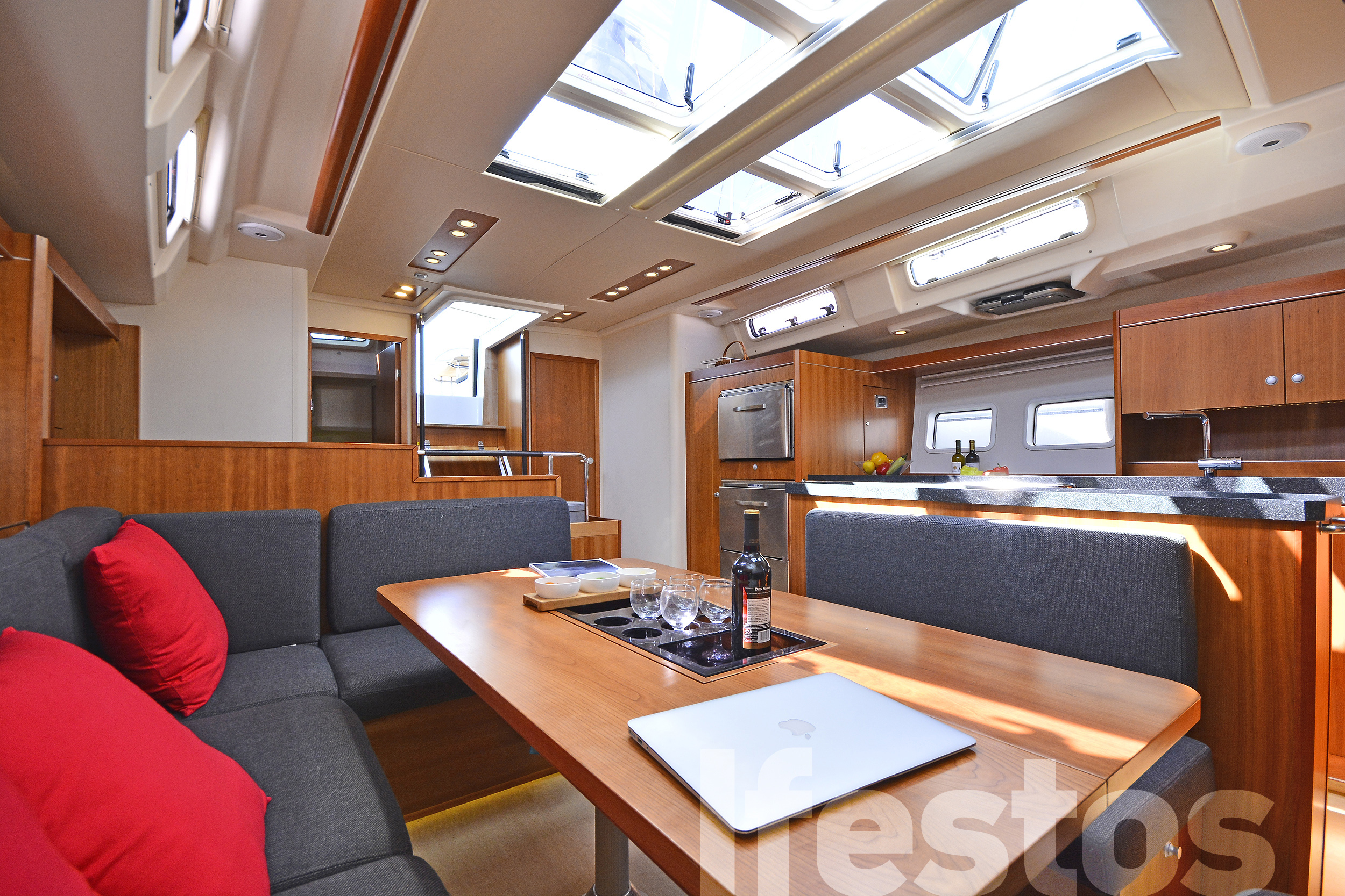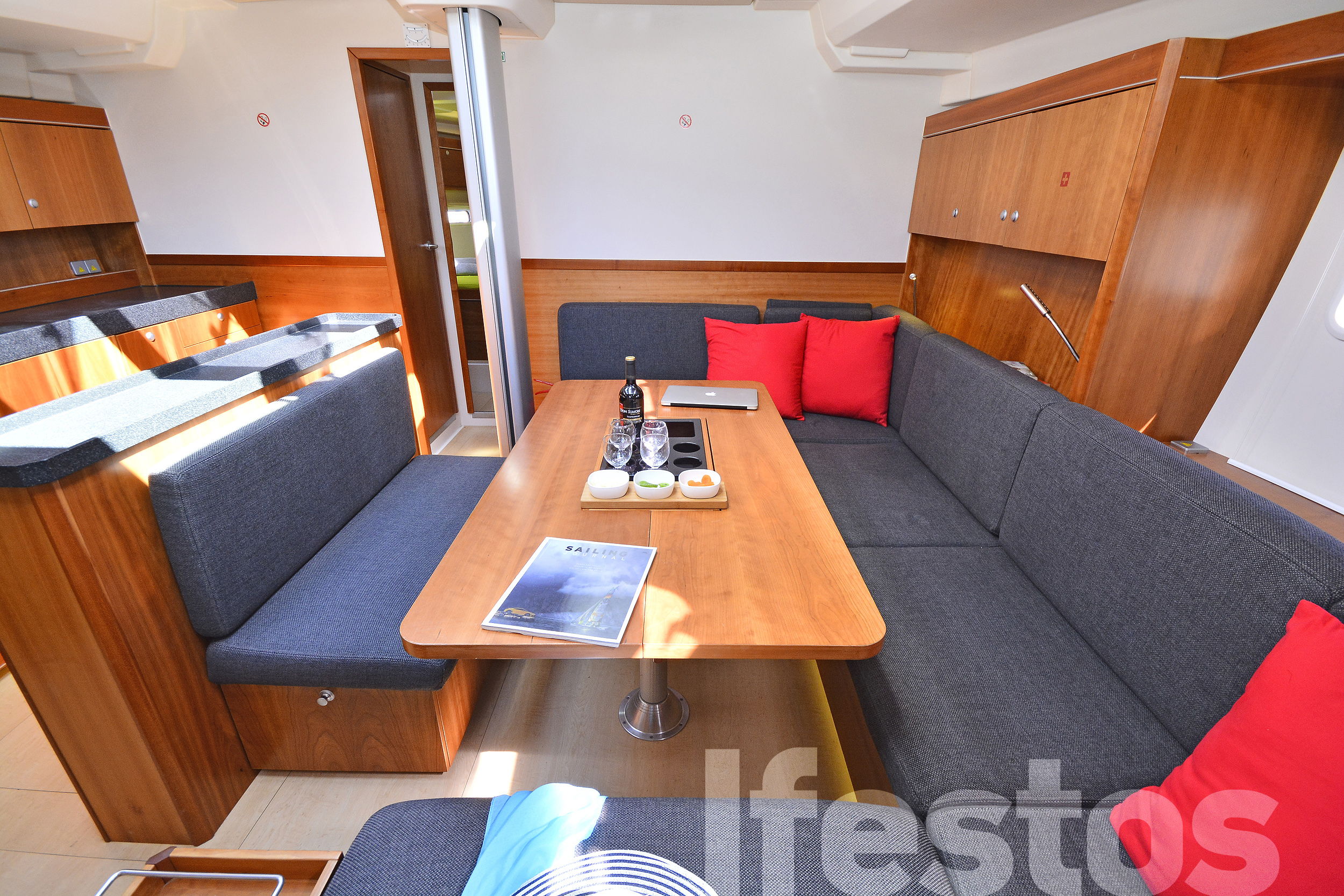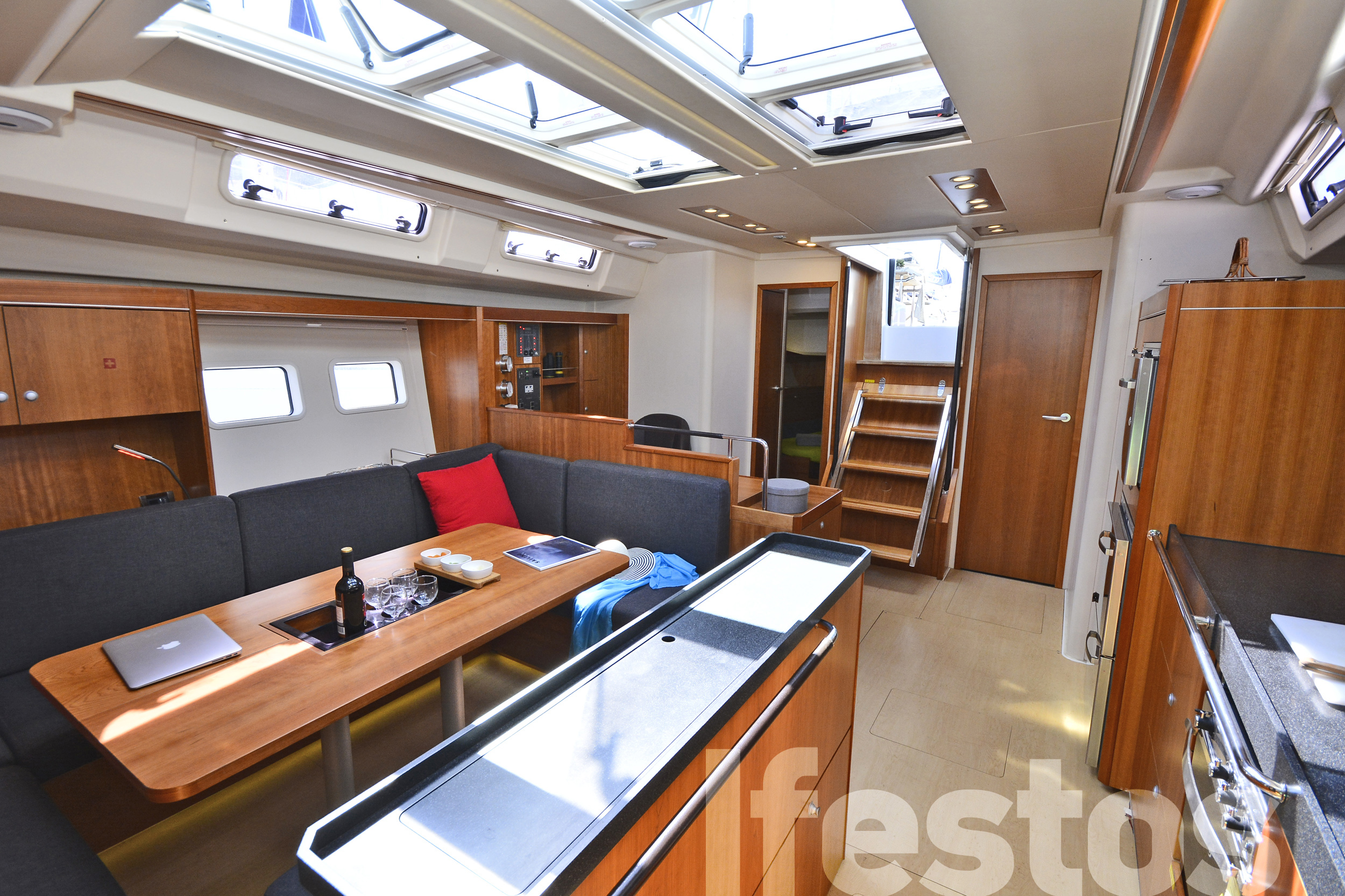 | Safety | Autopilot, Bilgepumpe, Bootsmannstuhl, Bordapotheke, Bordwerkzeug, Bugstrahlruder, Feststoffschwimmwesten, Feuerlöscher, Handbilgepumpe, Leuchtboje, Licht und Leine für Rettungskragen, Lifebelts, Navigationslichter, Nebelhorn, Notpinne, Notsignale, Radarreflektor, Rettungsinsel, Rettungskragen, Sicherheitsausrüstung, Taschenlampe, UKW-Funk, Zweitanker |
