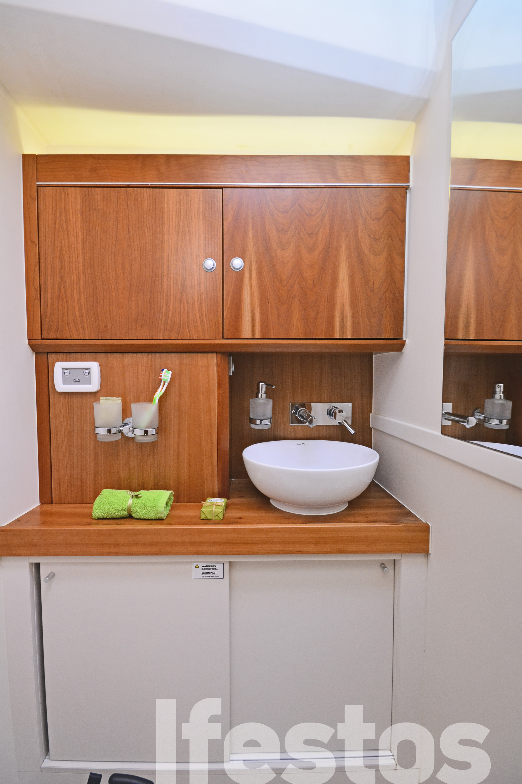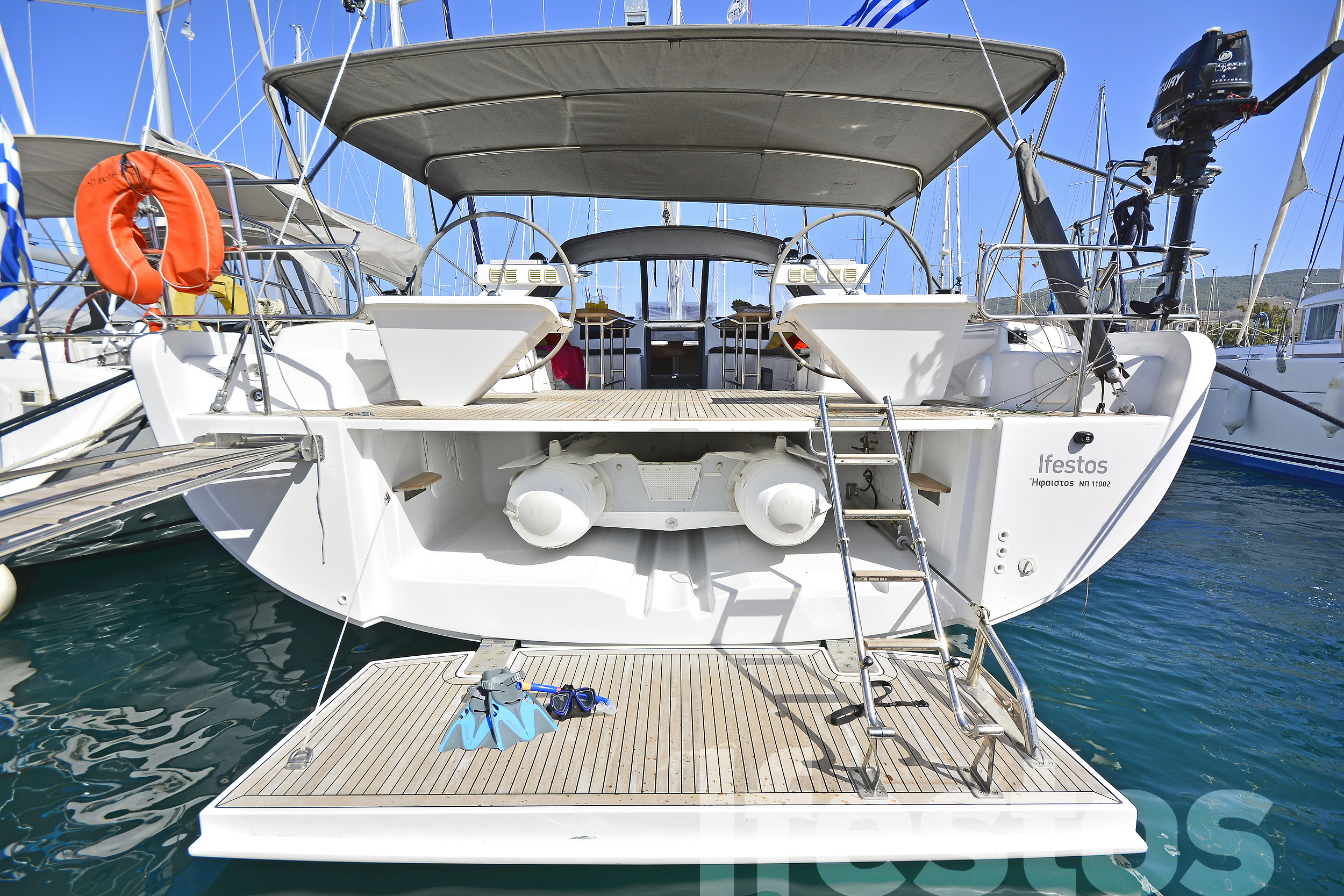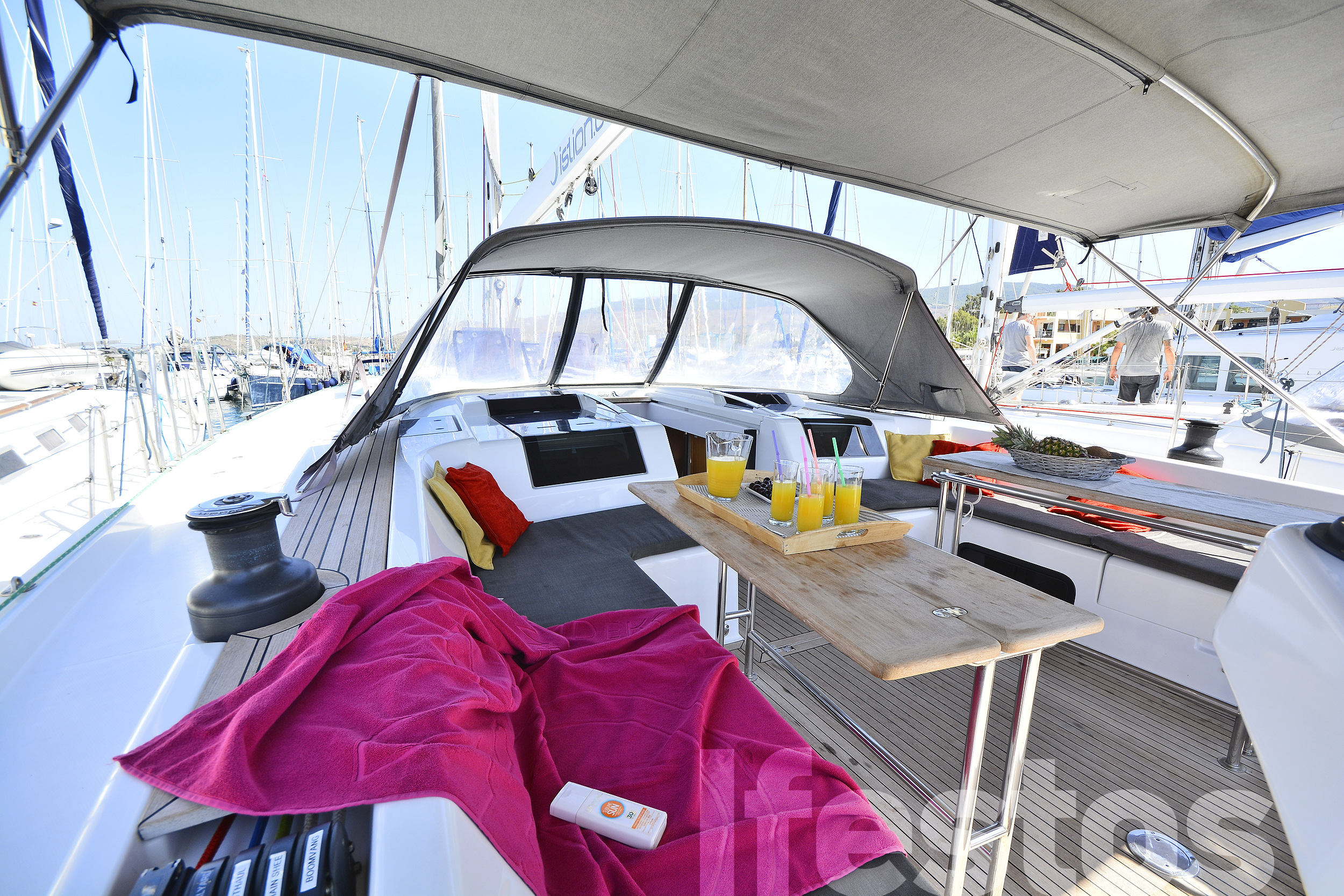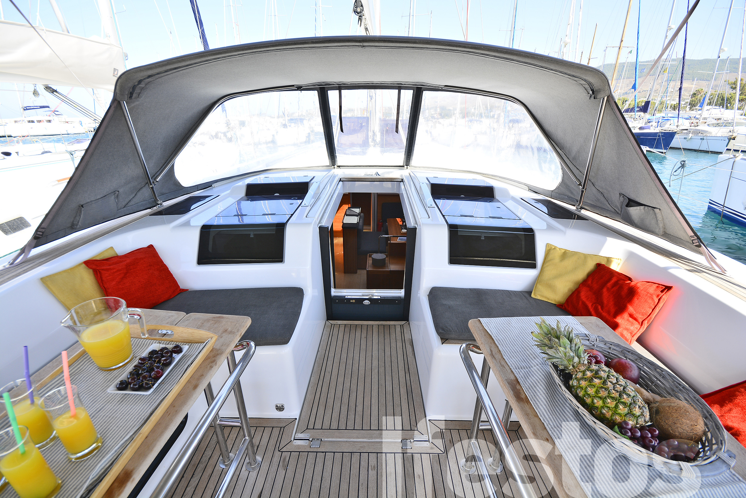 | Outside | 220 V-Landanschluss, Anker mit Kette, Badeleiter, Badeplattform, Biminitop, Bootshaken, Cockpitpolster, Cockpittisch, elektr. Ankerwinsch, elektr. Winsch, Fender, Festmacherleinen, Gangway, Schnorchelausrüstung, Solaranlage, Sprayhood, Teak im Cockpit, Unterwasserbeleuchtung, Wantenschneider, Wasserschlauch, Winschen |