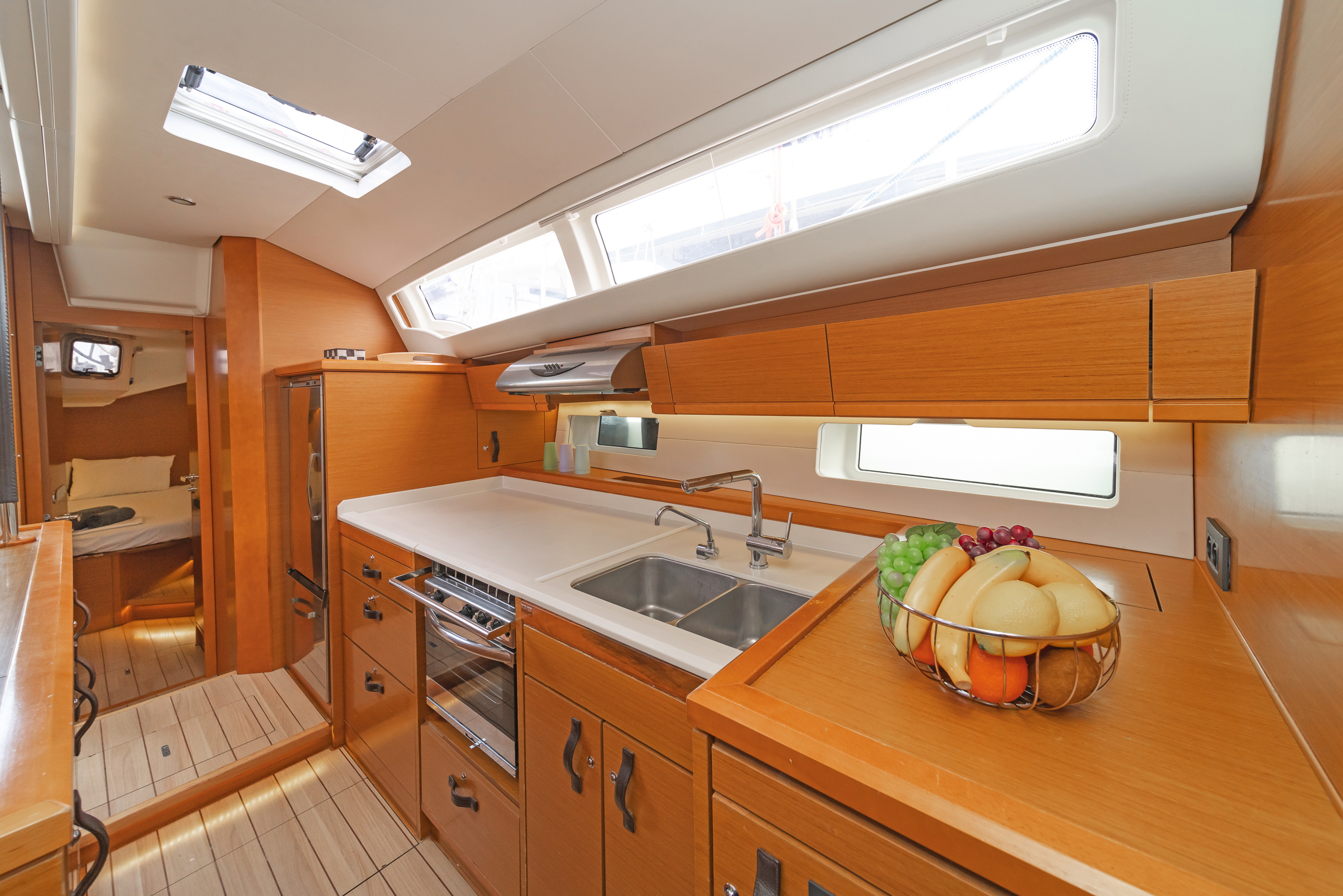 | Navigation | Barometer, elektr. Seekarten, Fernglas, GPS mit Kartenplotter, GPS mit Kartenplotter im Cockpit, Hafenhandbücher, Handpeilkompass, Seekarten, Sumlog, Tridata (Log, Echolot, Windm.), Windmesser |