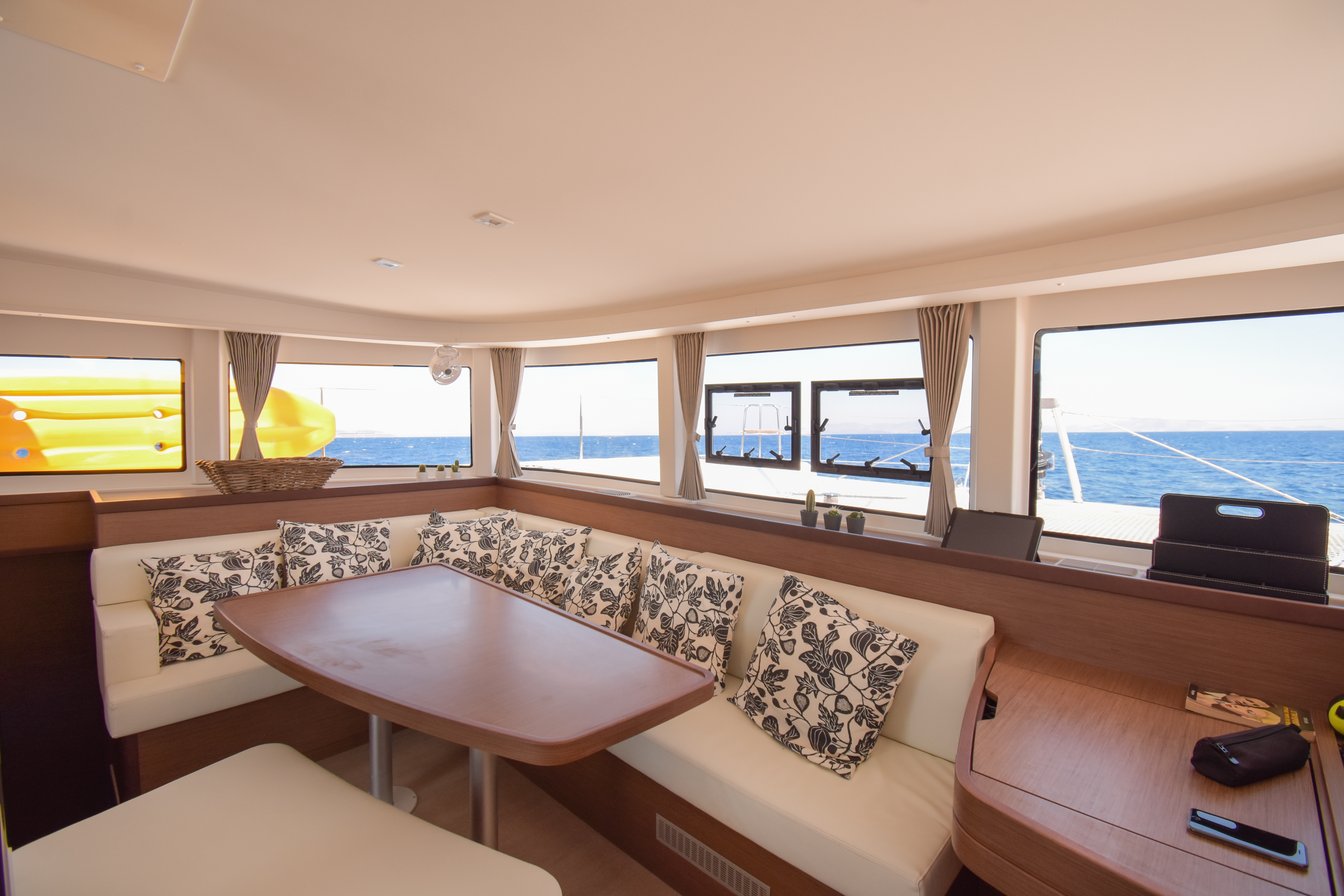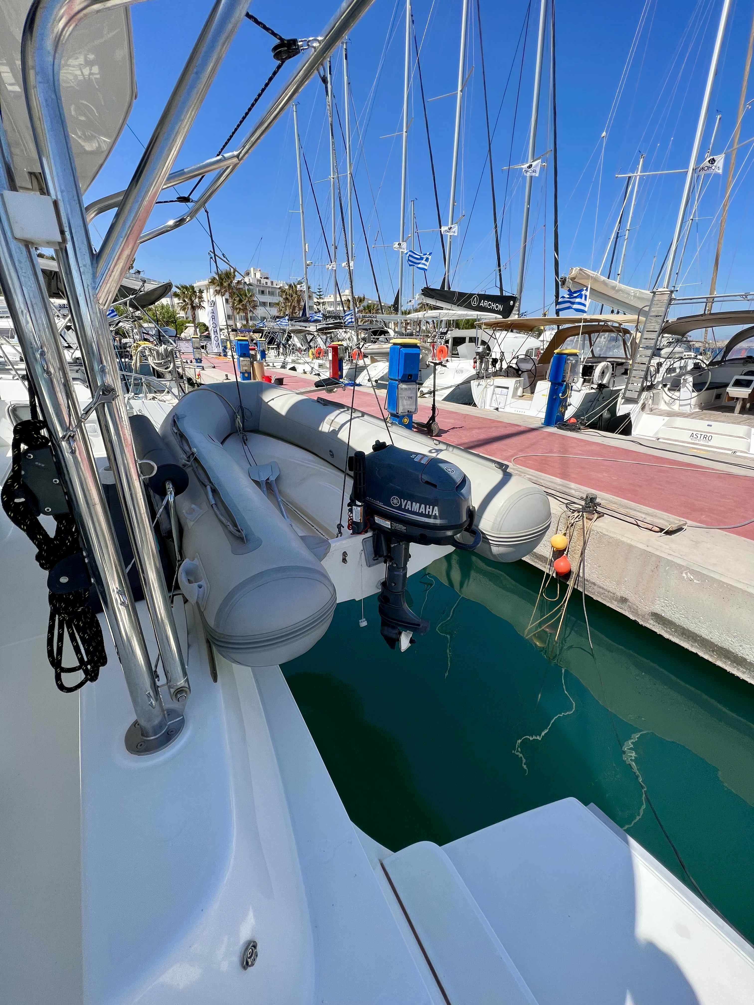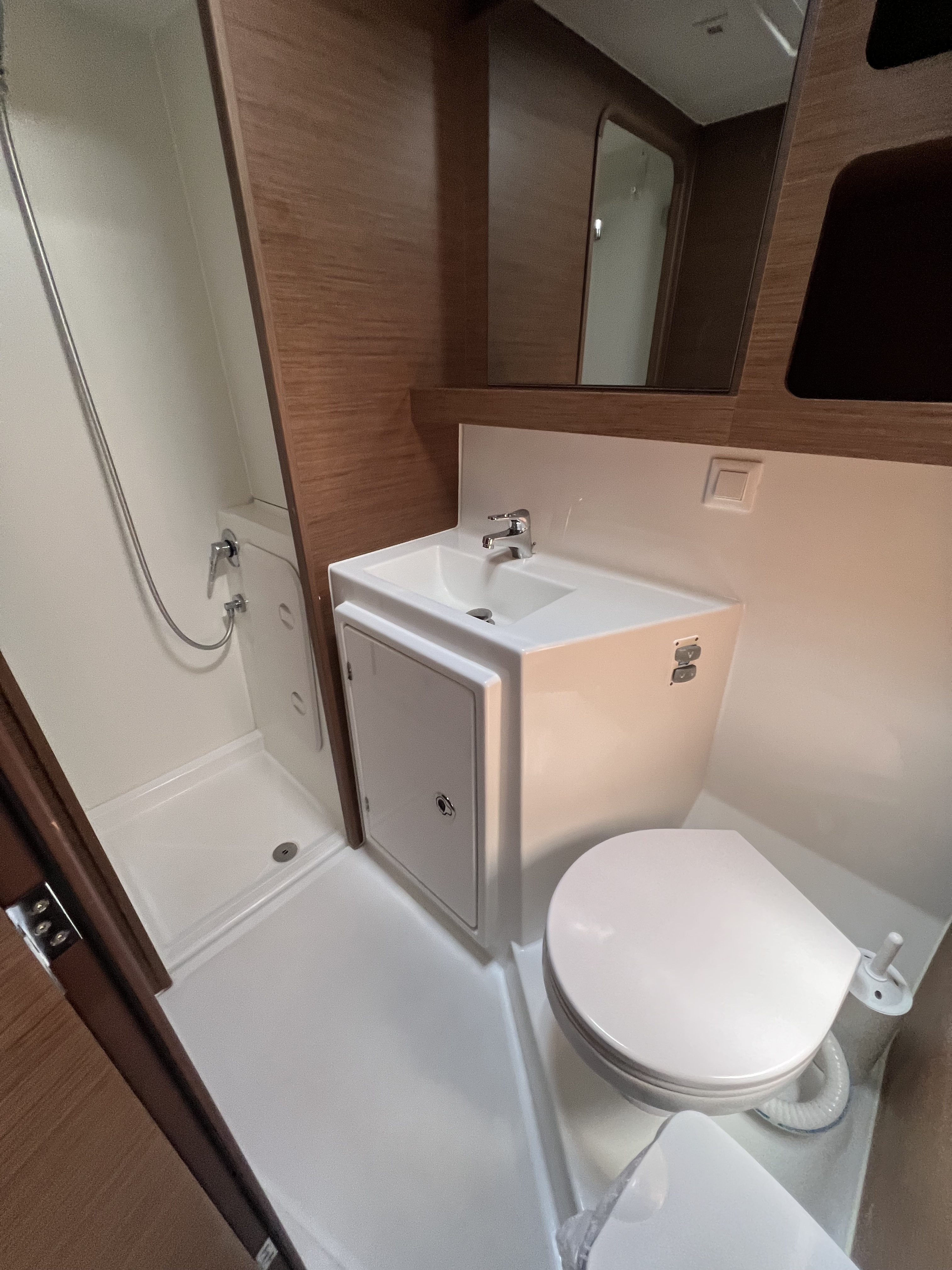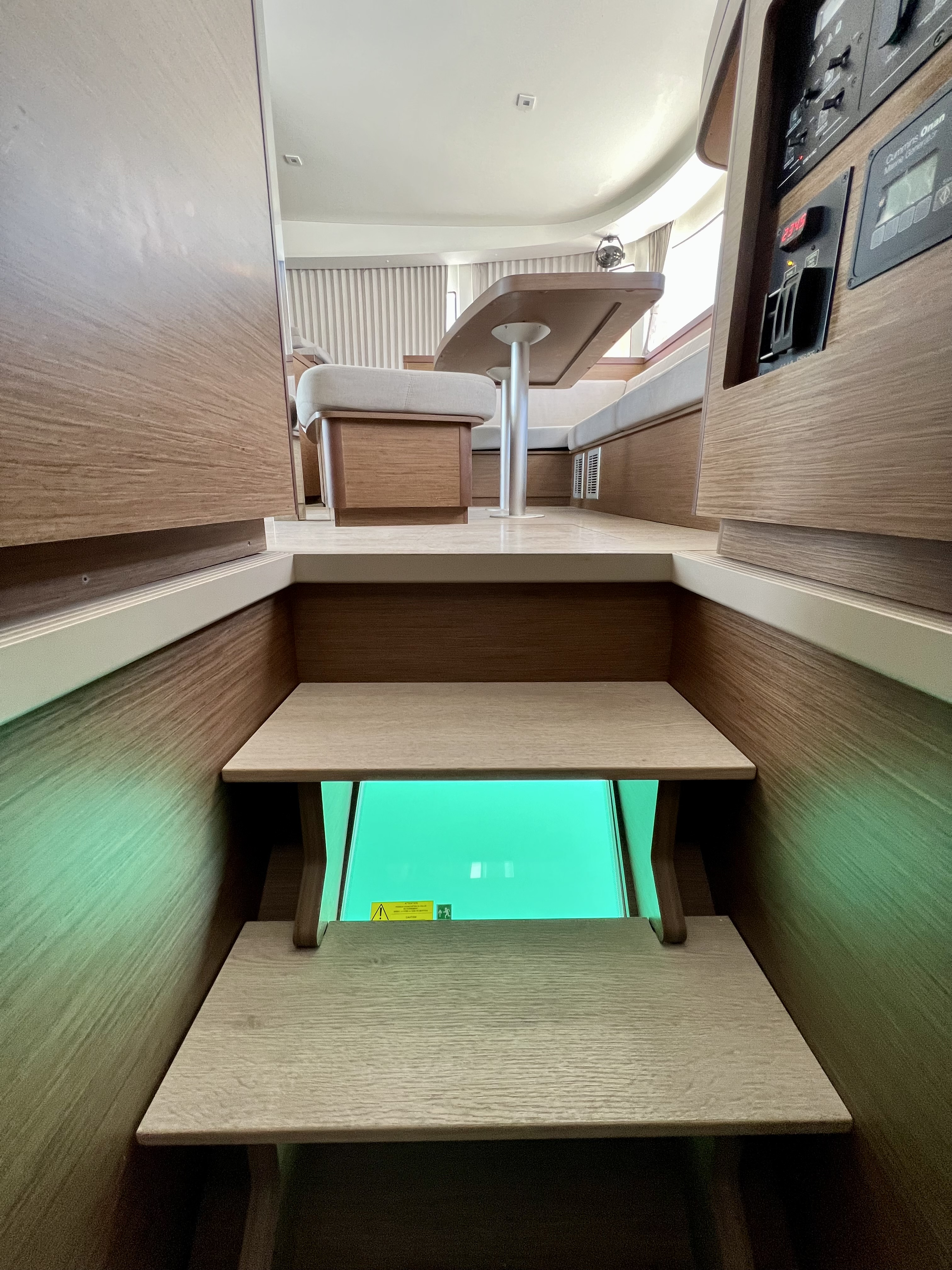 | Inside | 220V Steckdosen, Bluetooth Player, Gefrierschrank, Generator, Kaffeemaschine, Klimaanlage (ohne Landstrombedarf), Kühlschrank, Nespresso-Maschine, Pantryausstattung, Salontisch absenkbar, USB Steckdose, Ventilatoren in Kabinen, Watermaker, WC (elektr.) |