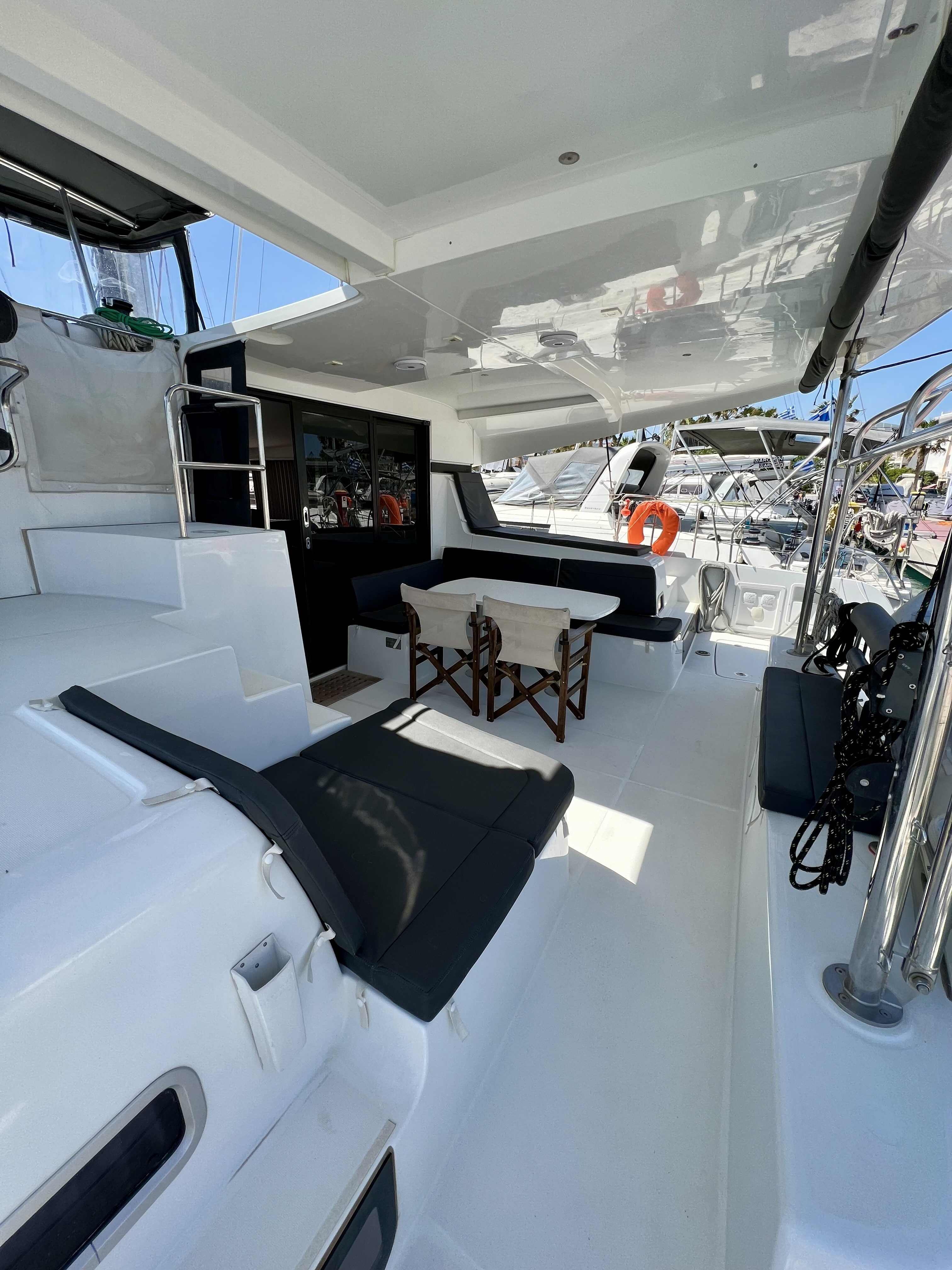 | Outside | Badeleiter, Biminitop, Cockpitdusche, Cockpitlautsprecher, Cockpitpolster, Cockpittisch, elektr. Ankerwinsch, elektr. Winsch, Fender, Solaranlage, Sprayhood |