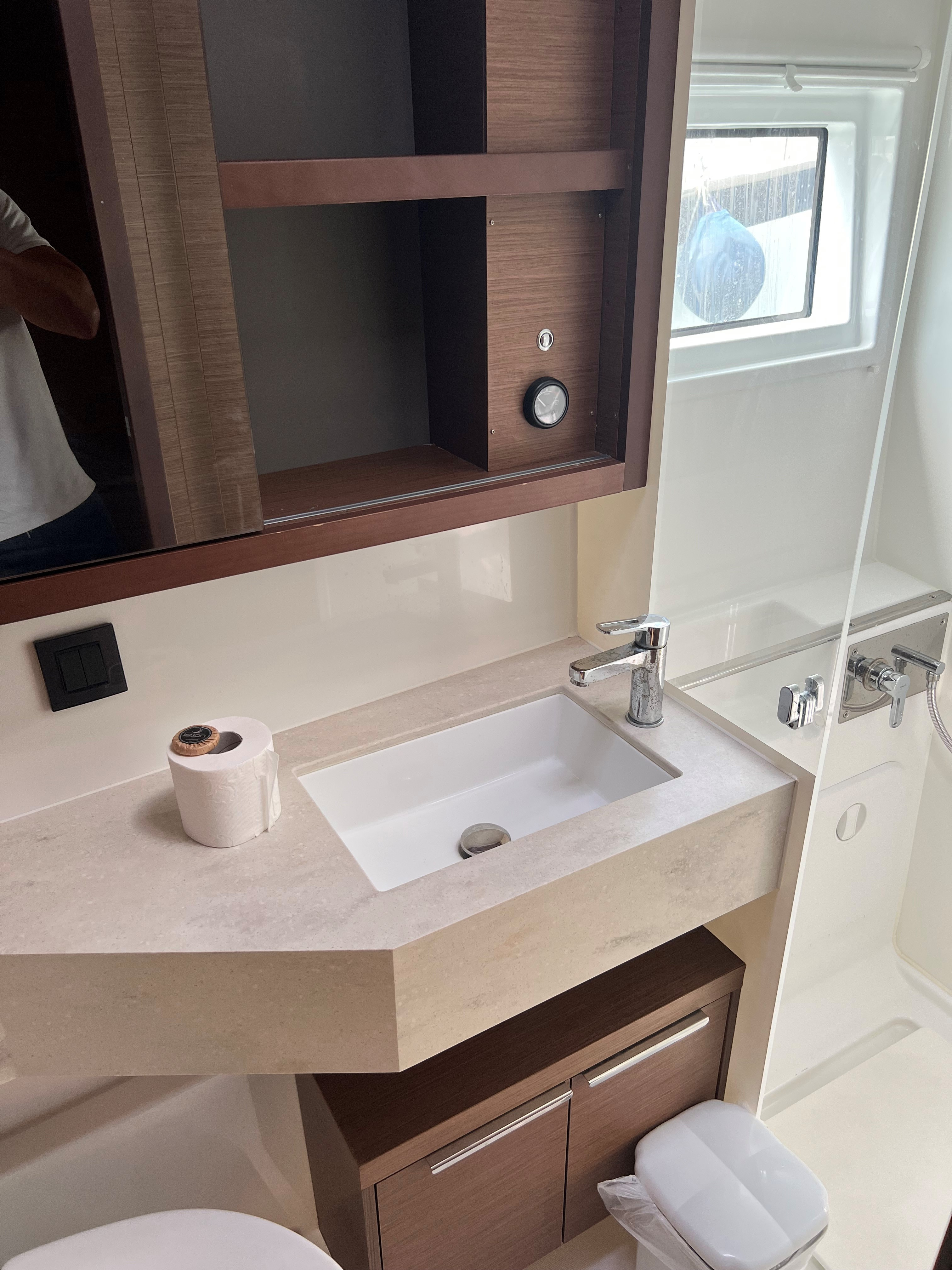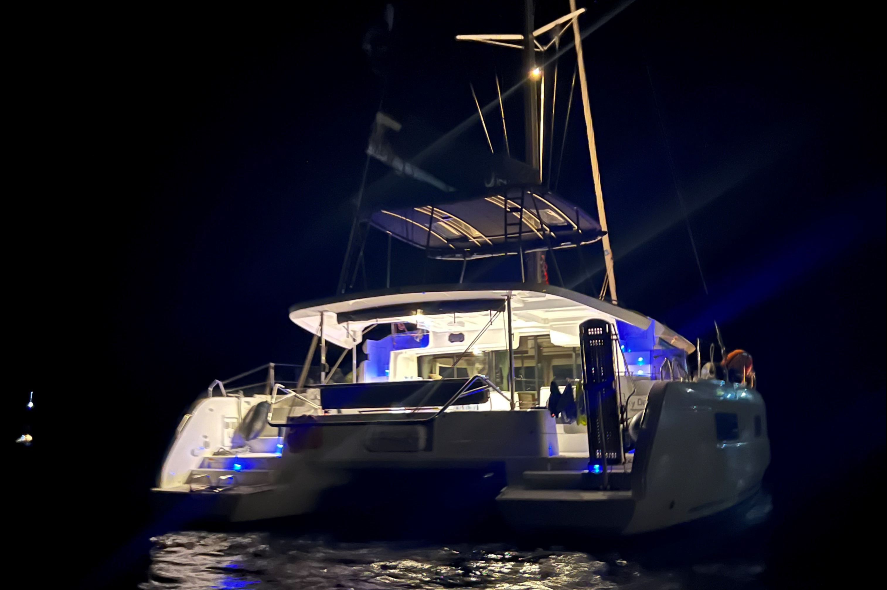 | Outside | Biminitop, Cockpitpolster, elektr. Winsch, Gangway, hydraul. Gangway, Solaranlage, Sprayhood, Unterwasserbeleuchtung |