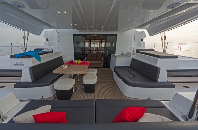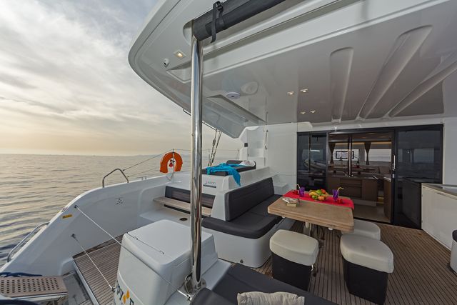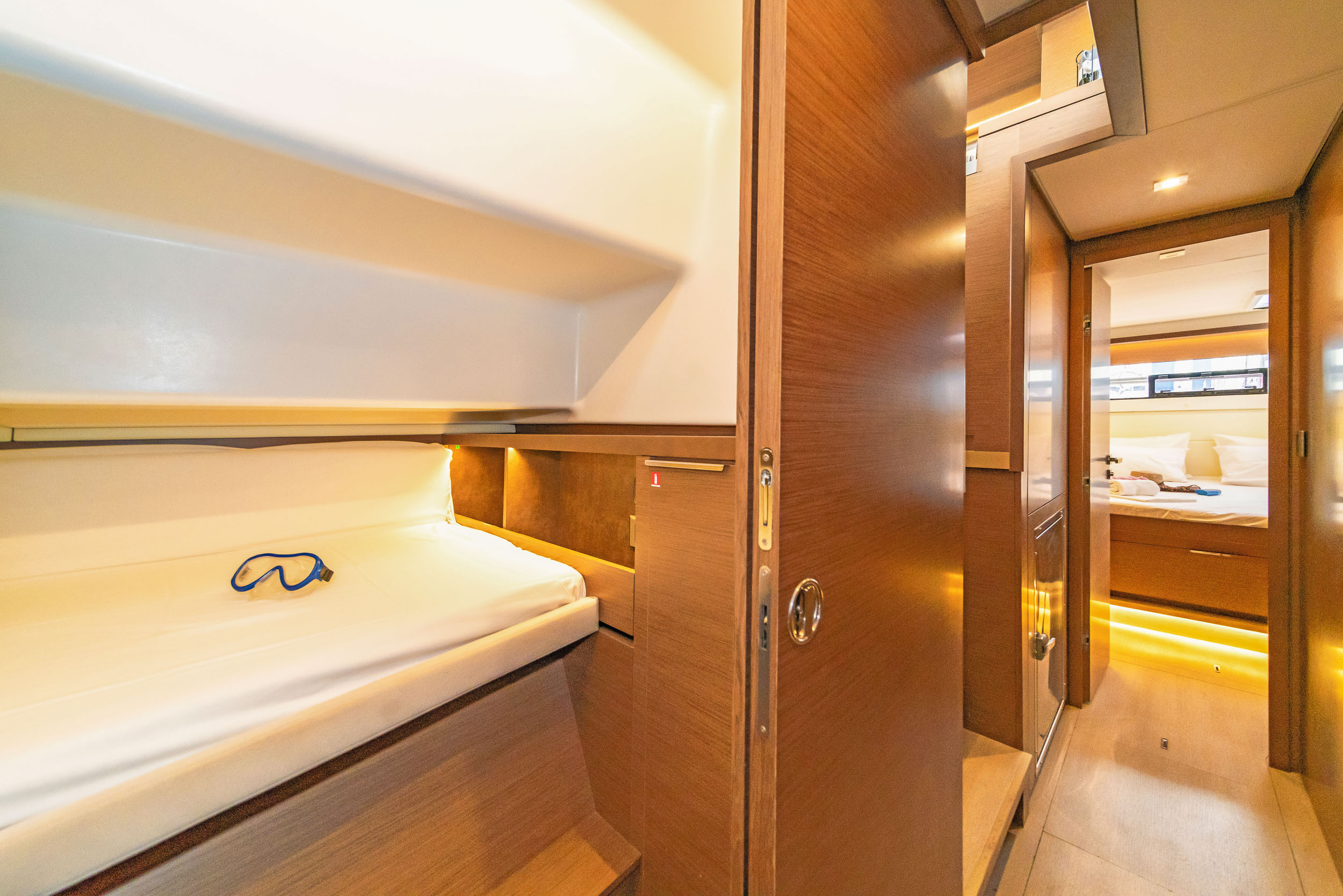 | Inside | 220V Steckdosen, Gasherd, Generator, Klimaanlage (ohne Landstrombedarf), Ladegerät, Luftpumpe für Beiboot, Pantryausstattung, Radio mit CD/MP3/USB/AUX-In, USB-Ladegerät für Mobilgeräte, Ventilatoren in Kabinen, Watermaker |