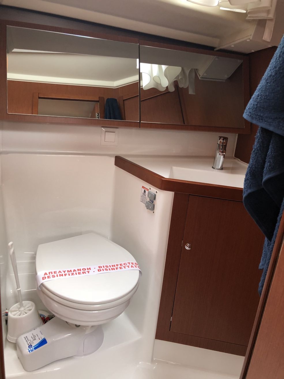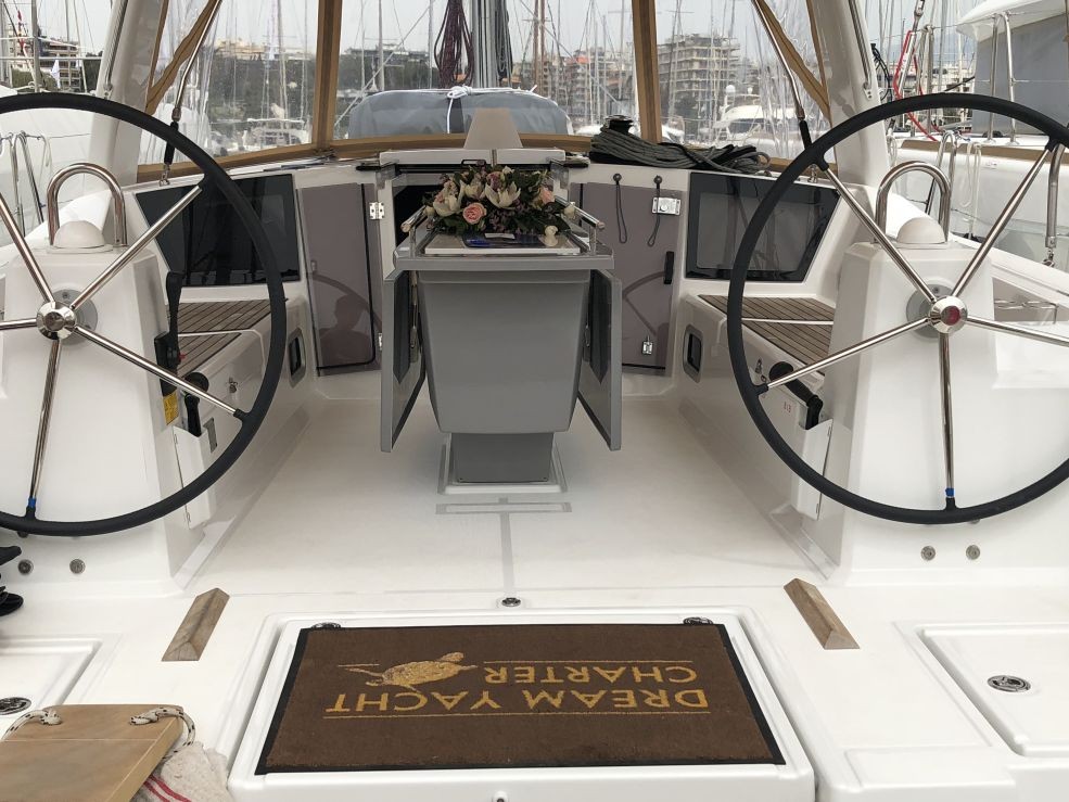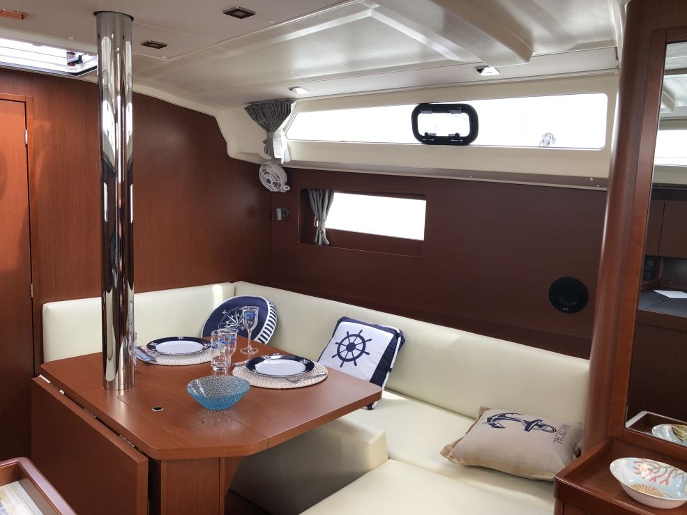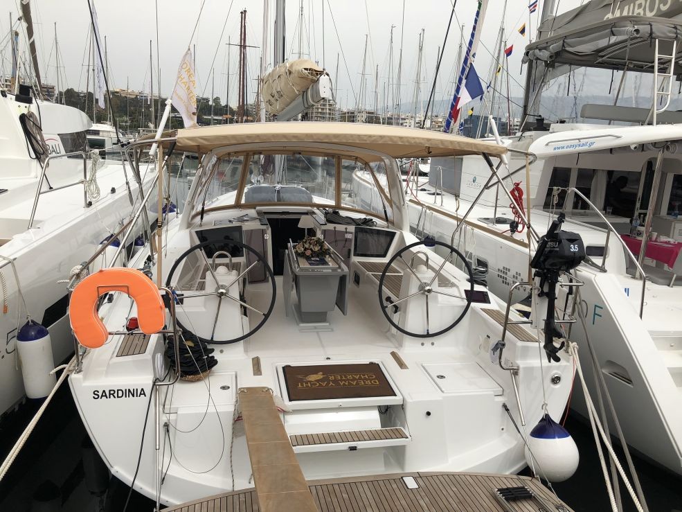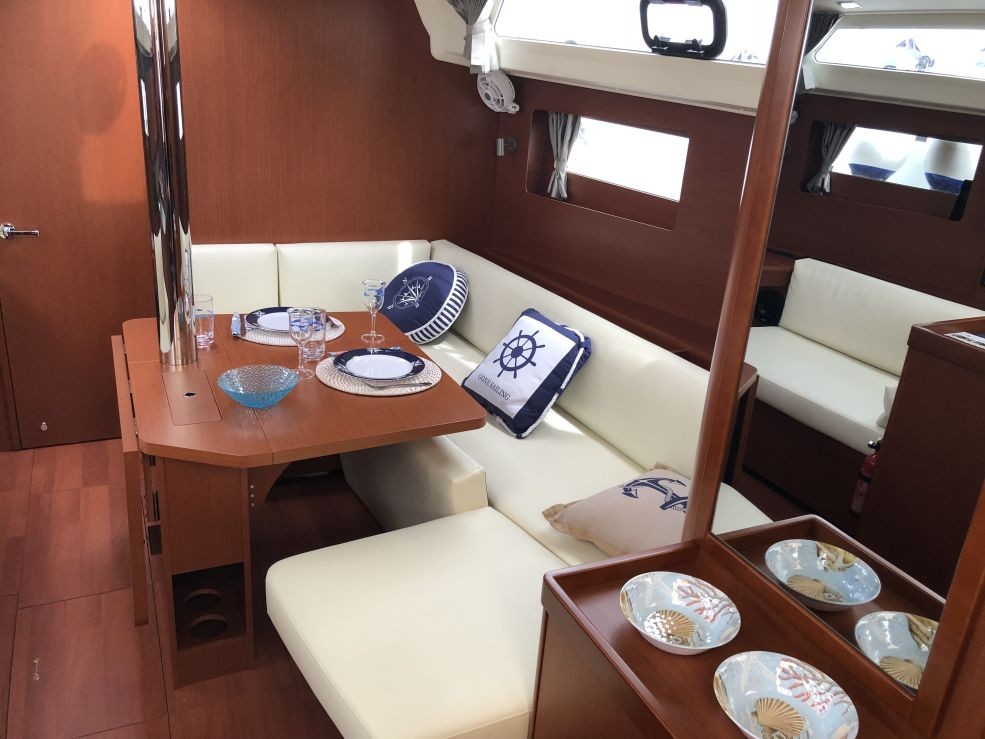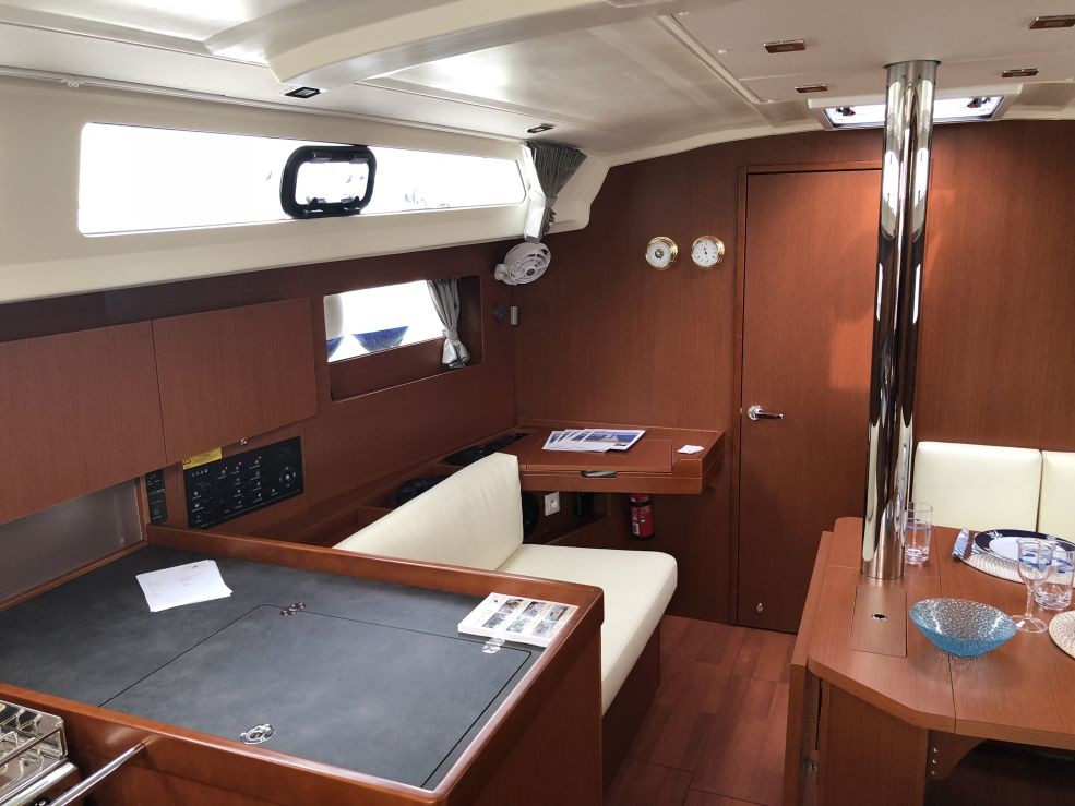 | Outside | 220 V-Landanschluss, Badeleiter, Biminitop, Cockpitdusche warm/kalt, Cockpitlautsprecher, Cockpitpolster, Cockpittisch, elektr. Ankerwinsch, Selbstholende Winschen, Sprayhood |