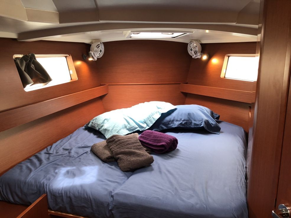 | Inside | 220V Steckdosen, Backofen, FUSION Sound System, Gasherd, Inverter 12V/220V, Kühlschrank, Ladegerät, Radio mit CD, Salontisch absenkbar, USB Steckdosen in den Kabinen, Ventilatoren in Kabinen, Warmwasser, WC (elektr.) |