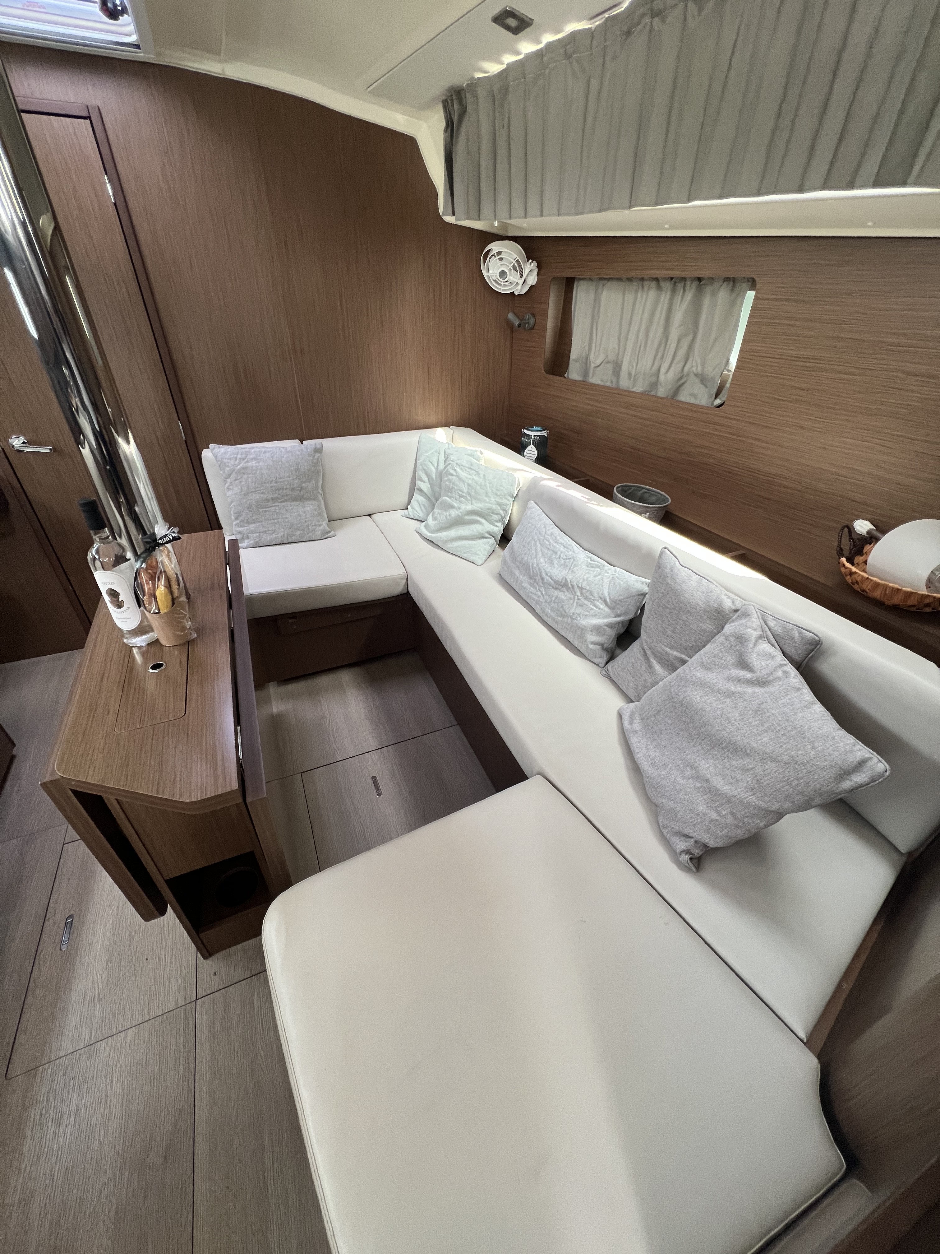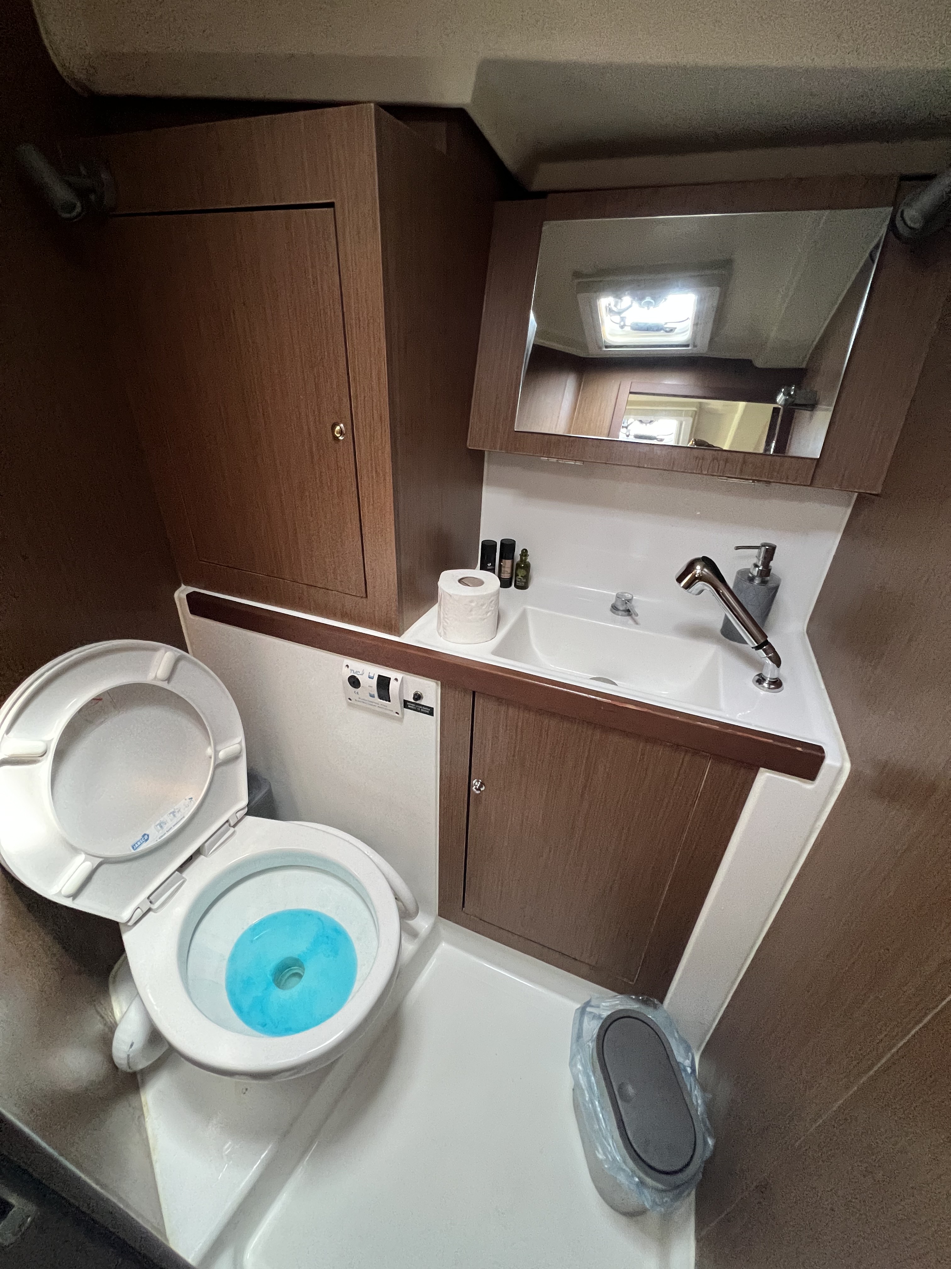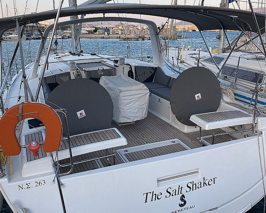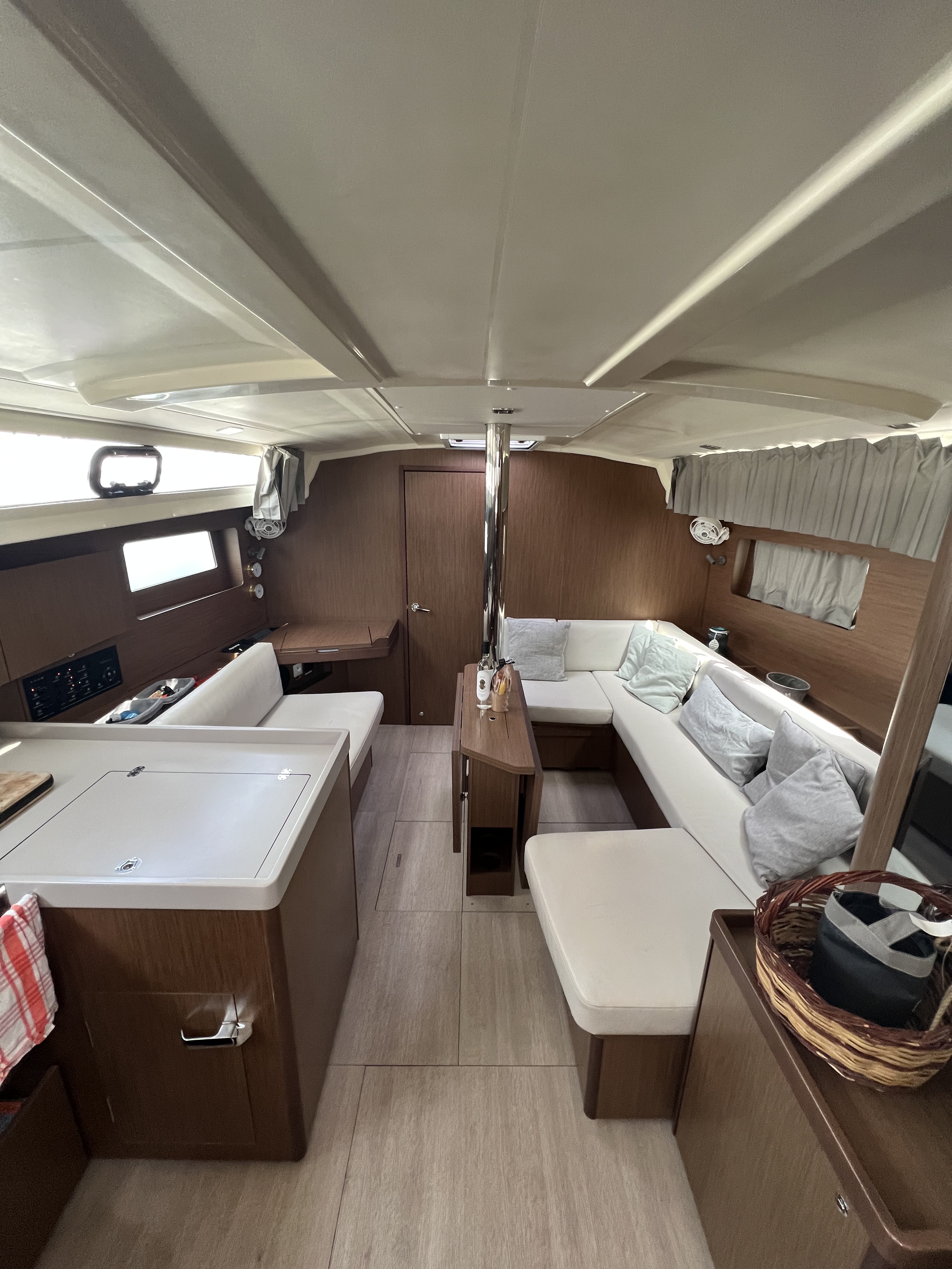 | Outside | Badeleiter, Biminitop, Cockpitdusche, Cockpitlautsprecher, Cockpitpolster, Cockpittisch, elektr. Ankerwinsch, Fender, Solaranlage, Sprayhood, Teak im Cockpit |