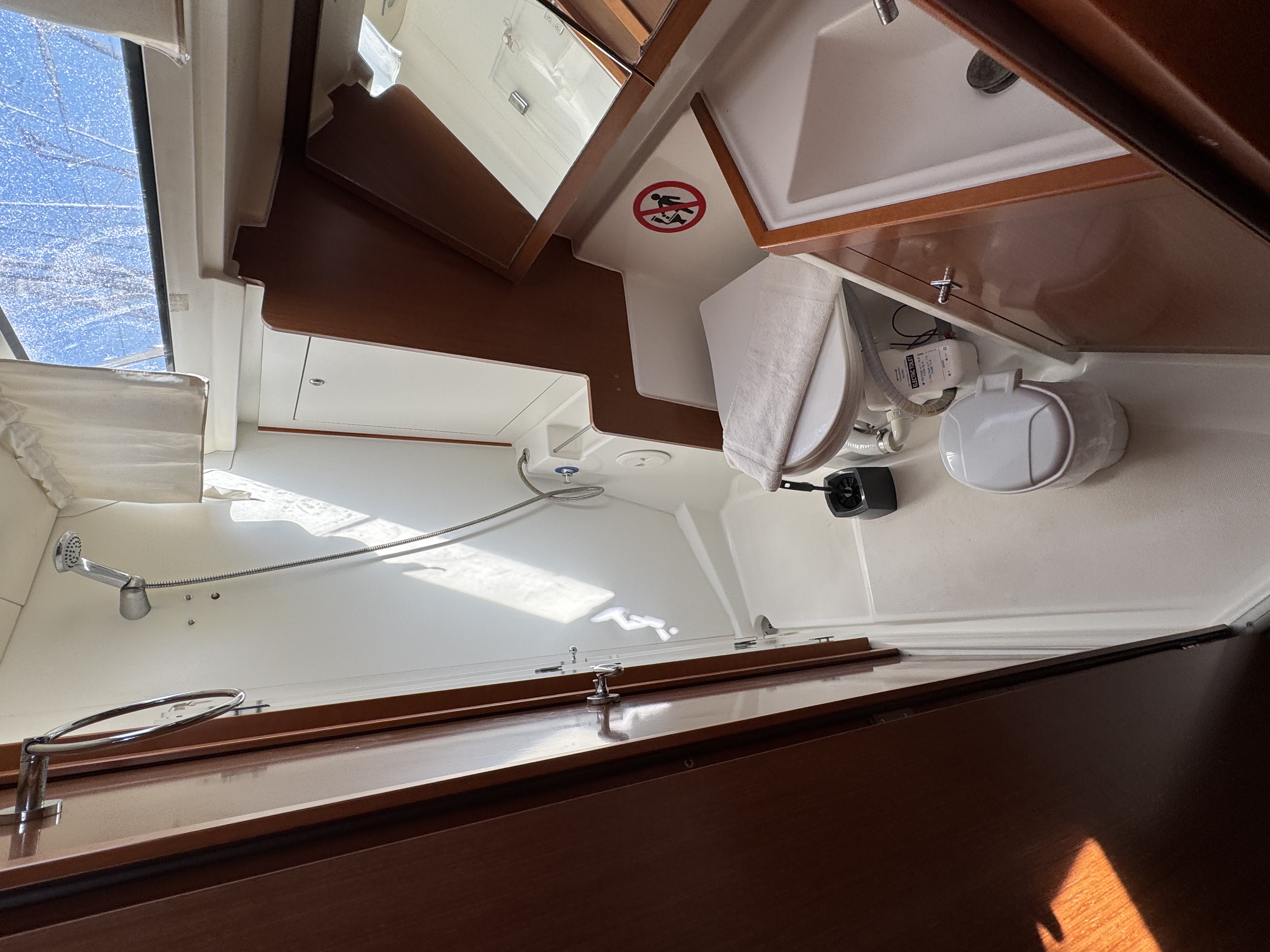 Outside Biminitop, Cockpitdusche, Cockpitlautsprecher, Cockpitpolster, Cockpittisch, elektr. Ankerwinsch, Solaranlage, Sprayhood
