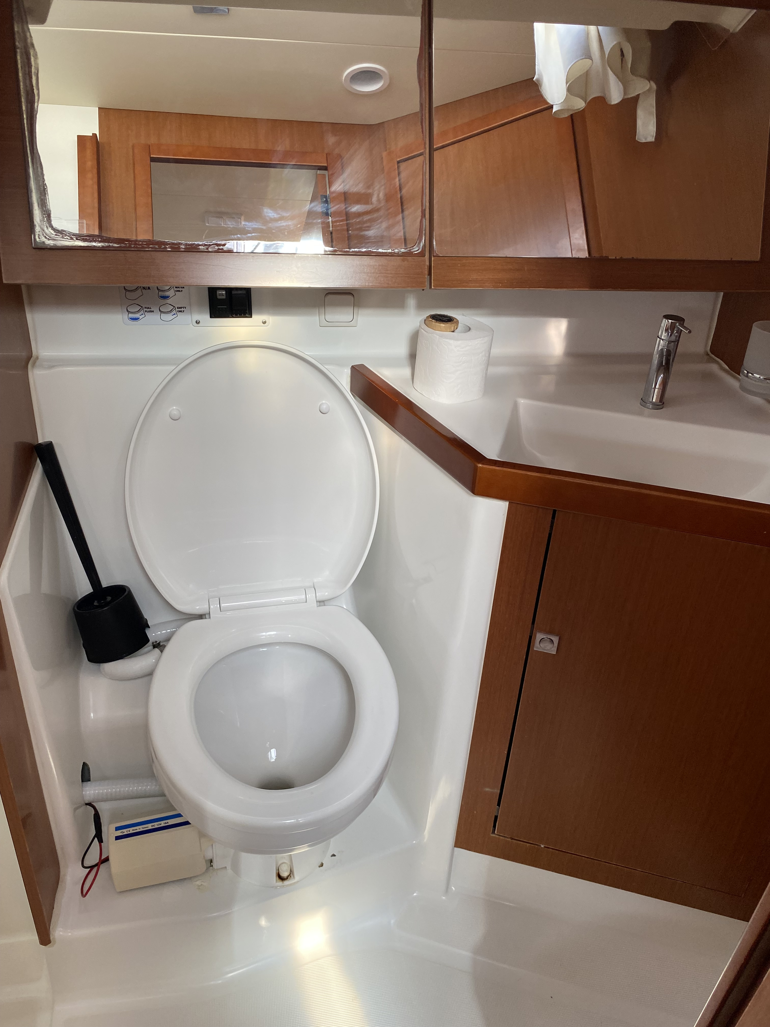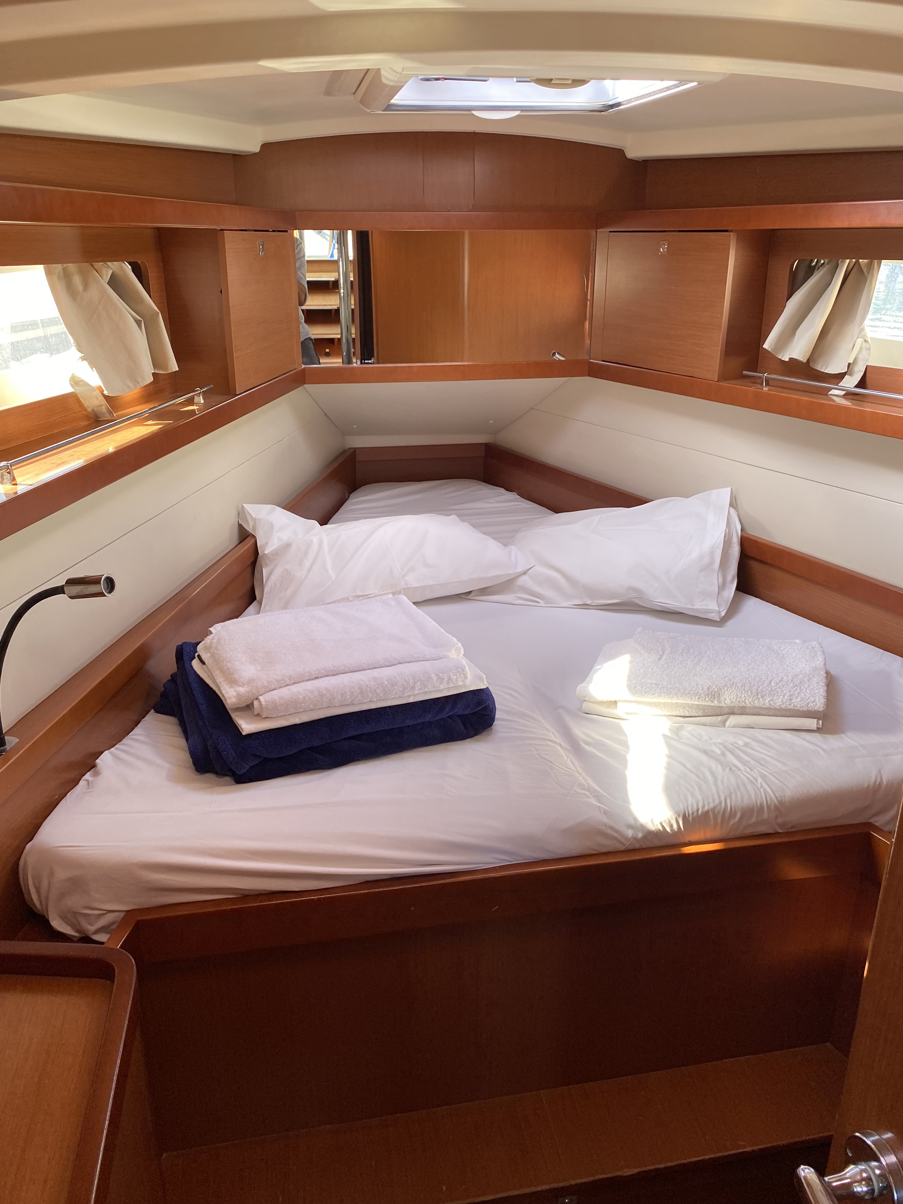 | Outside | 220 V-Landanschluss, Anker mit Kette, Badeleiter, Badeplattform, Biminitop, Bootshaken, Cockpitpolster, Cockpittisch, elektr. Ankerwinsch, elektr. Winsch, Schnorchelausrüstung, Solaranlage, Sprayhood, Unterwasserbeleuchtung, Wantenschneider, Wasserschlauch, Winschen |