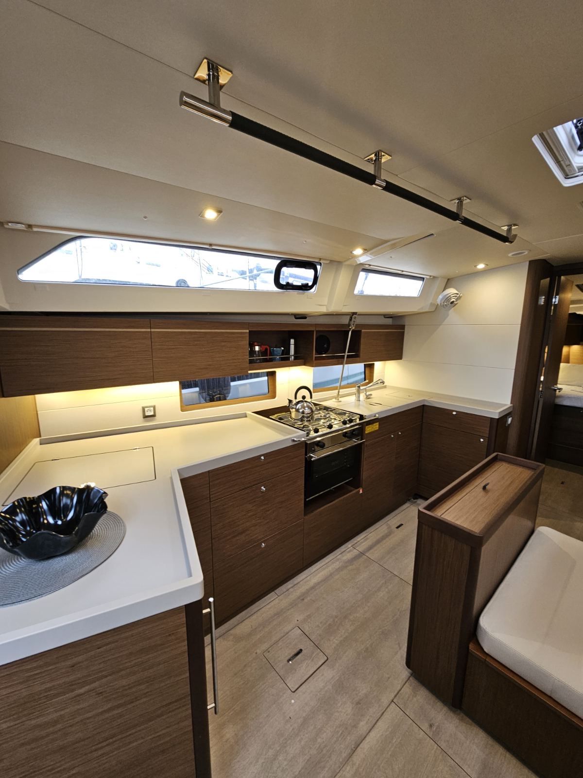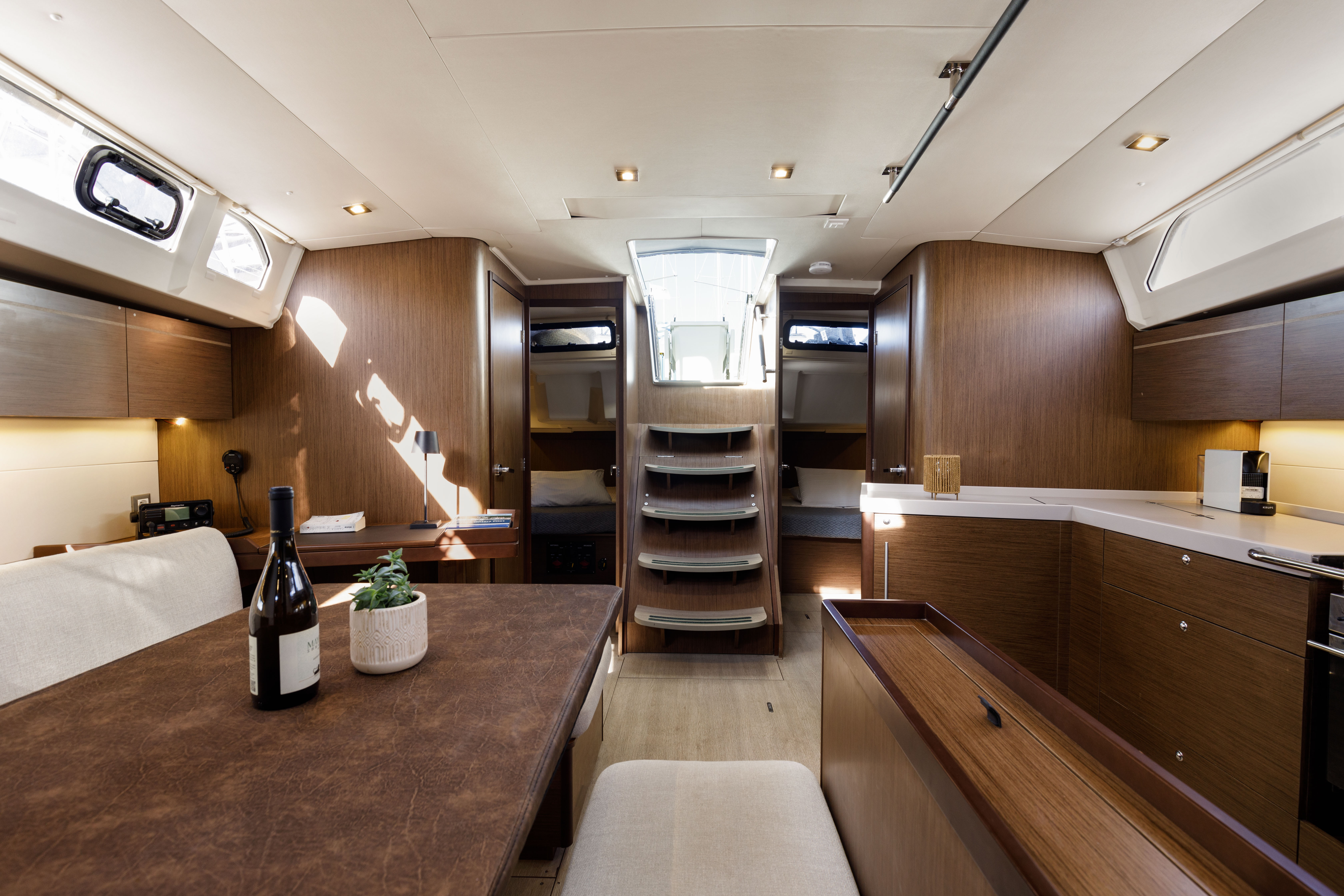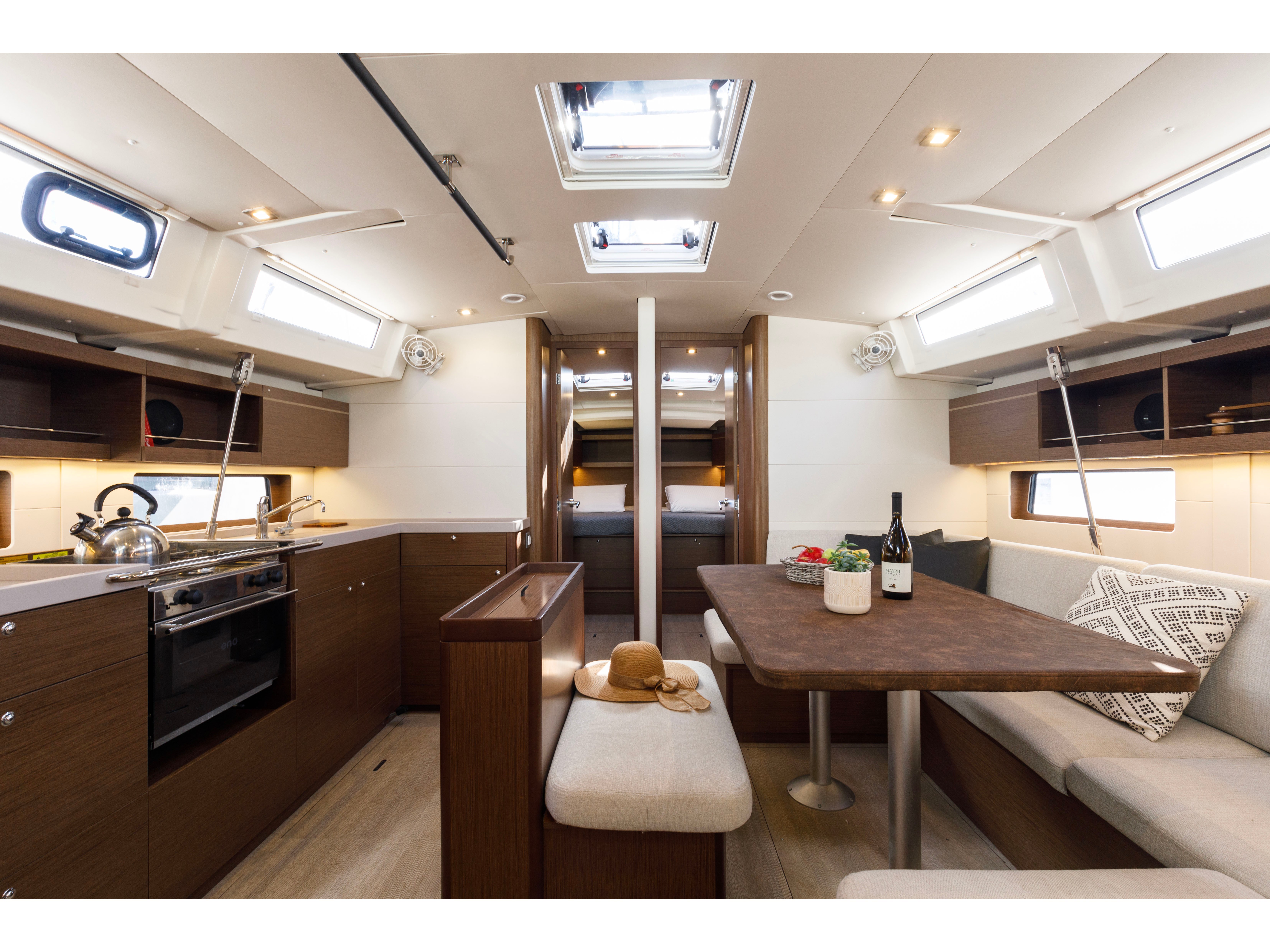 Inside 220V Steckdosen, Bluetooth Player, Gefrierschrank, Inverter 12V/220V, Kaffeemaschine, Kühlschrank, Pantryausstattung, Salontisch absenkbar, USB Steckdose, Ventilatoren in Kabinen