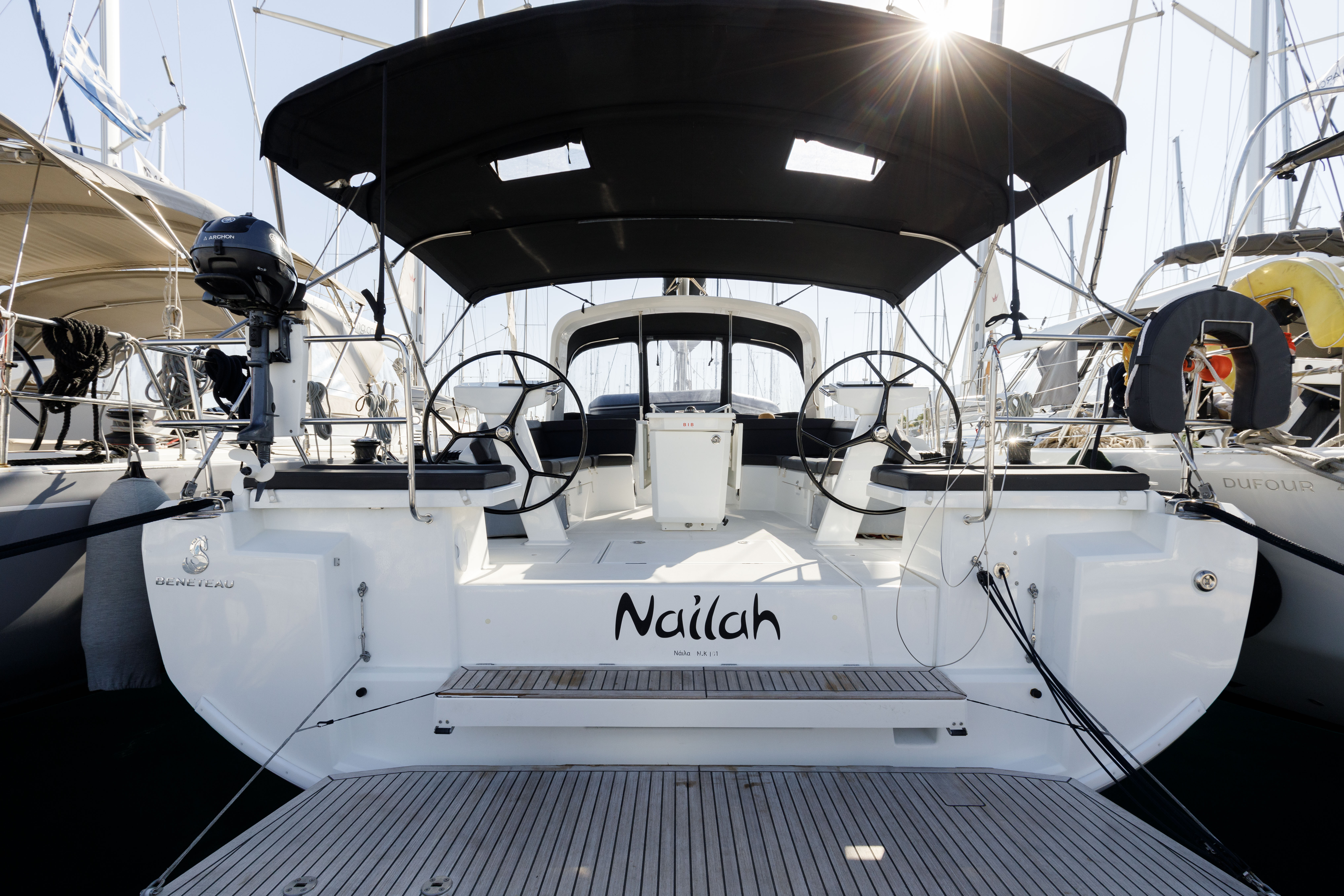 Outside Biminitop, Cockpitdusche, Cockpitlautsprecher, Cockpitpolster, Cockpittisch, elektr. Ankerwinsch, elektr. Winsch, Fender, Solaranlage, Sprayhood