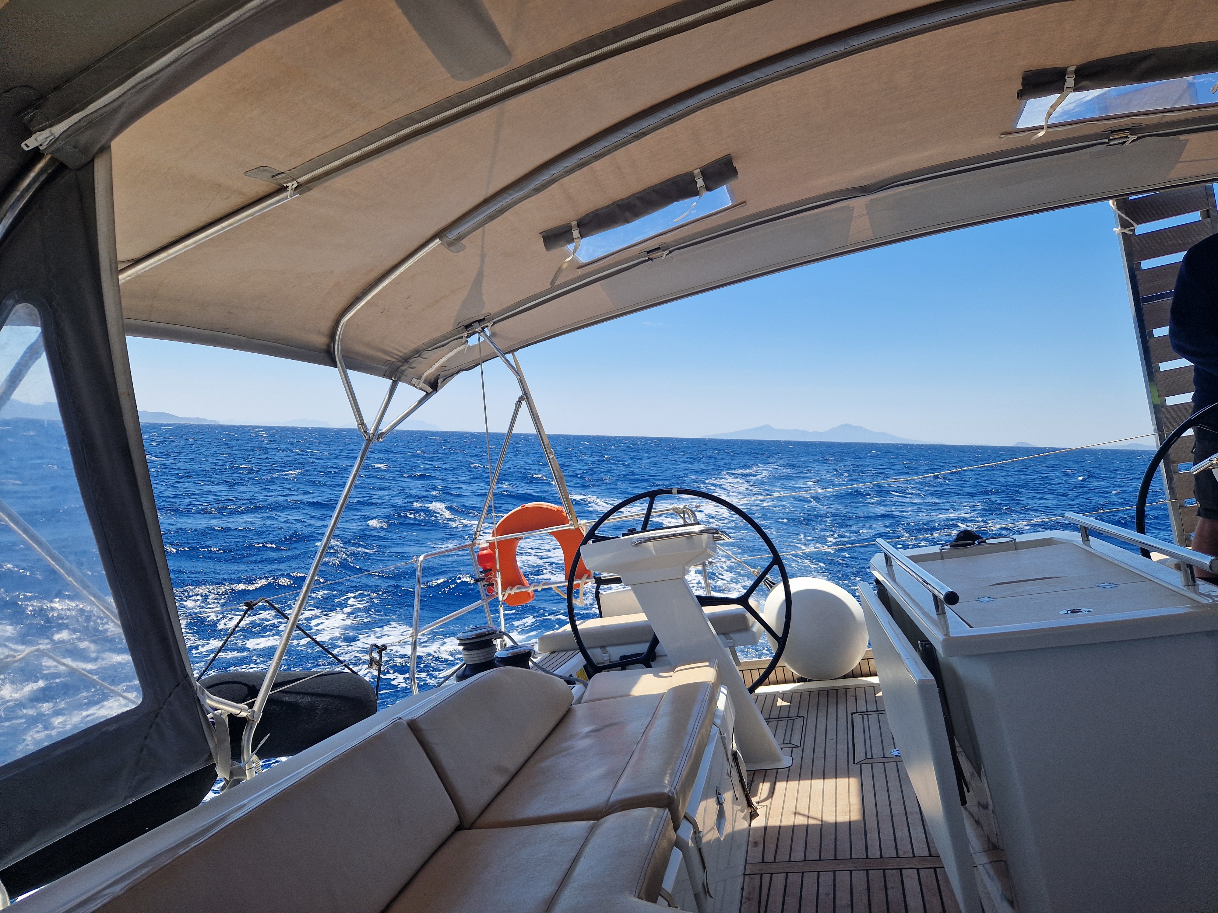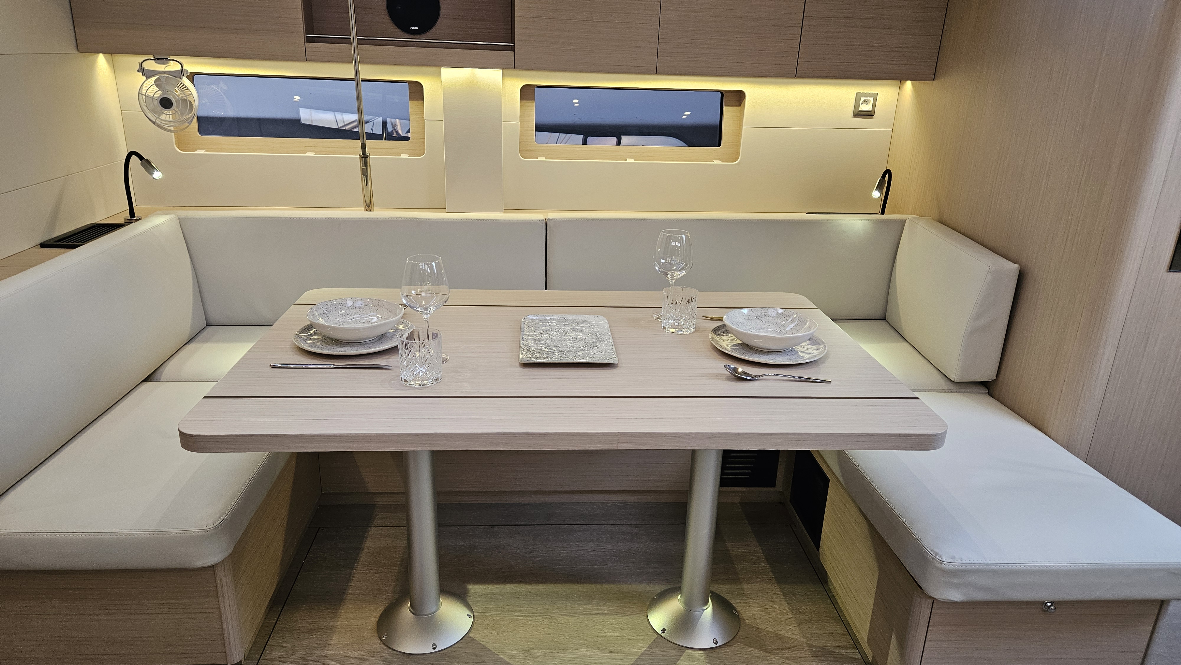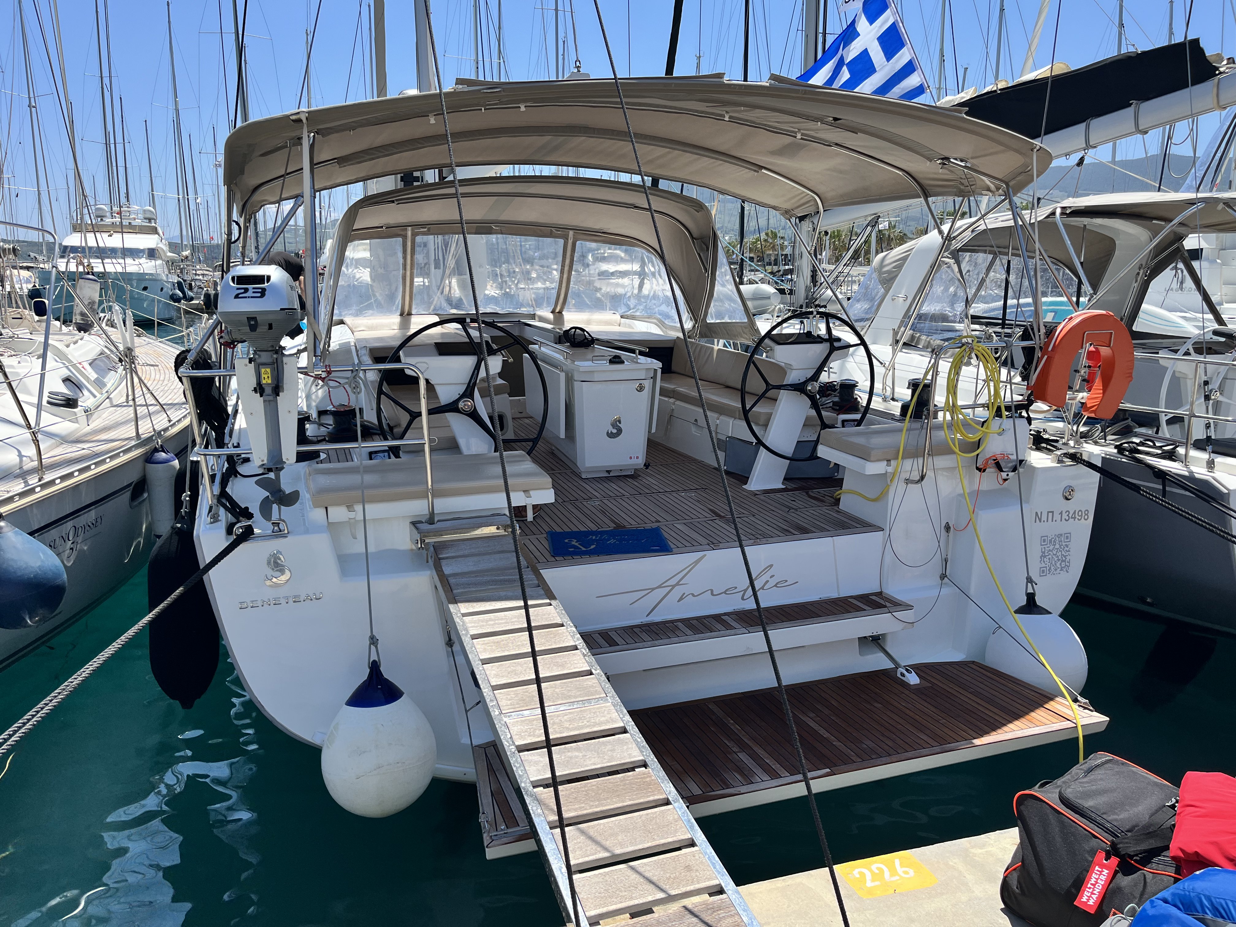 | Outside | Badeleiter, Biminitop, Cockpitdusche, Cockpitlautsprecher, Cockpitpolster, Cockpittisch, elektr. Ankerwinsch, Fender, Solaranlage, Sprayhood, Teak im Cockpit |
