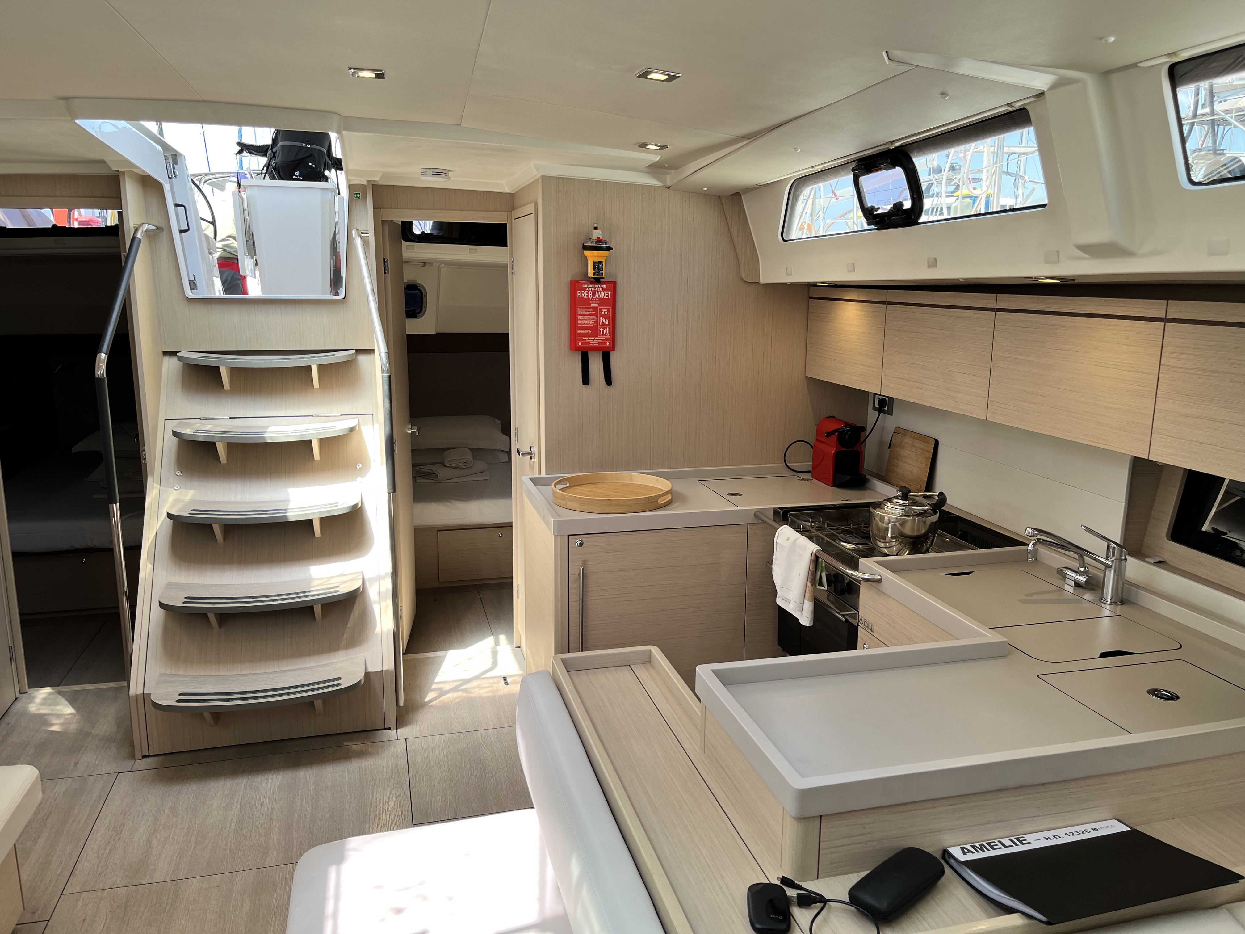 | Inside | 220V Steckdosen, Bluetooth Player, Eisbox, Gefrierschrank, Generator, Inverter 12V/220V, Kaffeemaschine, Klimaanlage (ohne Landstrombedarf), Kühlschrank, Nespresso-Maschine, Pantryausstattung, USB Steckdosen in den Kabinen, Ventilatoren in Kabinen |