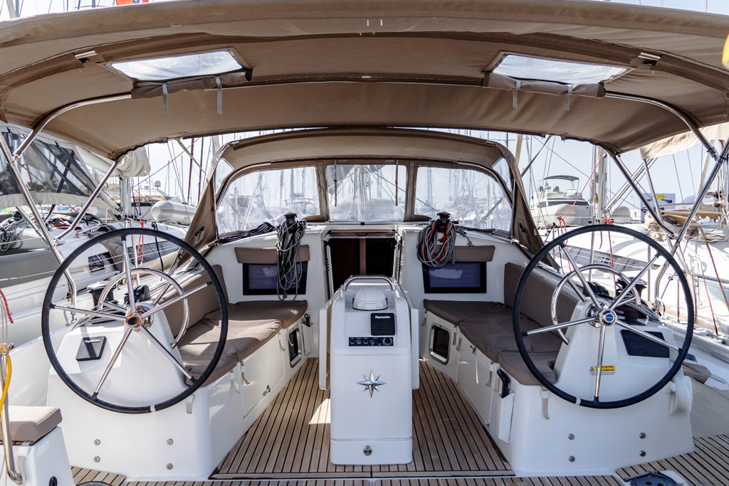 | Outside | 220 V-Landanschluss, Badeleiter, Biminitop, Cockpitdusche, Cockpitlautsprecher, Cockpitpolster, Cockpittisch, elektr. Ankerwinsch, Gangway, Schnorchelausrüstung, Solaranlage, Sprayhood, Teak im Cockpit |