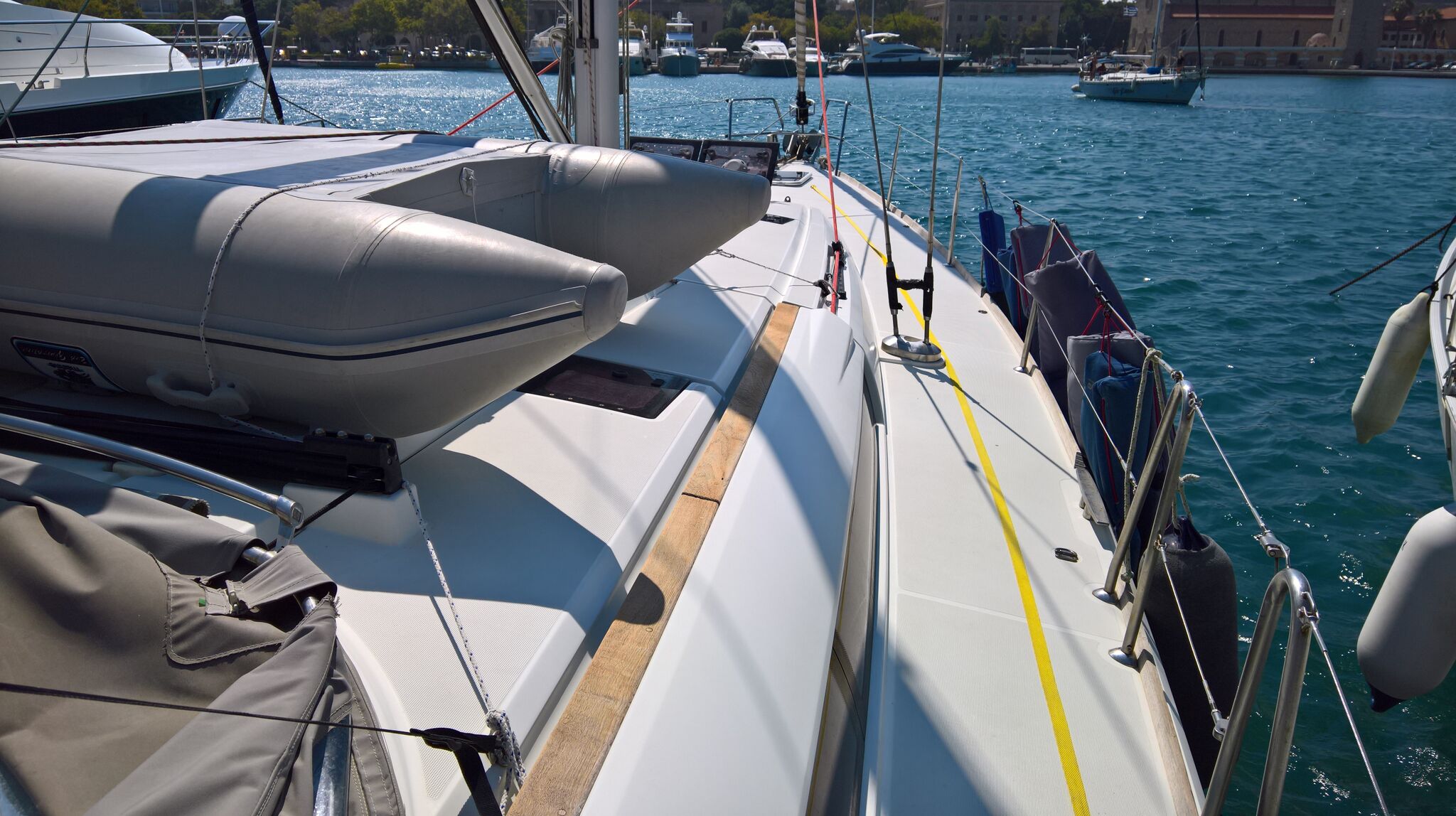 | Safety | Autopilot, Bordapotheke, Bordwerkzeug, Bugstrahlruder, Feststoffschwimmwesten, Flaggen, GMDSS, Navigationslichter, Notpinne, Notsignale, Rettungsinsel, Sicherheitsgurt, Sicherheitsnetz, Taschenlampe, UKW-Funk |