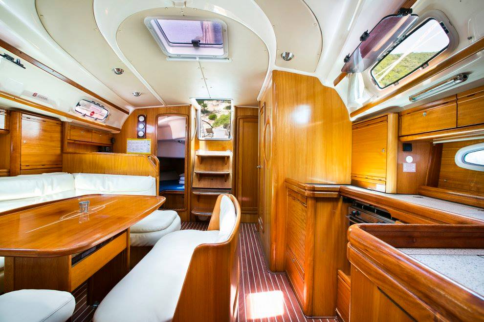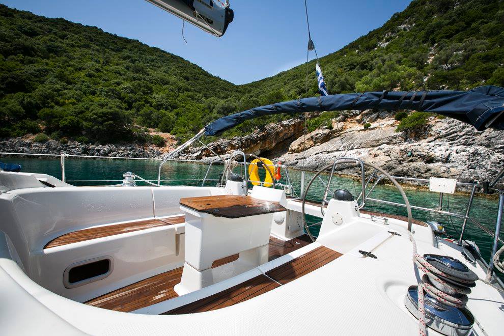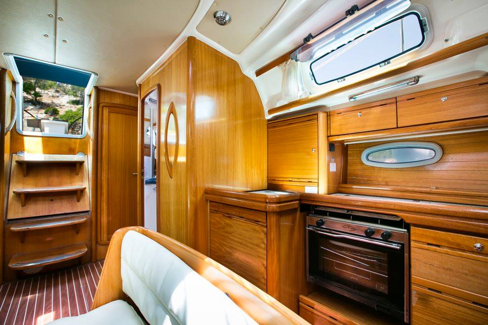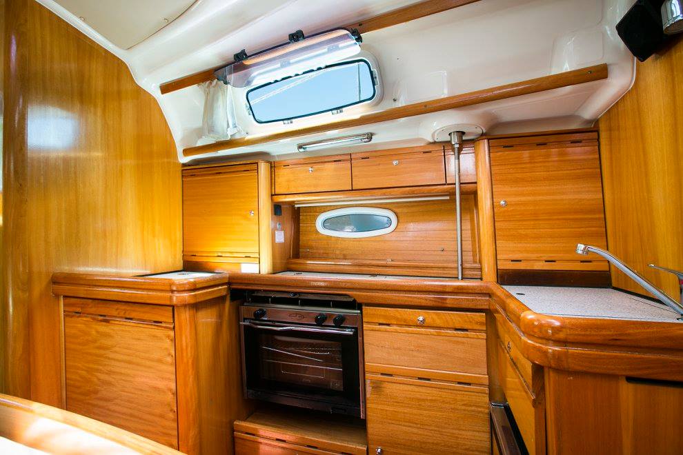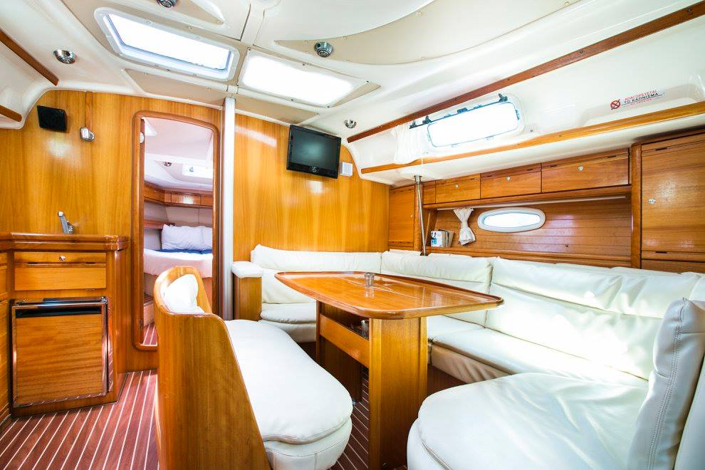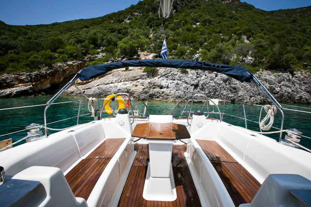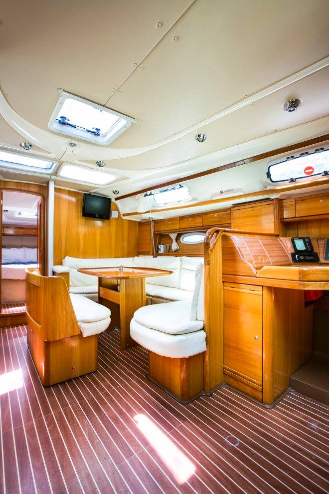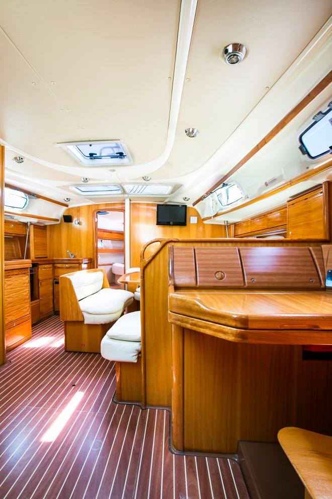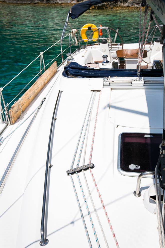 | Outside | Badeleiter, Biminitop, Cockpitdusche, Cockpitlautsprecher, Cockpittisch, elektr. Ankerwinsch, Fender, Festmacherleinen, Gangway, Solaranlage, Sprayhood, Teak im Cockpit |