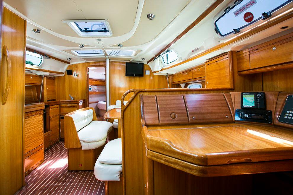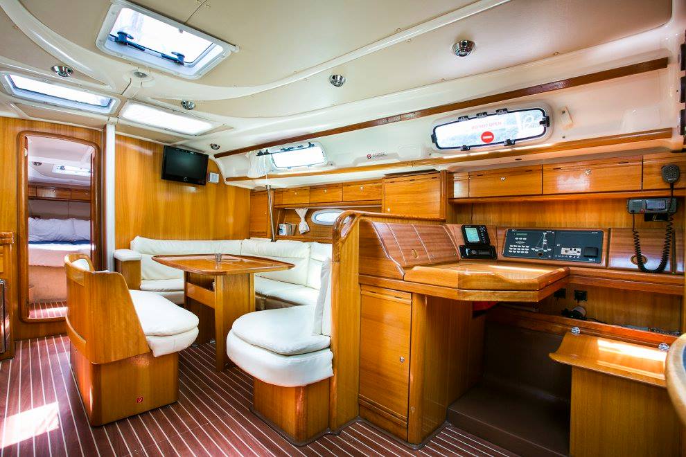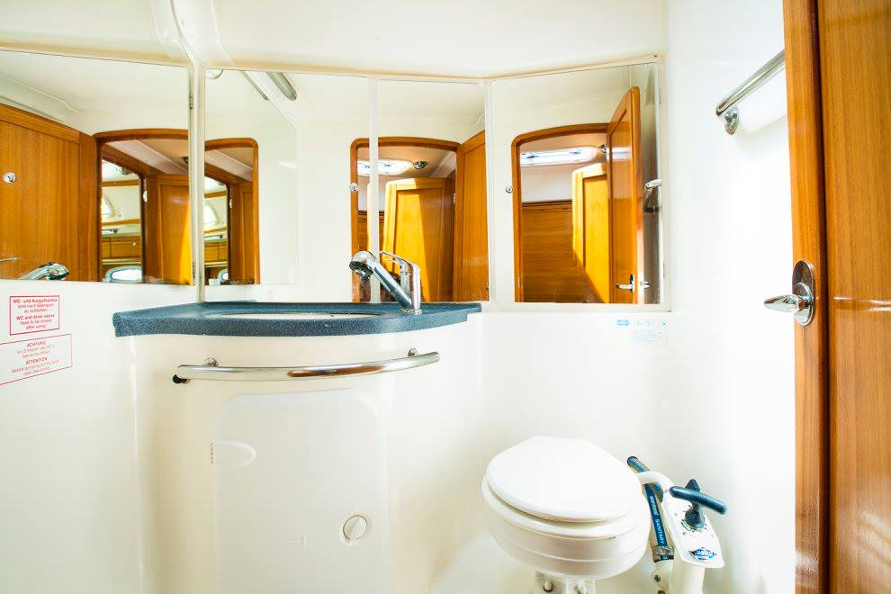 | Navigation | Echolot, GPS mit Kartenplotter im Cockpit, Hafenhandbücher, Seekarten, Sumlog, Windmesser |