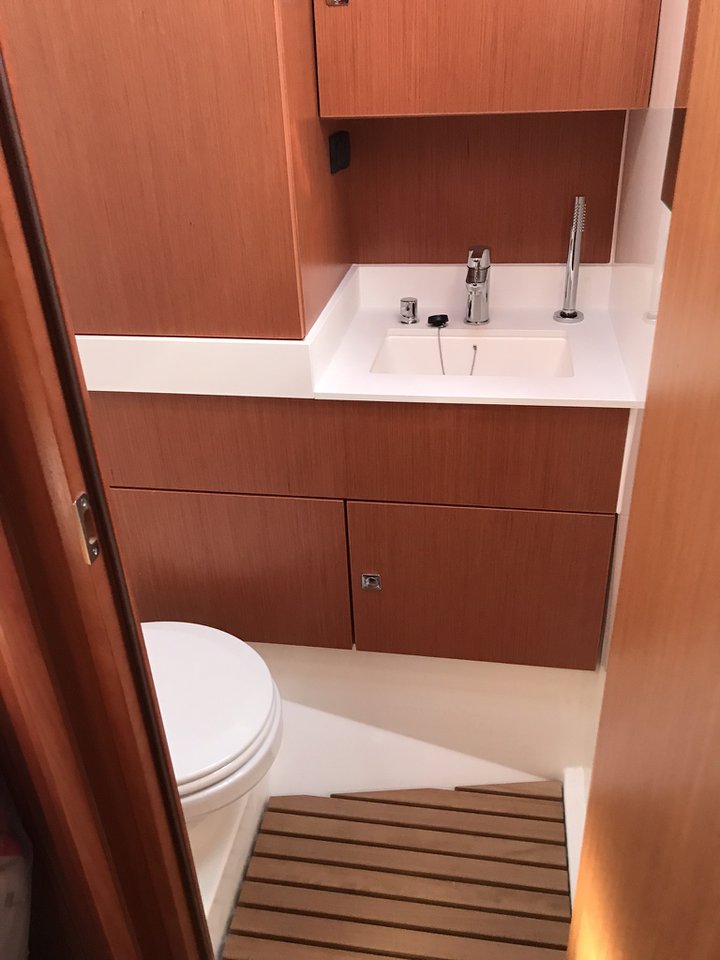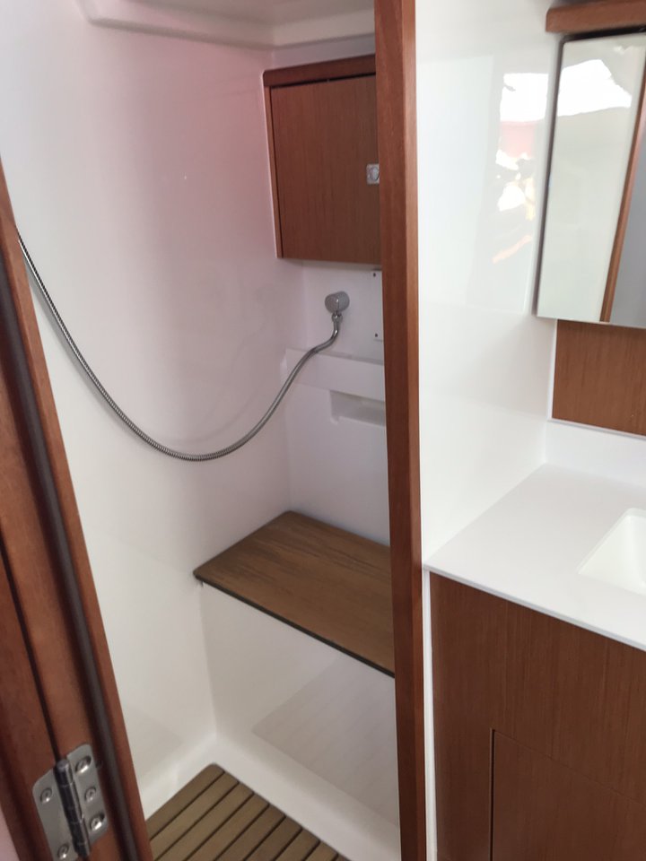 | Outside | 12 V-Anschluss, Badeleiter, Biminitop, Cockpitdusche, Cockpitlautsprecher, Cockpitpolster, Cockpittisch, Davits, elektr. Ankerwinsch, Gangway, Solaranlage, Sprayhood, Windex |