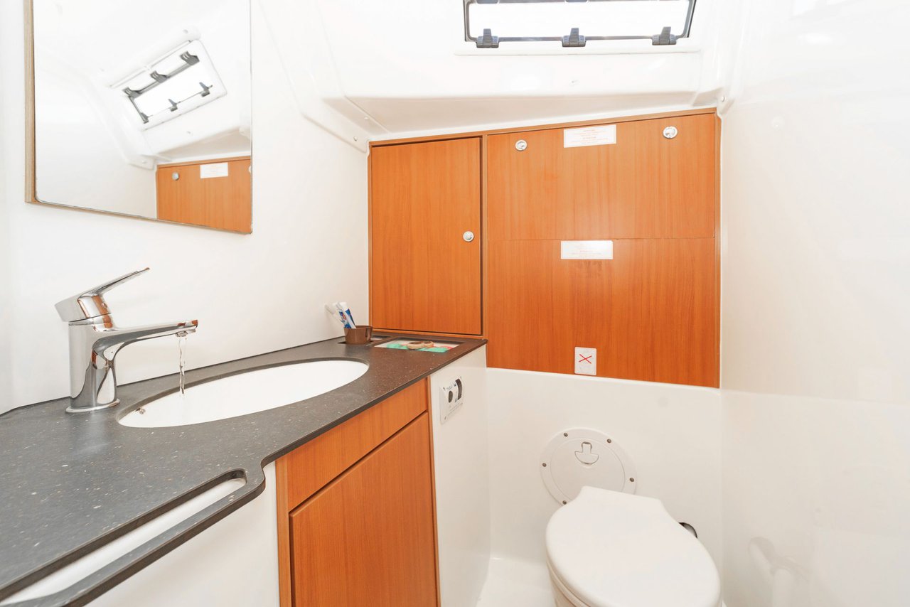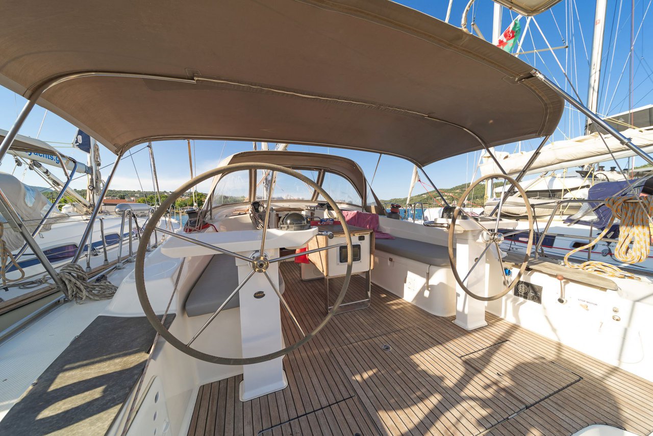 | Outside | Badeplattform, Biminitop, Cockpitdusche, Cockpitlautsprecher, Cockpitpolster, Cockpittisch, Cockpittisch mit Eisbox, elektr. Ankerwinsch, Gangway, Solaranlage, Sprayhood, Teak im Cockpit, Windex |