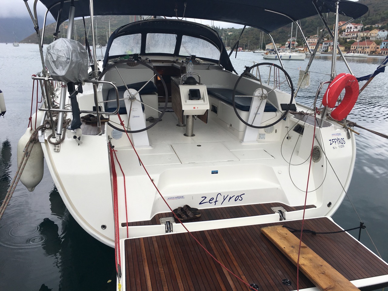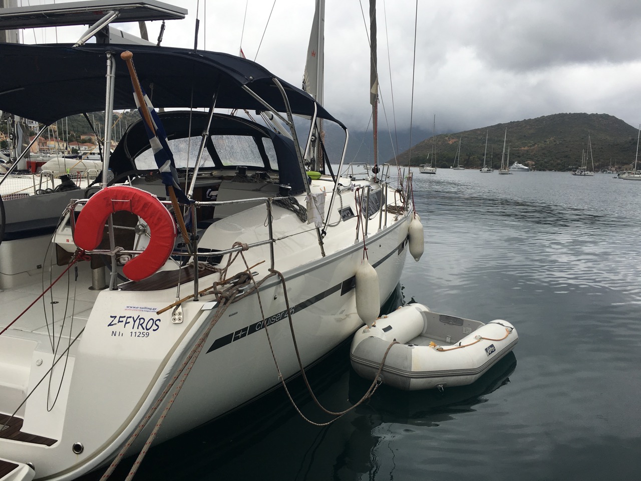 | Outside | Ankerwinsch, Badeleiter, Biminitop, Bootshaken, Cockpittisch, Deckbürste, Dieselkanister , elektr. Ankerwinsch, Fender, Festmacherleinen, Sprayhood, Treibanker, Wantenschneider, Wasserkanister , Wasserschlauch, Winschen |