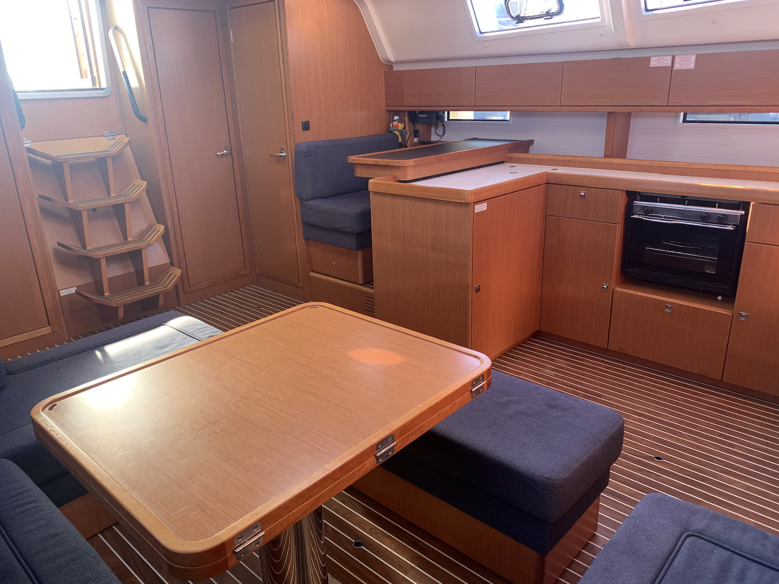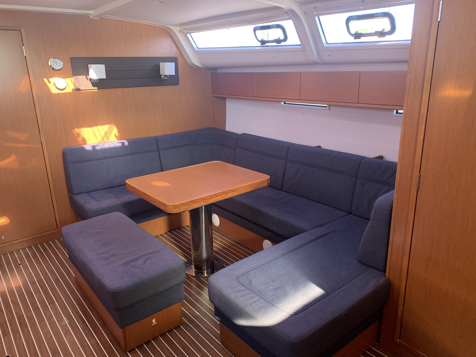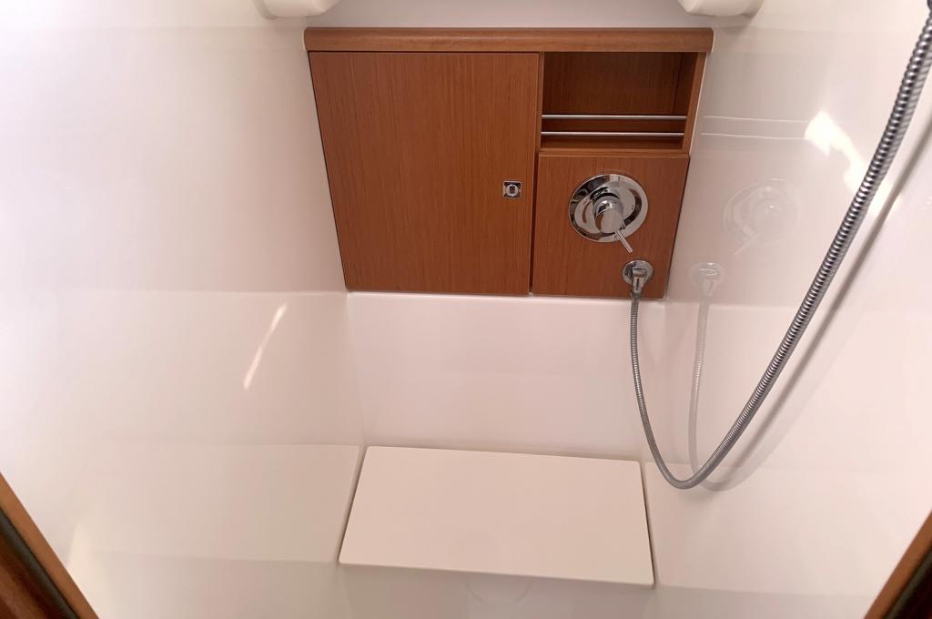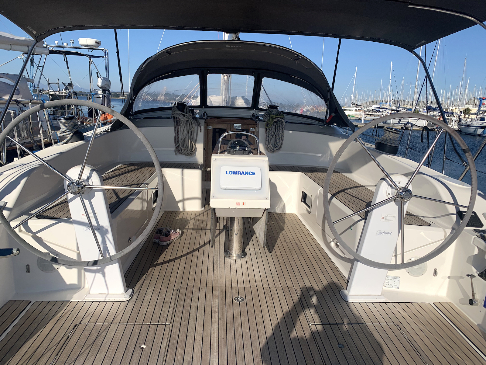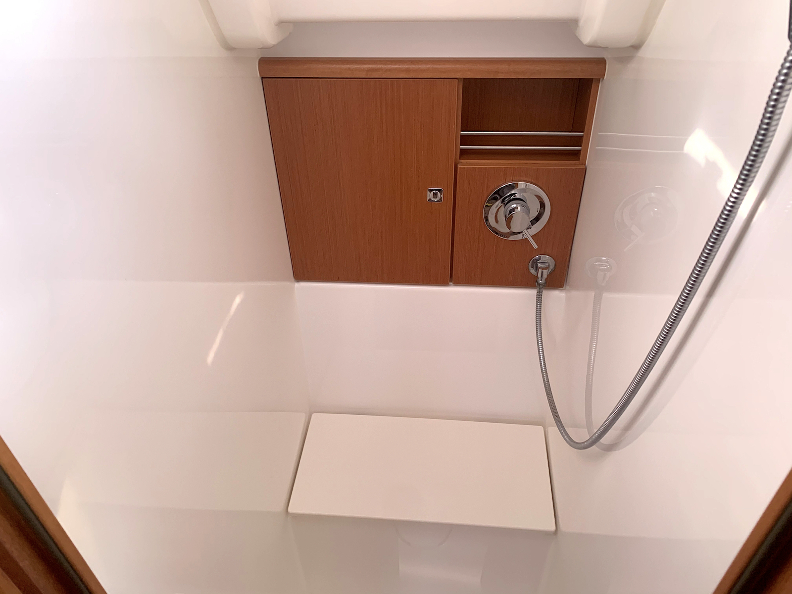 | Outside | Anker mit Kette, Badeleiter, Badeplattform, Biminitop, Cockpitdusche, Cockpitlautsprecher, Cockpittisch, elektr. Ankerwinsch, Fender, Festmacherleinen, Solaranlage, Sprayhood, Teak im Cockpit |
