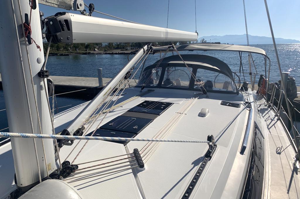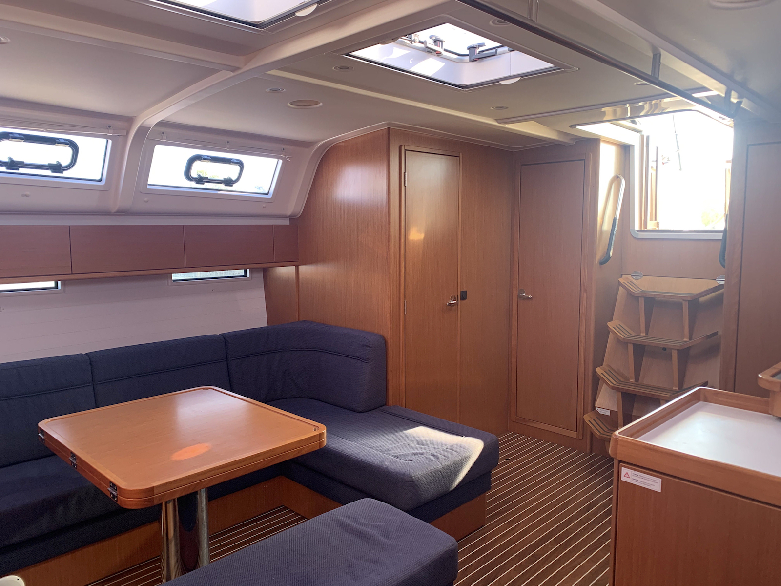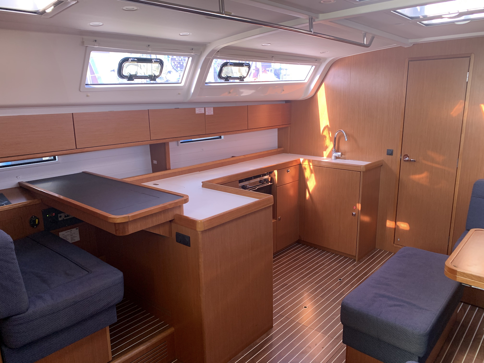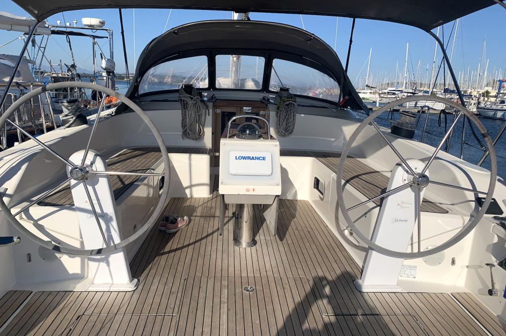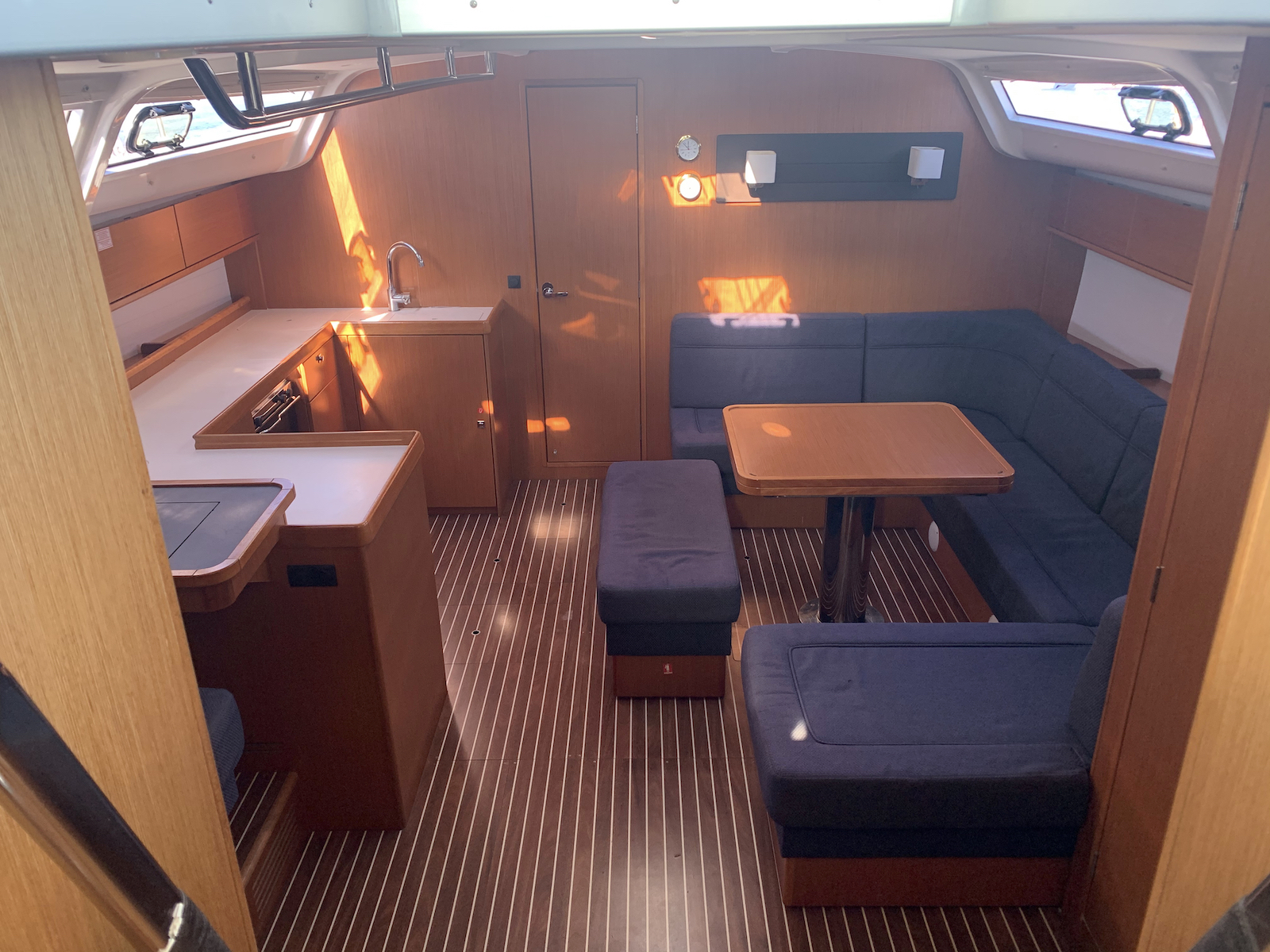 | Outside | Anker mit Kette, Badeleiter, Badeplattform, Biminitop, Cockpitdusche, Cockpitlautsprecher, Cockpittisch, elektr. Ankerwinsch, Fender, Festmacherleinen, Solaranlage, Sprayhood, Teak im Cockpit |