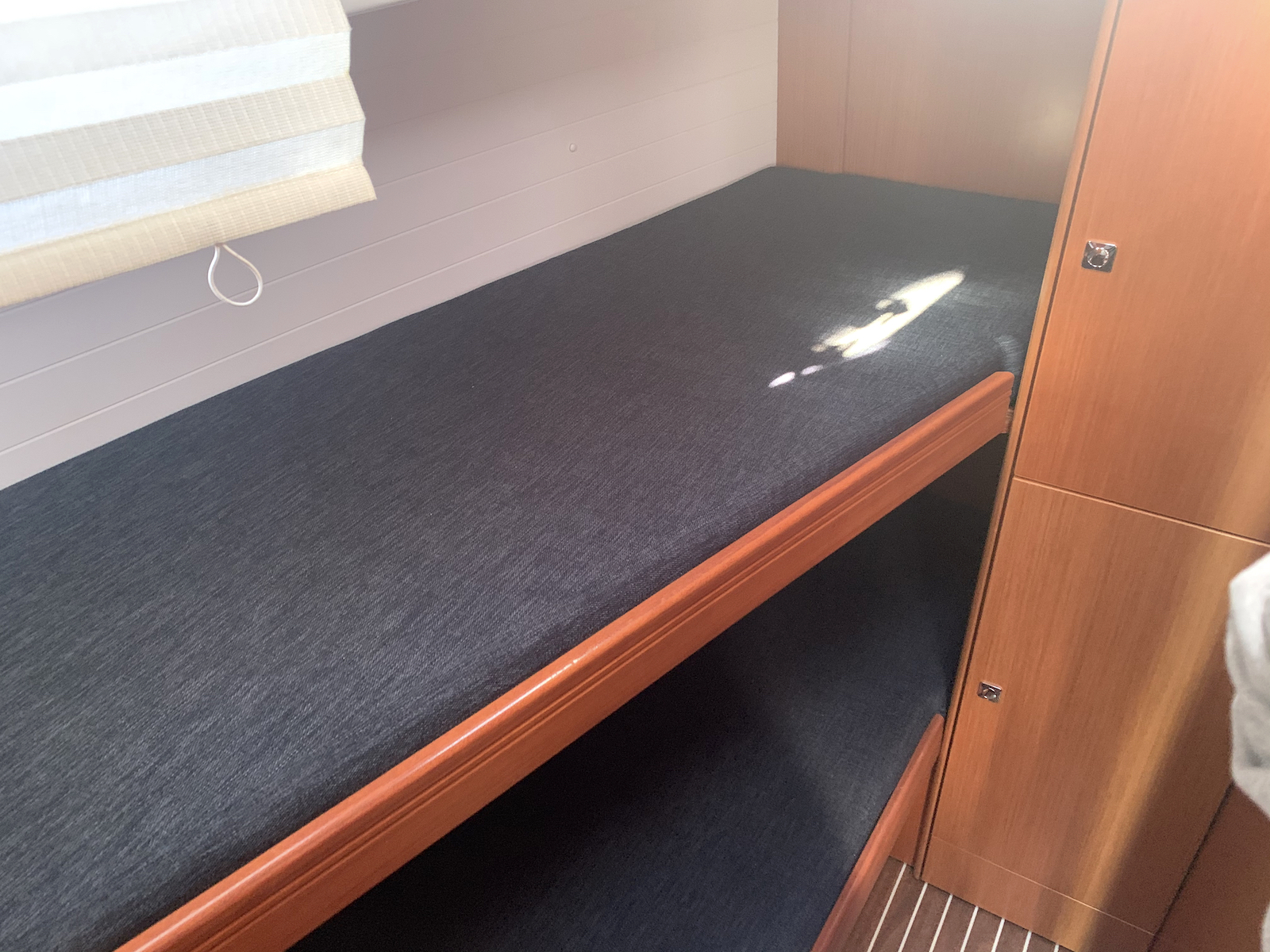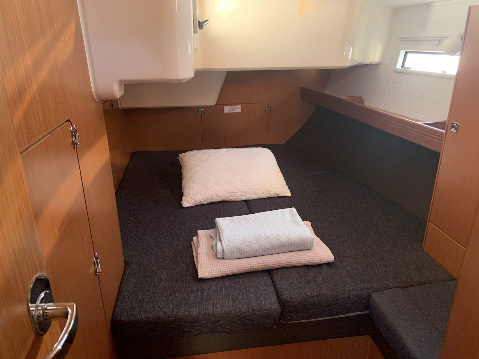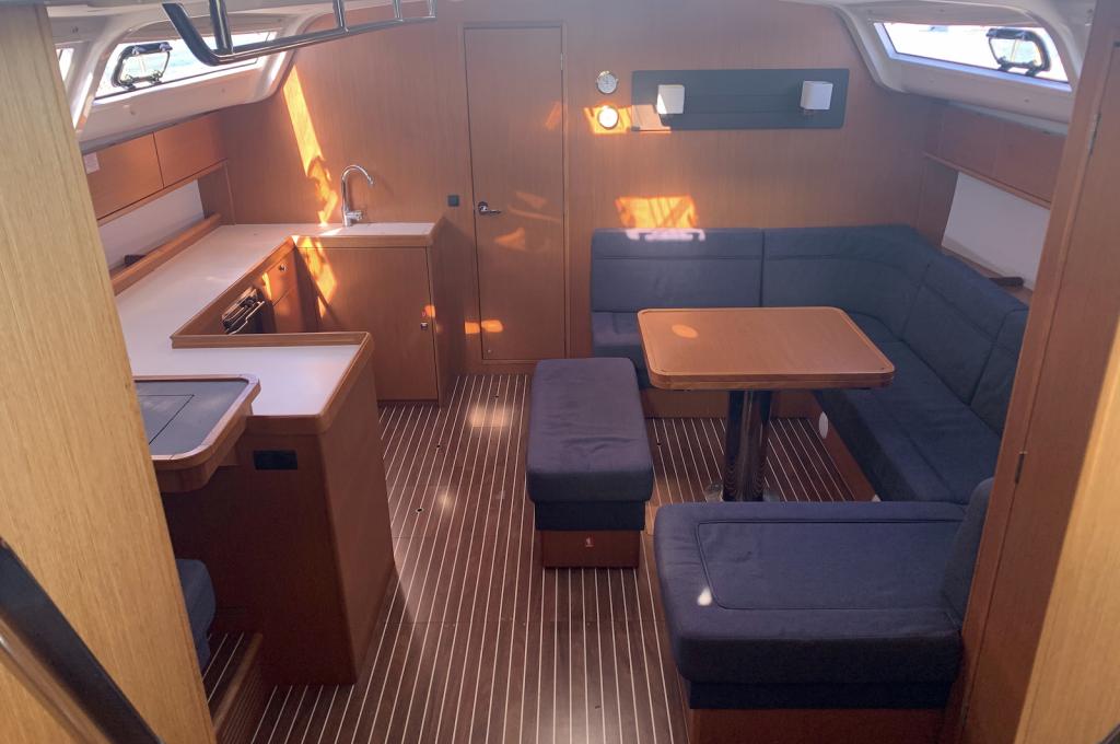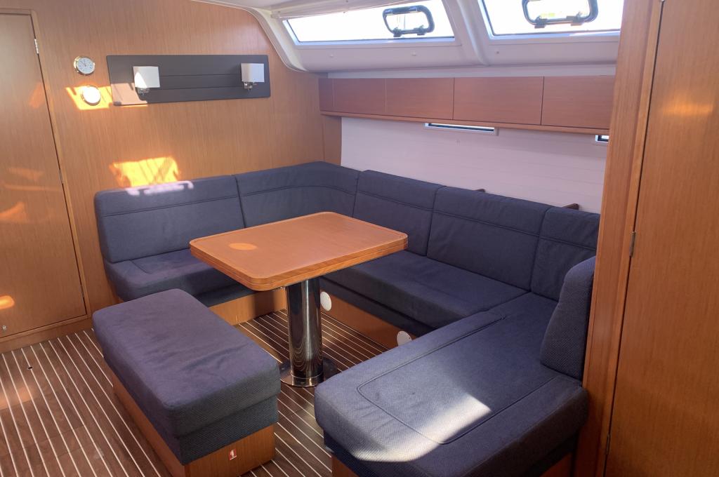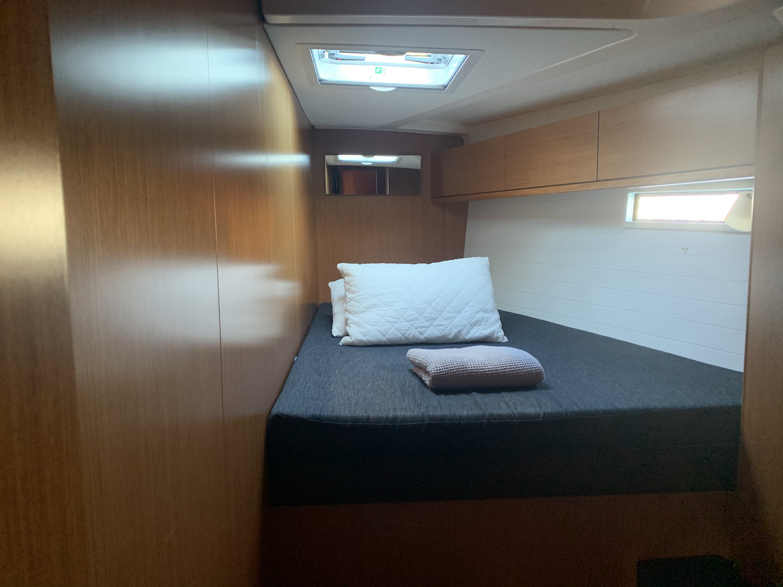 | Outside | Anker mit Kette, Badeleiter, Badeplattform, Biminitop, Cockpitdusche, Cockpitlautsprecher, Cockpittisch, elektr. Ankerwinsch, Fender, Festmacherleinen, Solaranlage, Sprayhood, Teak im Cockpit |