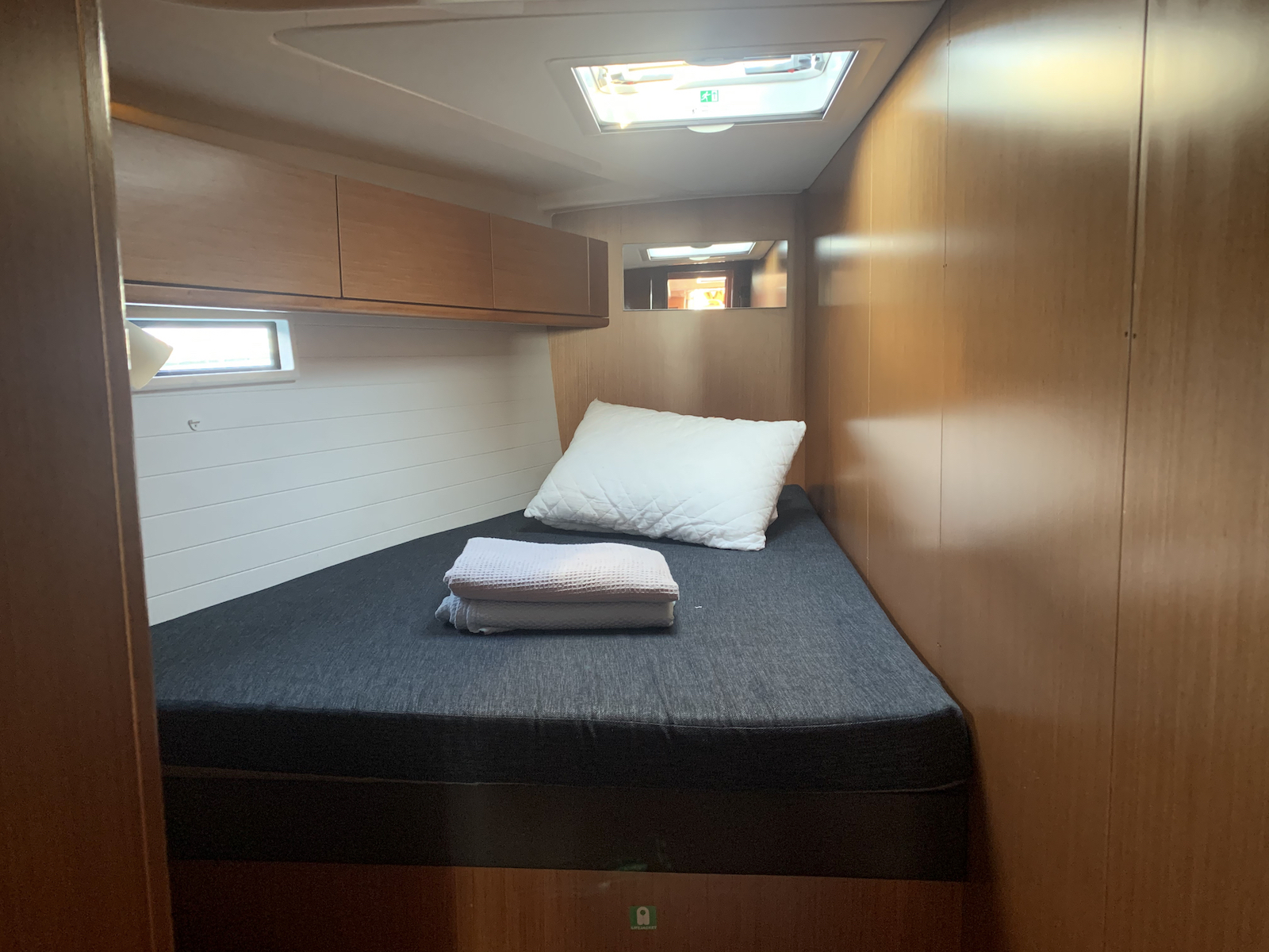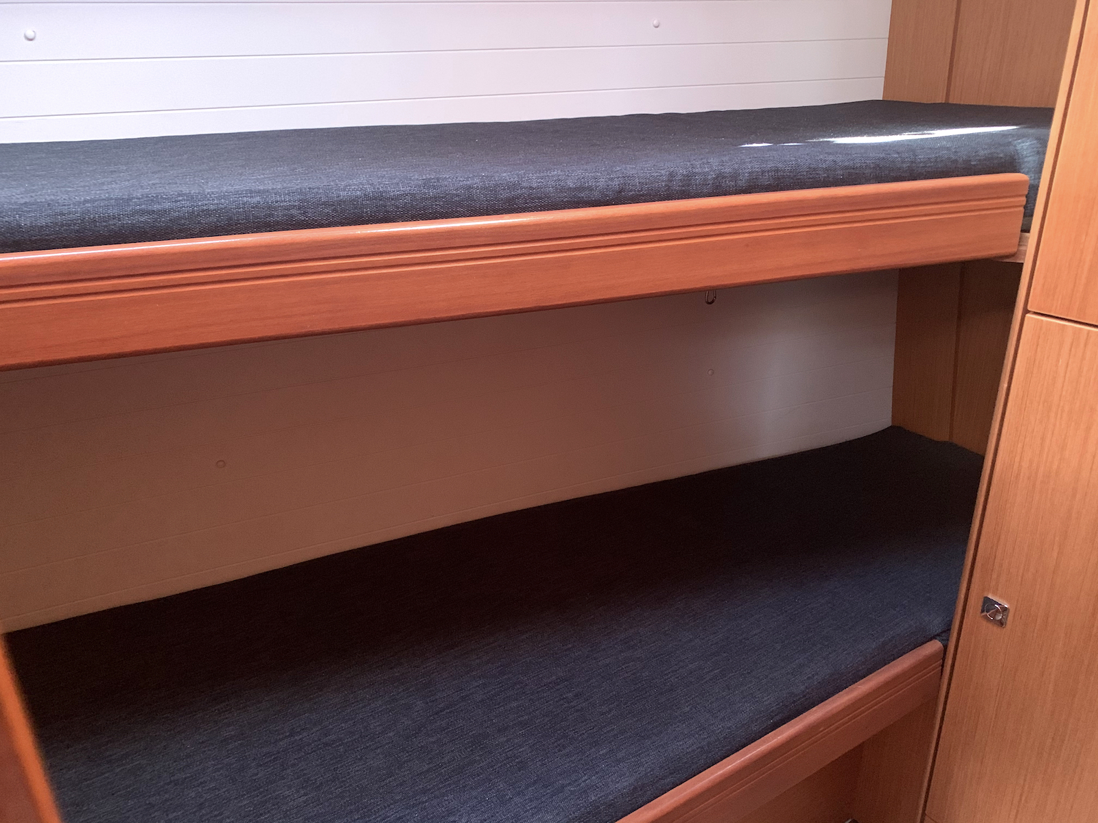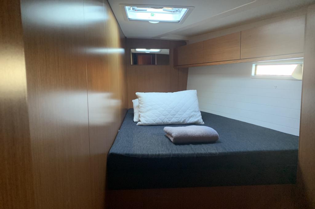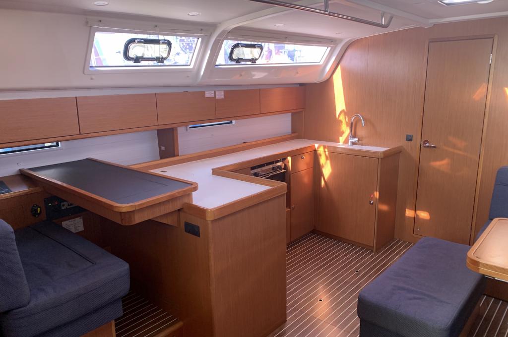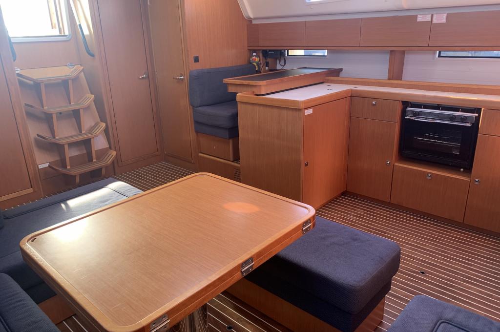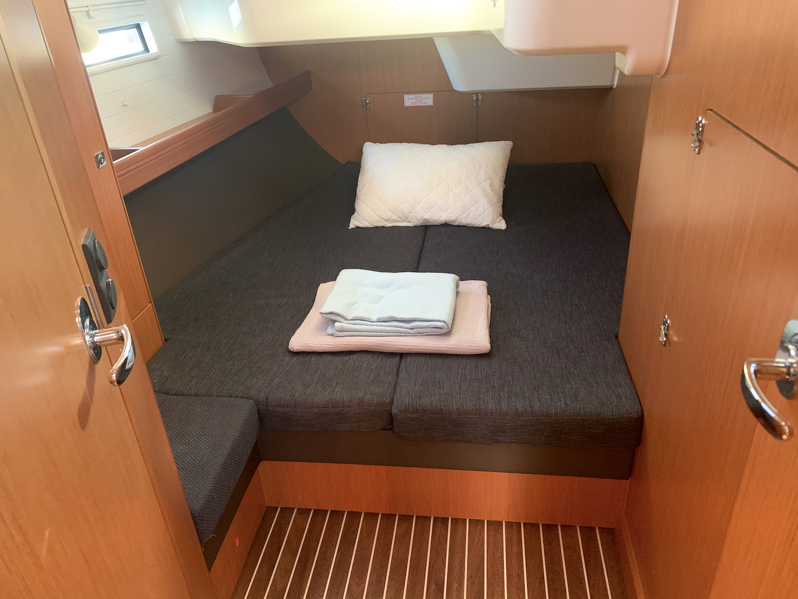 | Outside | Anker mit Kette, Badeleiter, Badeplattform, Biminitop, Cockpitdusche, Cockpitlautsprecher, Cockpittisch, elektr. Ankerwinsch, Fender, Festmacherleinen, Solaranlage, Sprayhood, Teak im Cockpit |