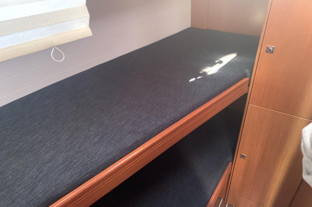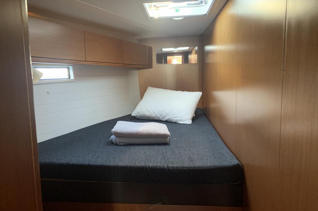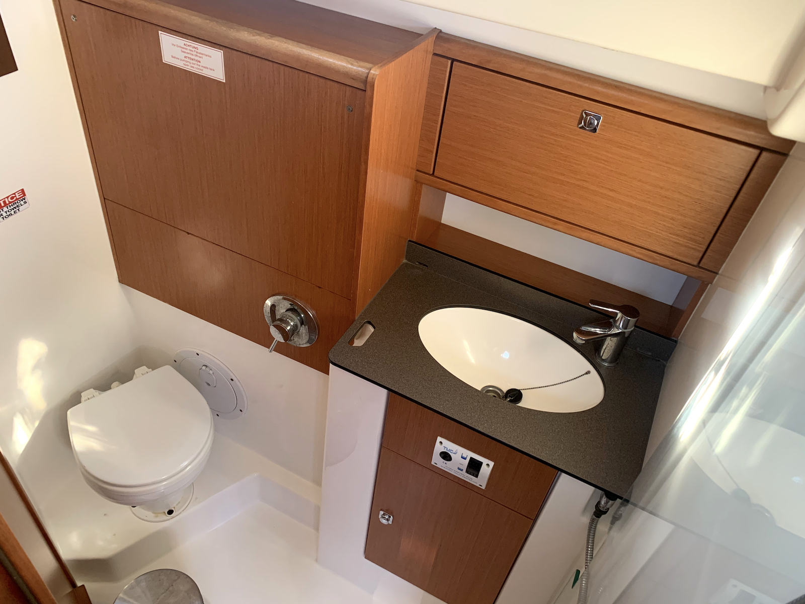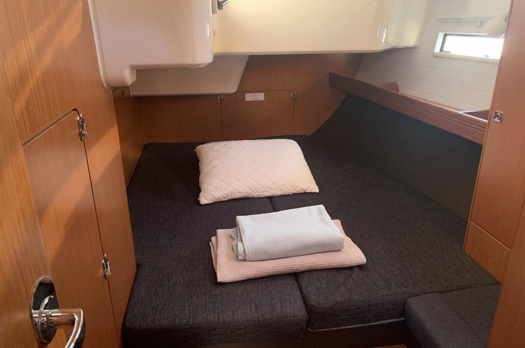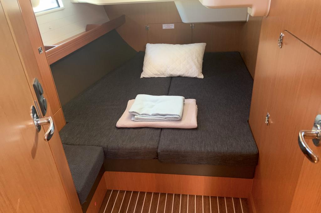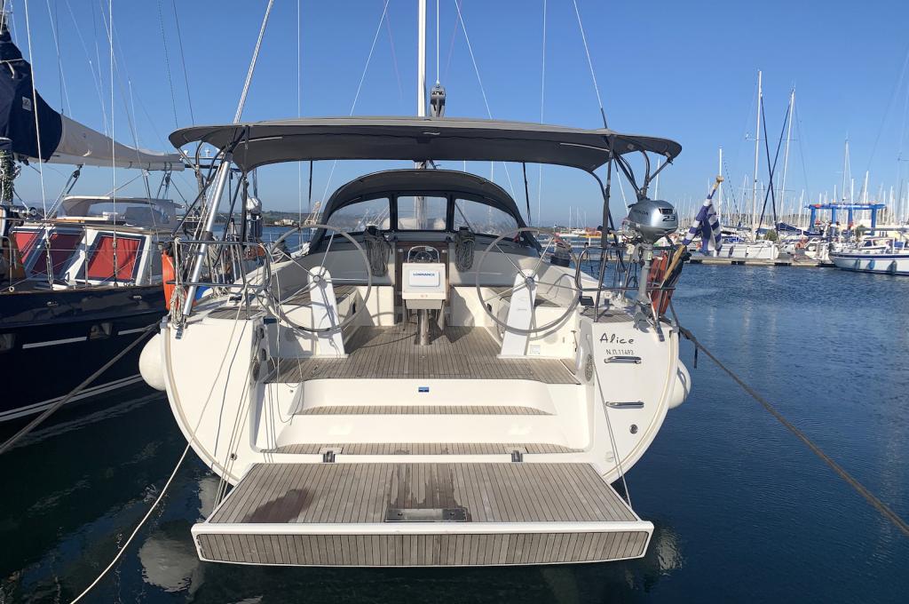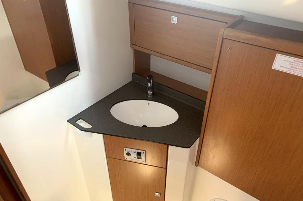 | Outside | Anker mit Kette, Badeleiter, Badeplattform, Biminitop, Cockpitdusche, Cockpitlautsprecher, Cockpittisch, elektr. Ankerwinsch, Fender, Festmacherleinen, Solaranlage, Sprayhood, Teak im Cockpit |