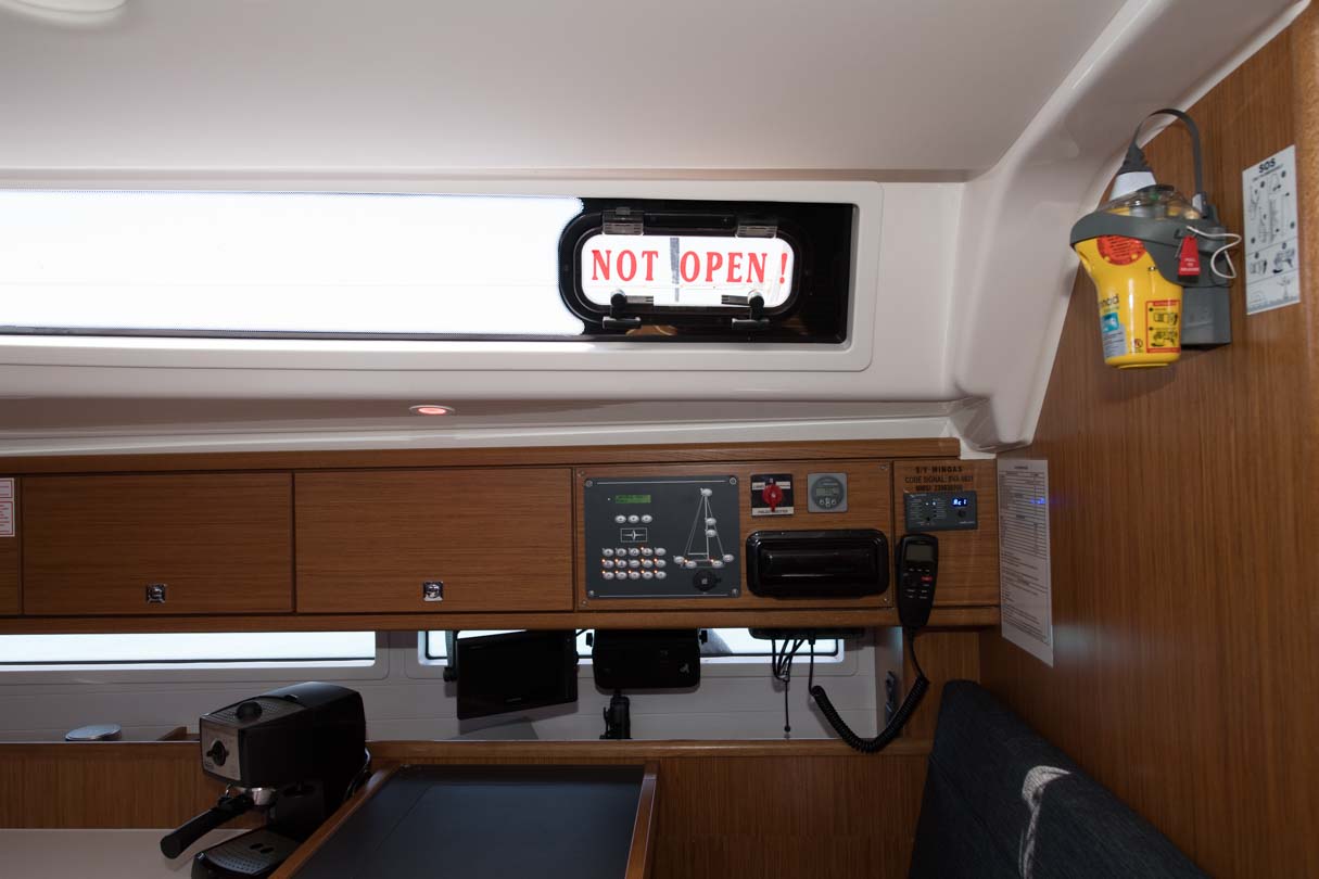 | Safety | AIS Empfänger, Autopilot, Bootsmannstuhl, Bordapotheke, Bordwerkzeug, Bugstrahlruder, Epirb, Feststoffschwimmwesten, Flaggen, Leuchtboje, Navigationslichter, Notpinne, Notsignale, Rettungsinsel, Rettungskragen, Sicherheitsgurt, Taschenlampe, UKW-Funk mit AIS, Zweitanker |