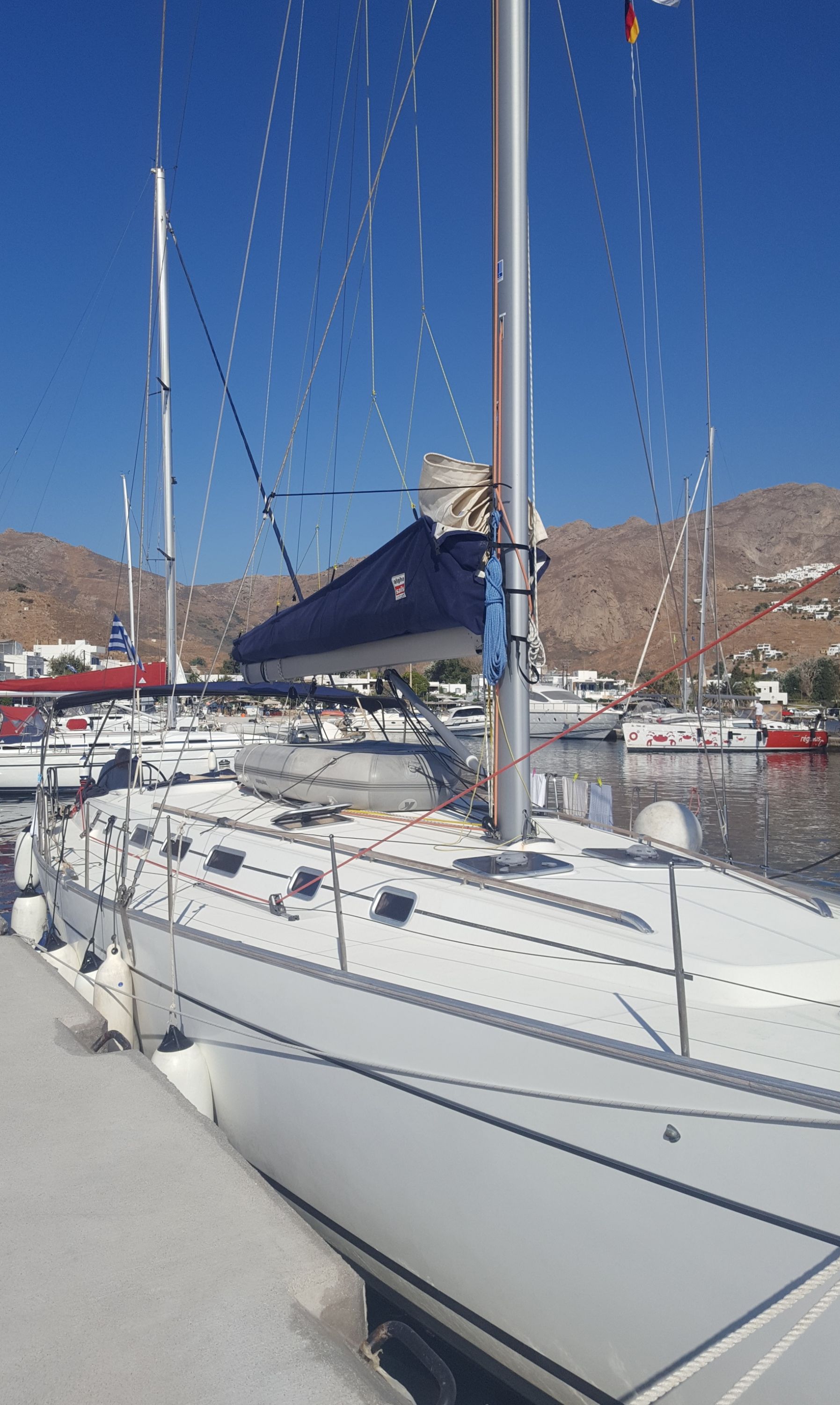 | Safety | Autopilot, Bordapotheke, Bugstrahlruder, Feststoffschwimmwesten, Feuerlöscher, Reparaturset für Beiboot, Rettungsinsel, Rettungskragen, Sicherheitsgurt, Taschenlampe, UKW-Funk m. DSC |