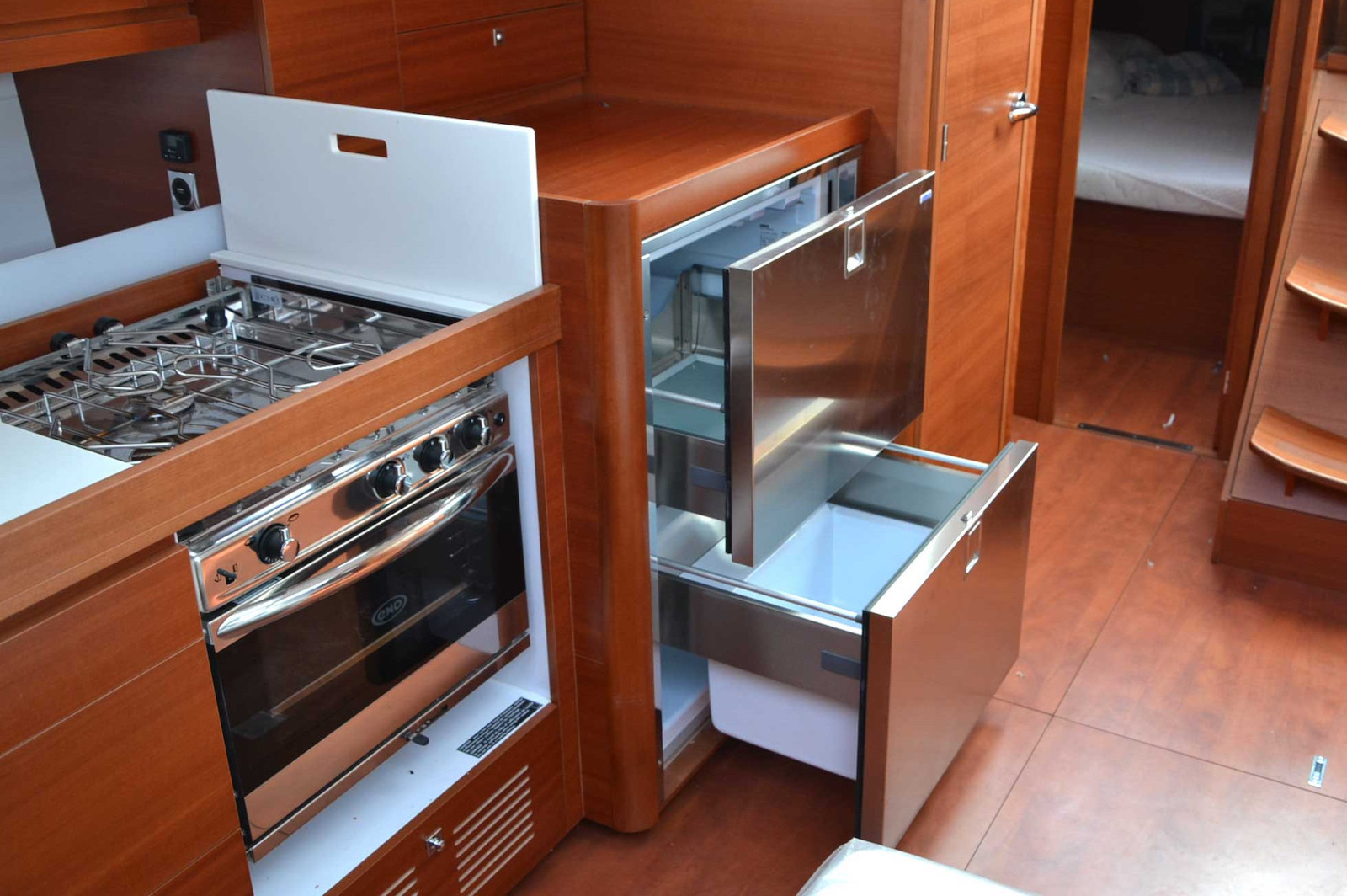 | Inside | 12V/220V-Steckdosen, 220V Steckdosen, Fäkalientank, Frischwasserpumpe, Gasherd, Gefrierschrank, Kühlschrank, Landstromkabel, Moskitonetze, Pantryausstattung, Salontisch absenkbar, USB Steckdosen in den Kabinen, Ventilatoren in Kabinen, Warmwasser, Weinschrank |