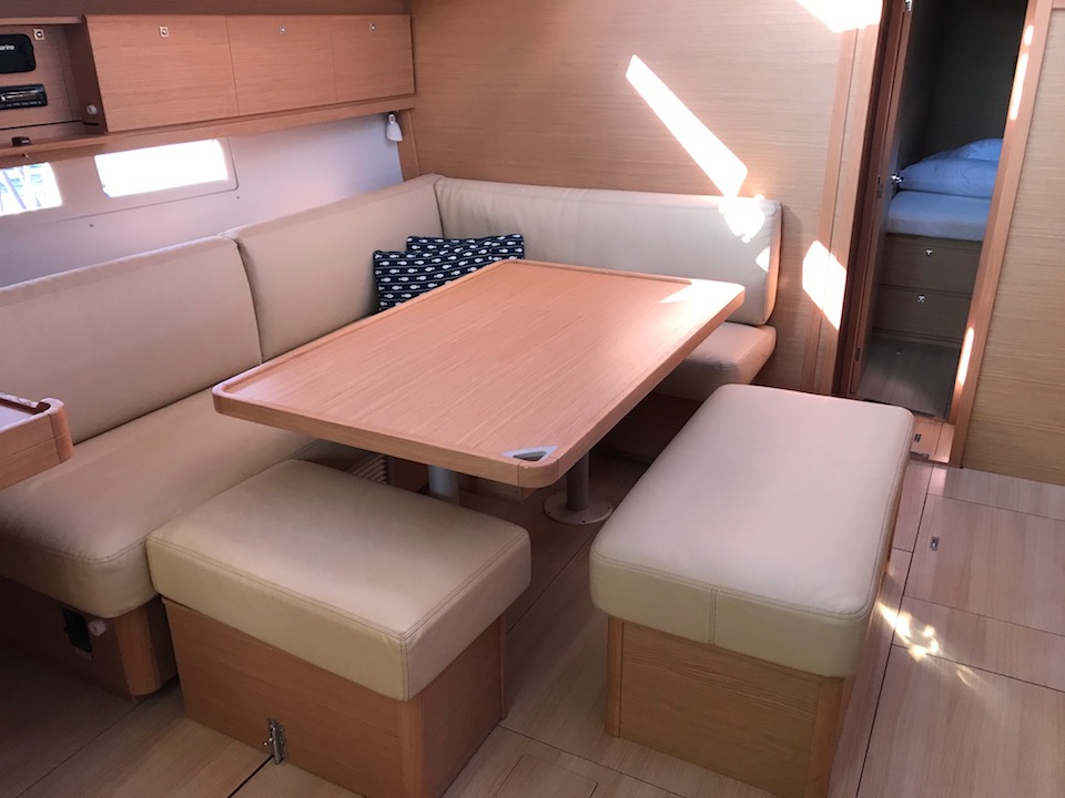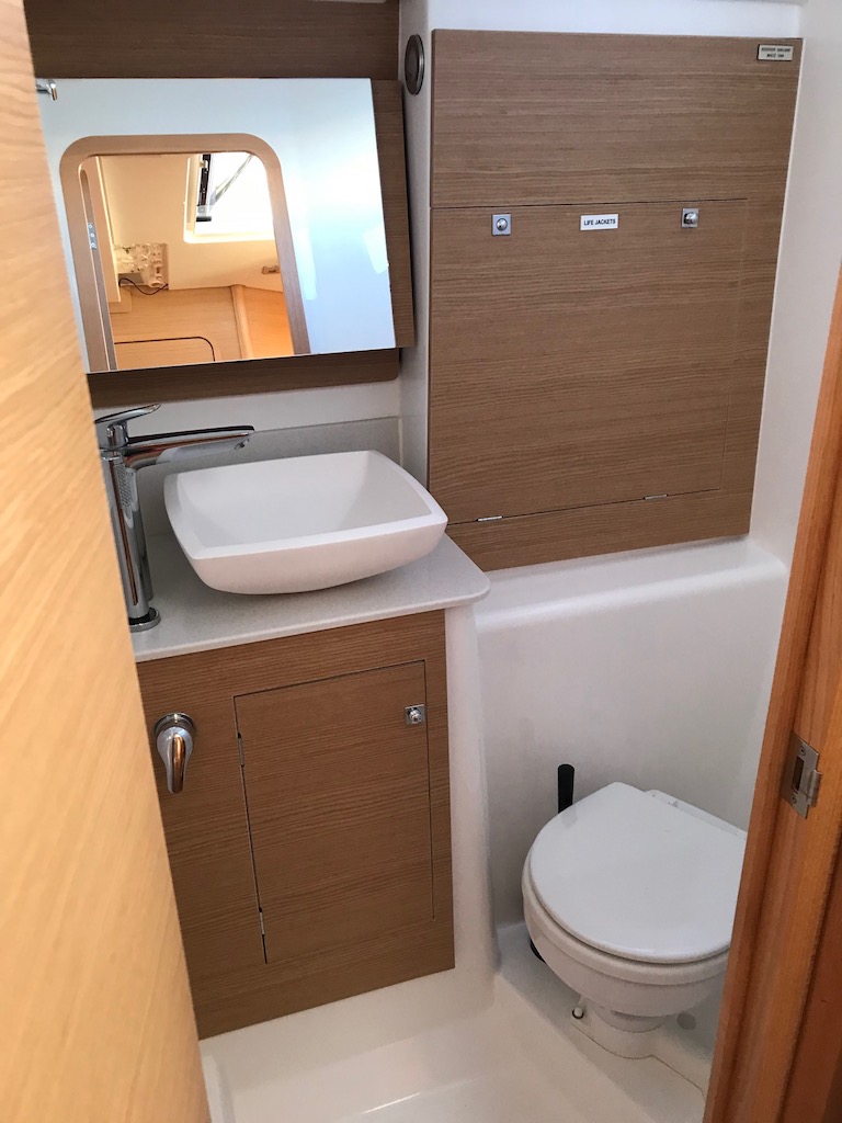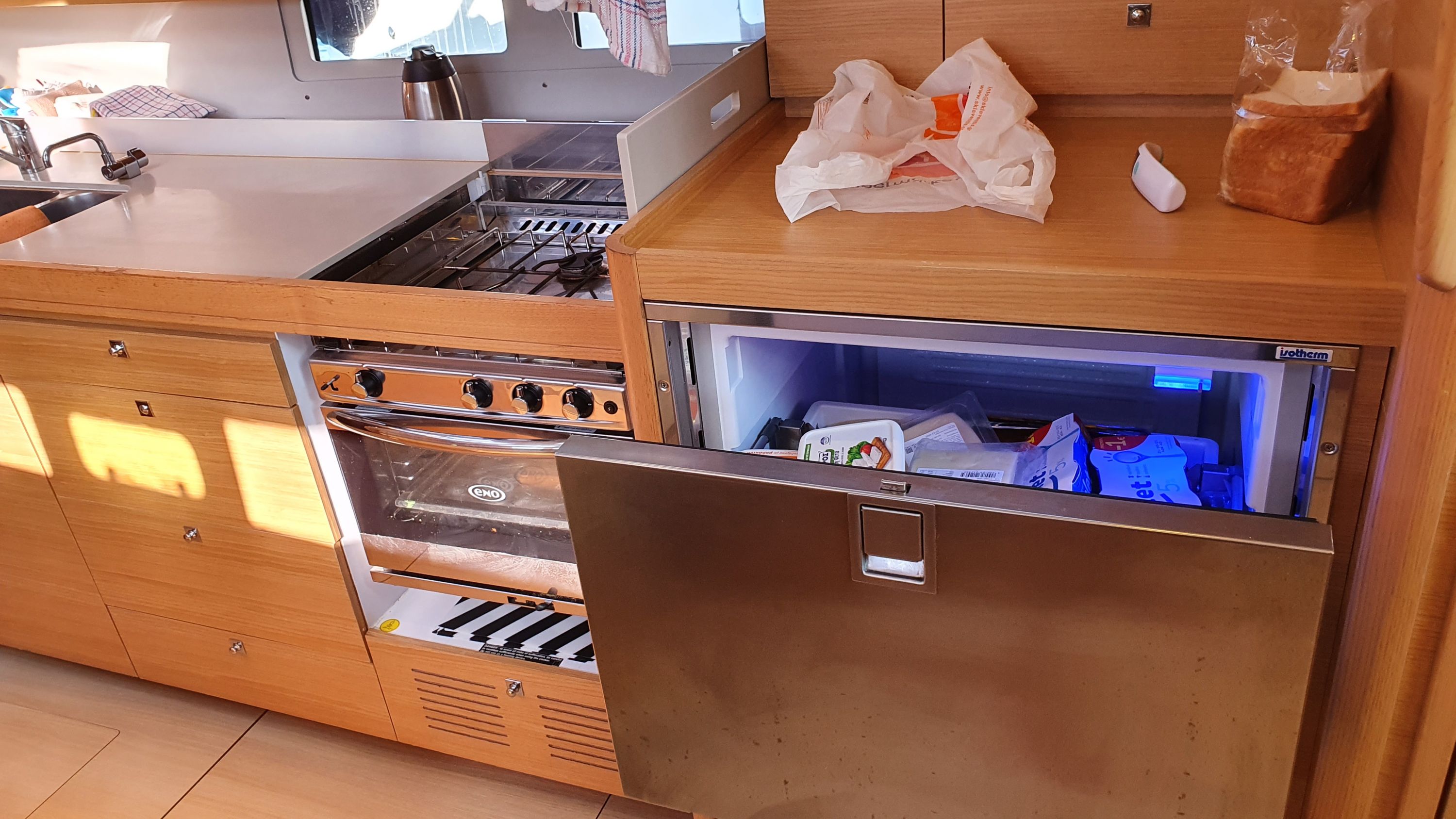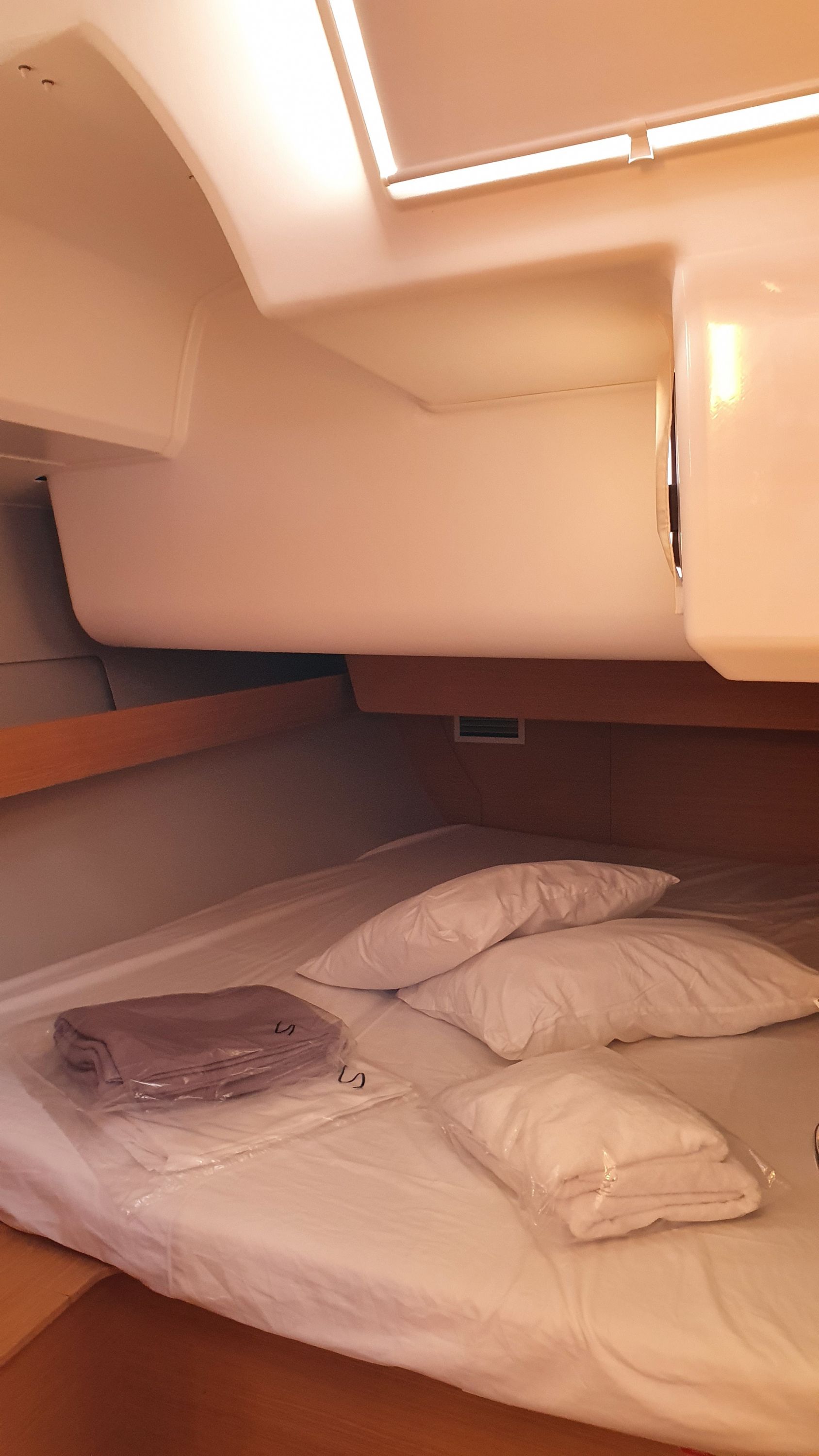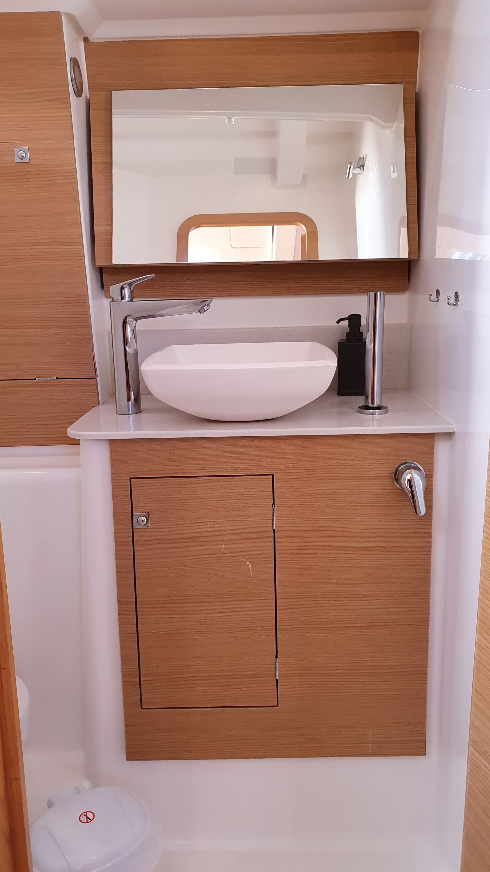 | Inside | 12V/220V-Steckdosen, 220V Steckdosen, Gasherd mit Backofen, Generator, Inverter 12V/220V, Klimaanlage (ohne Landstrombedarf), Kühlschrank, Lautsprecher im Salon, LED-Innenleuchten, Moskitonetze, Radio mit USB, Salontisch absenkbar, Spülbecken, USB Steckdosen in den Kabinen, Ventilatoren in Salon und Kabinen, Warmwasser, Weinkühlschrank |