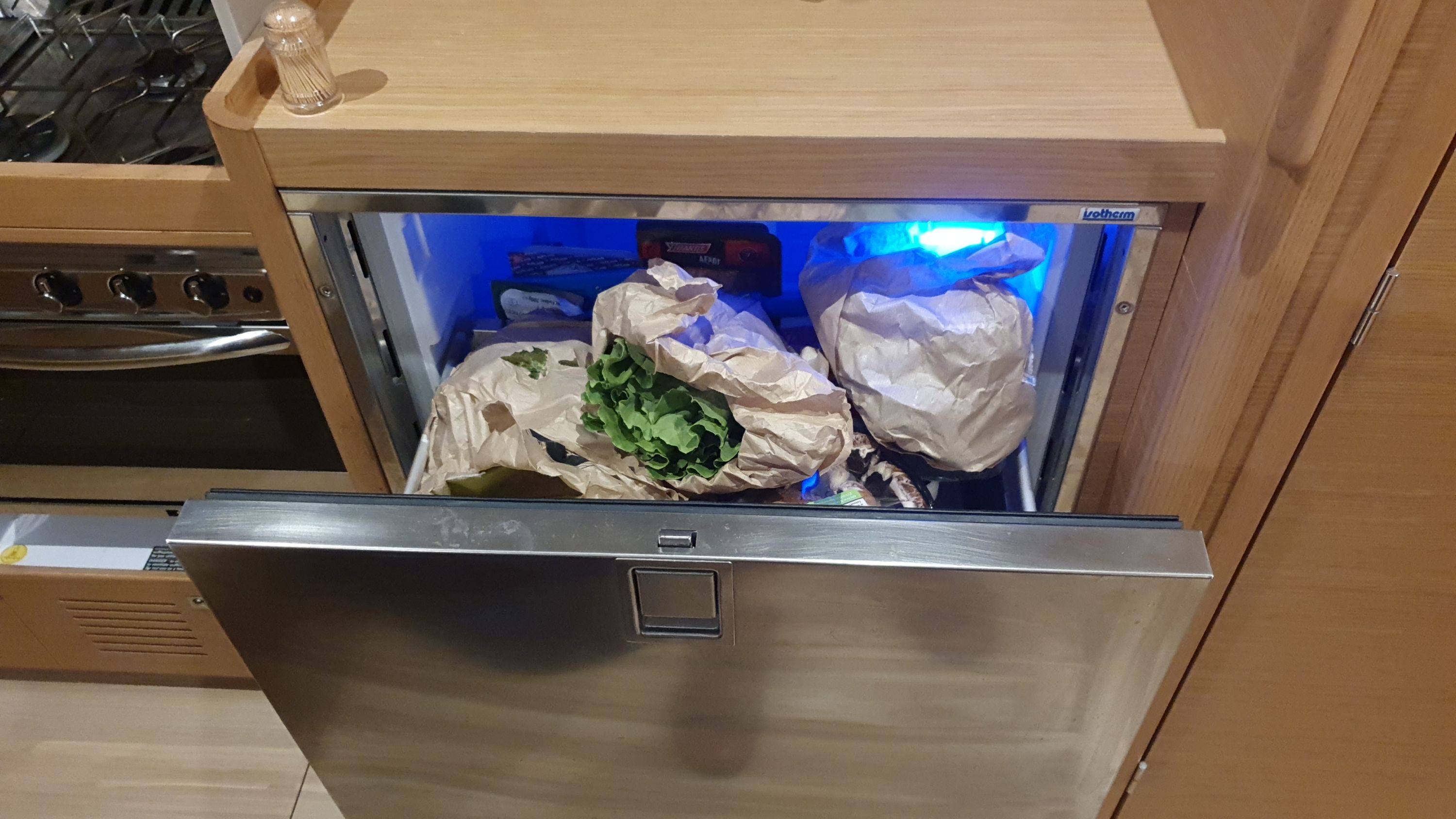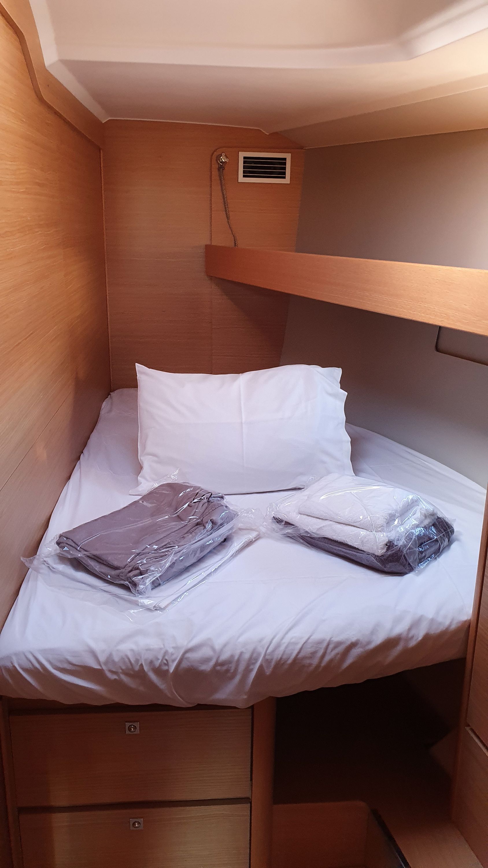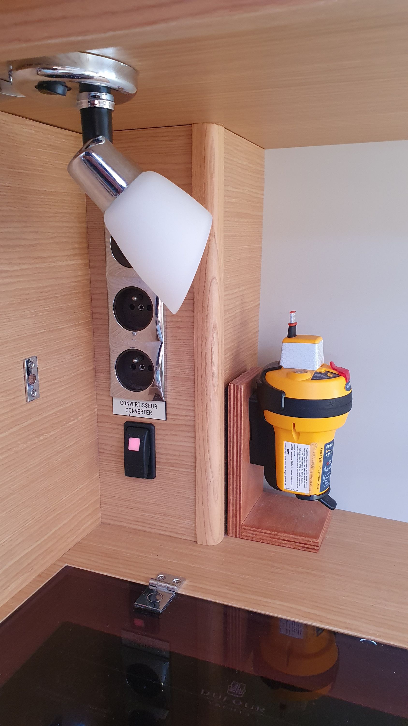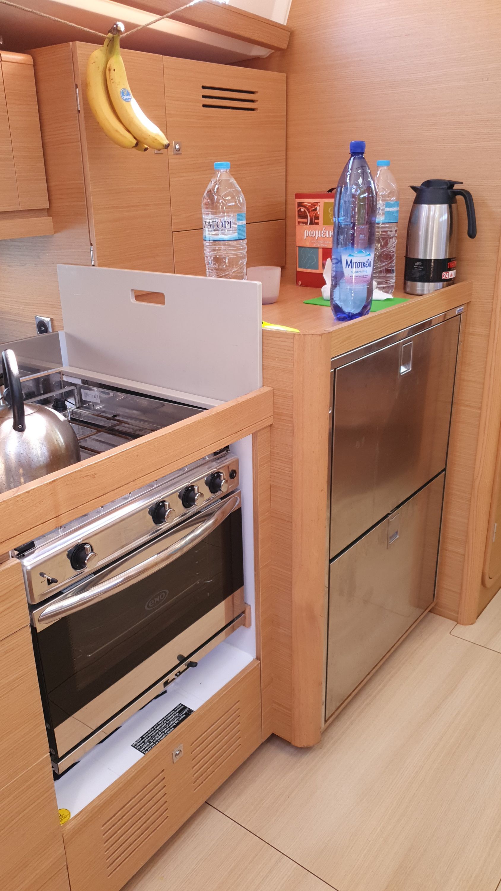 | Inside | 12V/220V-Steckdosen, 220V Steckdosen, Gasherd mit Backofen, Generator, Inverter 12V/220V, Klimaanlage (ohne Landstrombedarf), Kühlschrank, Lautsprecher im Salon, LED-Innenleuchten, Moskitonetze, Radio mit USB, Salontisch absenkbar, Spülbecken, USB Steckdosen in den Kabinen, Ventilatoren in Salon und Kabinen, Warmwasser, Weinkühlschrank |