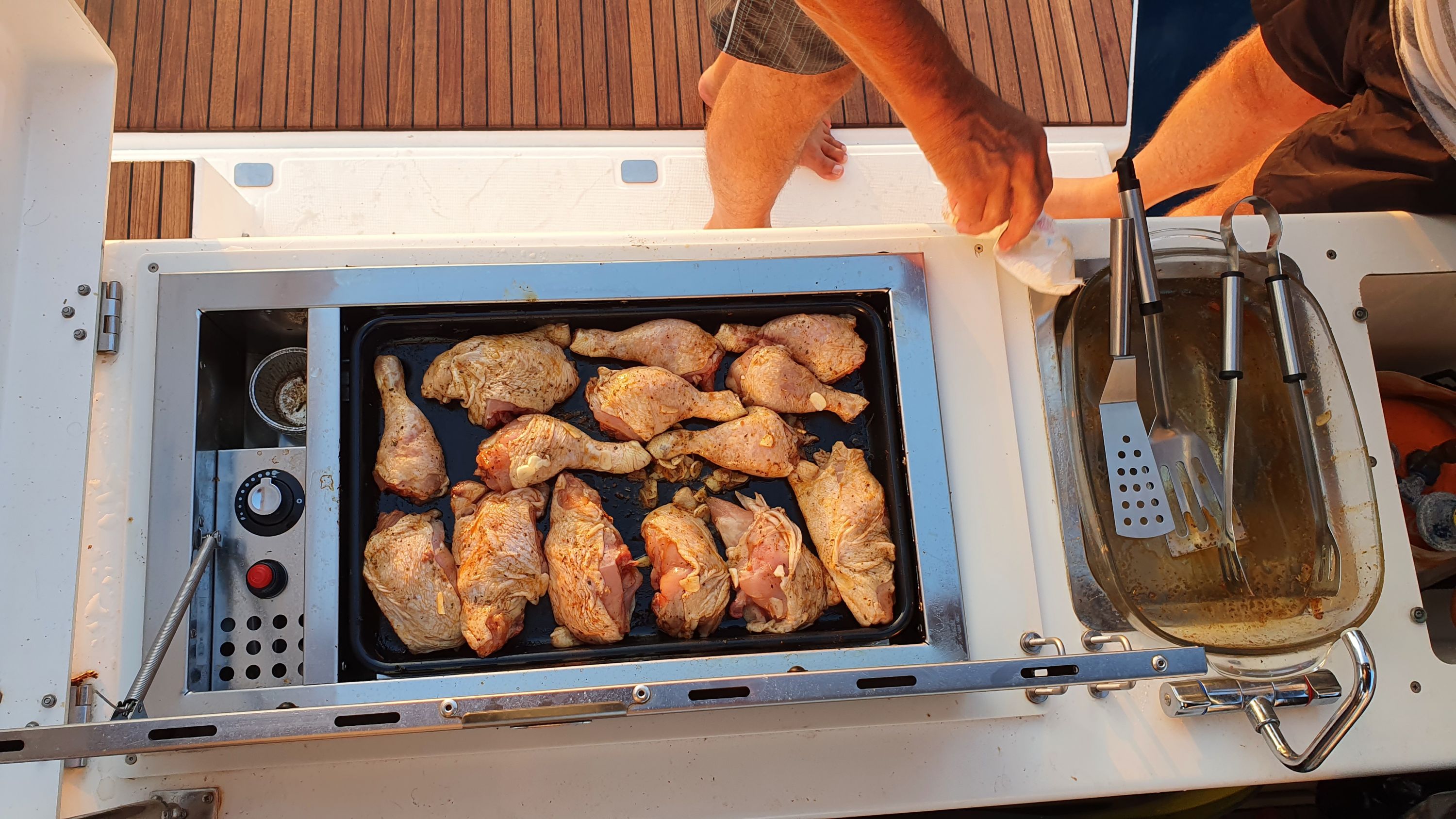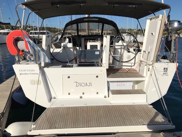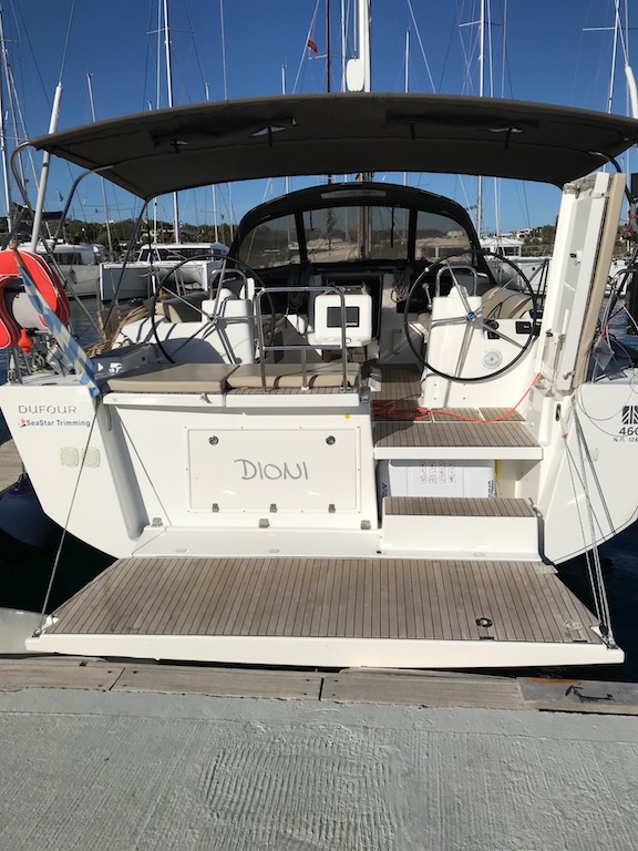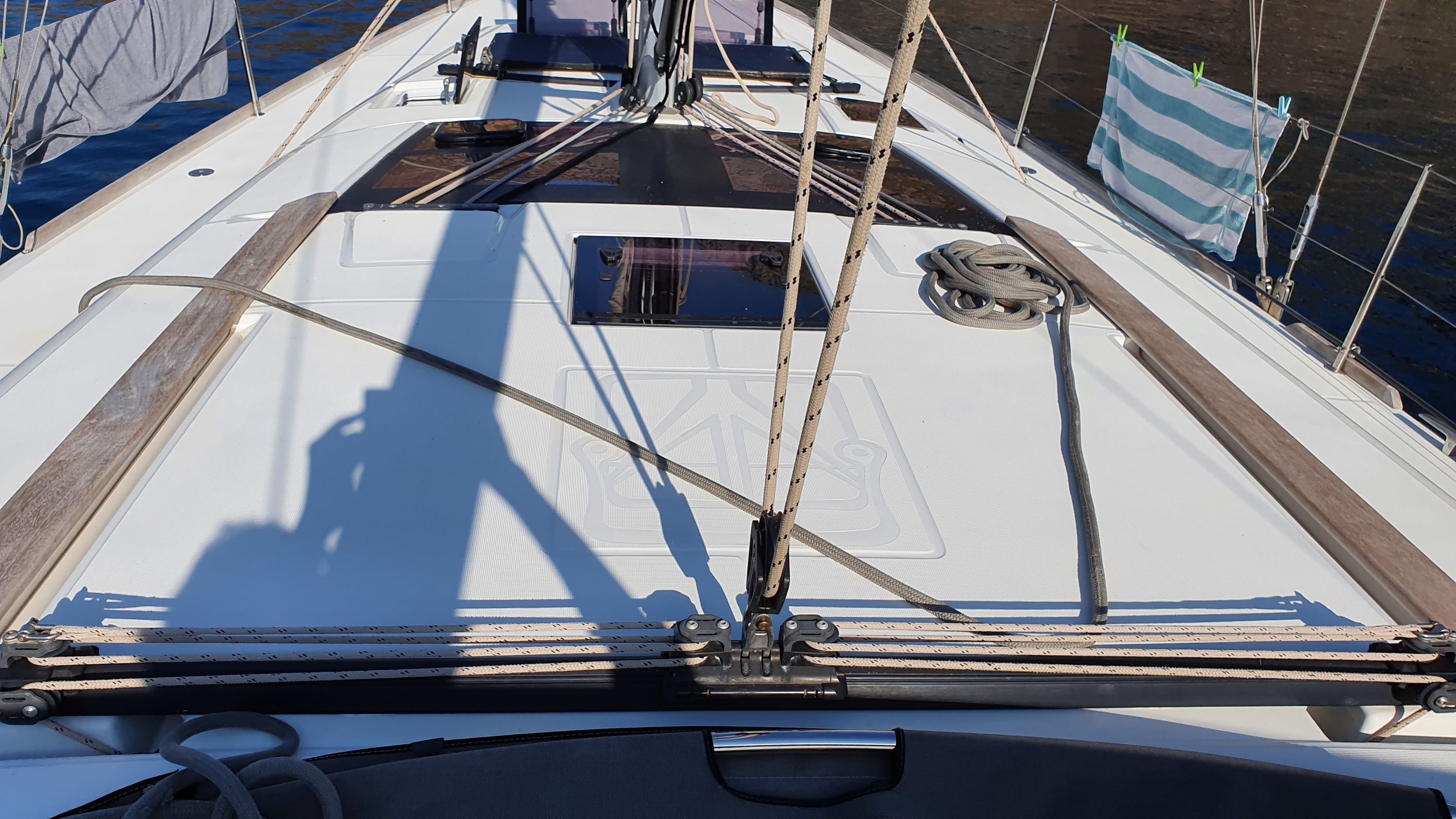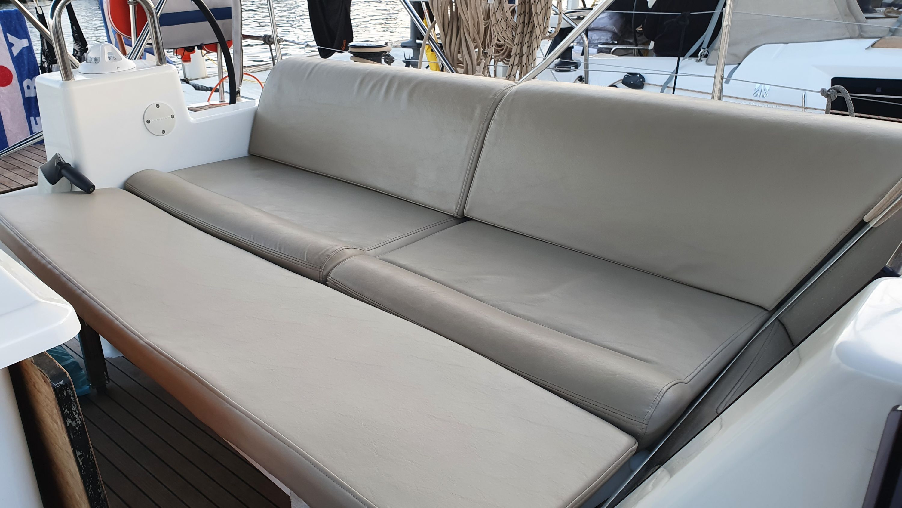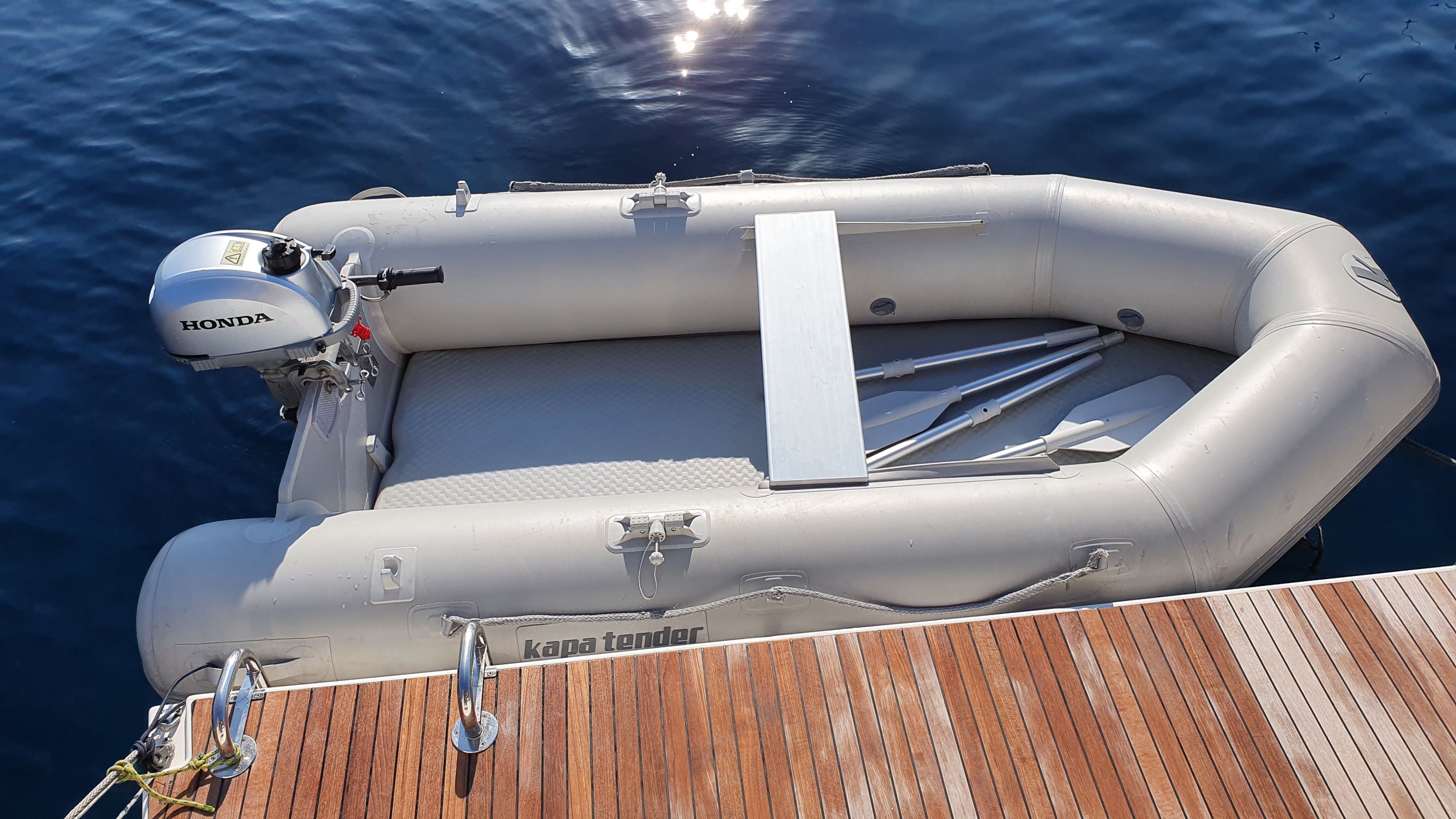 | Outside | 220 V Landstromkabel mit Ladegerät, Anker mit Kette, Badeleiter, Badeplattform, Biminitop, Cockpitdusche, Cockpitkühlschrank, Cockpitlautsprecher, Cockpitpolster, Cockpittisch, Deckpolster, Delta-Anker, elektr. Ankerwinsch, Fender, Fernsteuerung für elektr. Ankerwinsch, Festmacherleinen, Gas-Barbecue-Grill im Cockpit, Grill, Kugelfender, Schnorchelausrüstung, Solaranlage, Sprayhood, Teak im Cockpit |